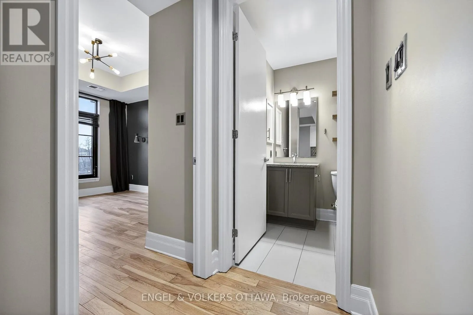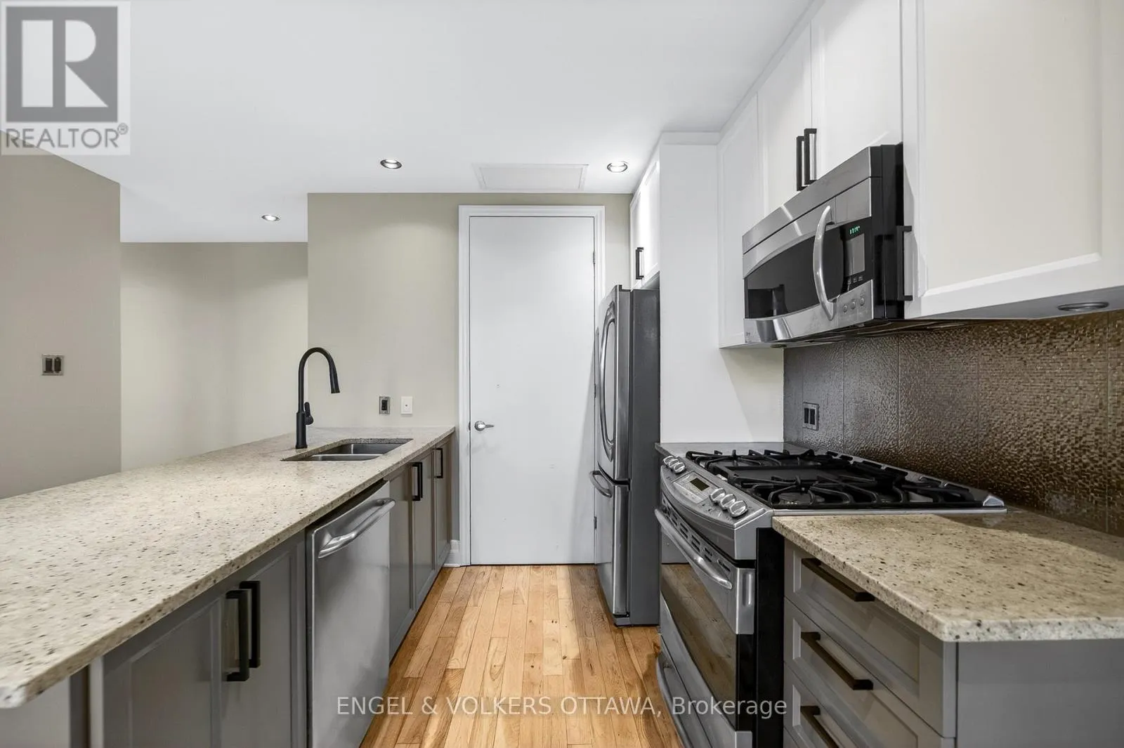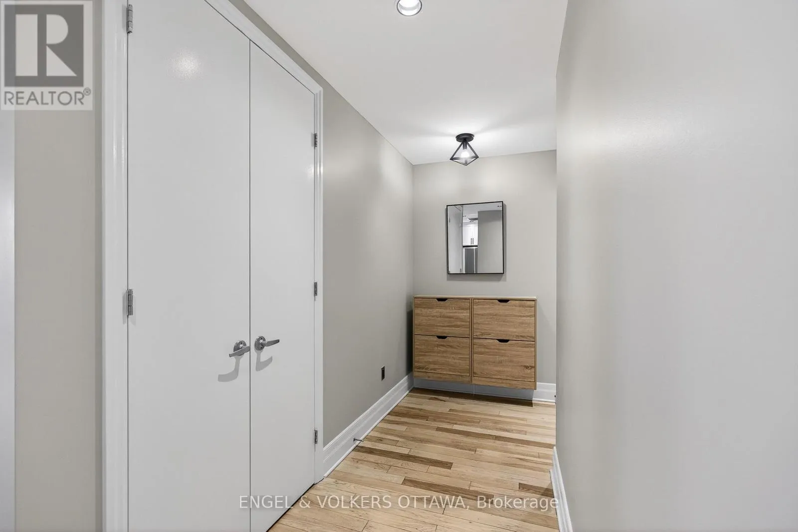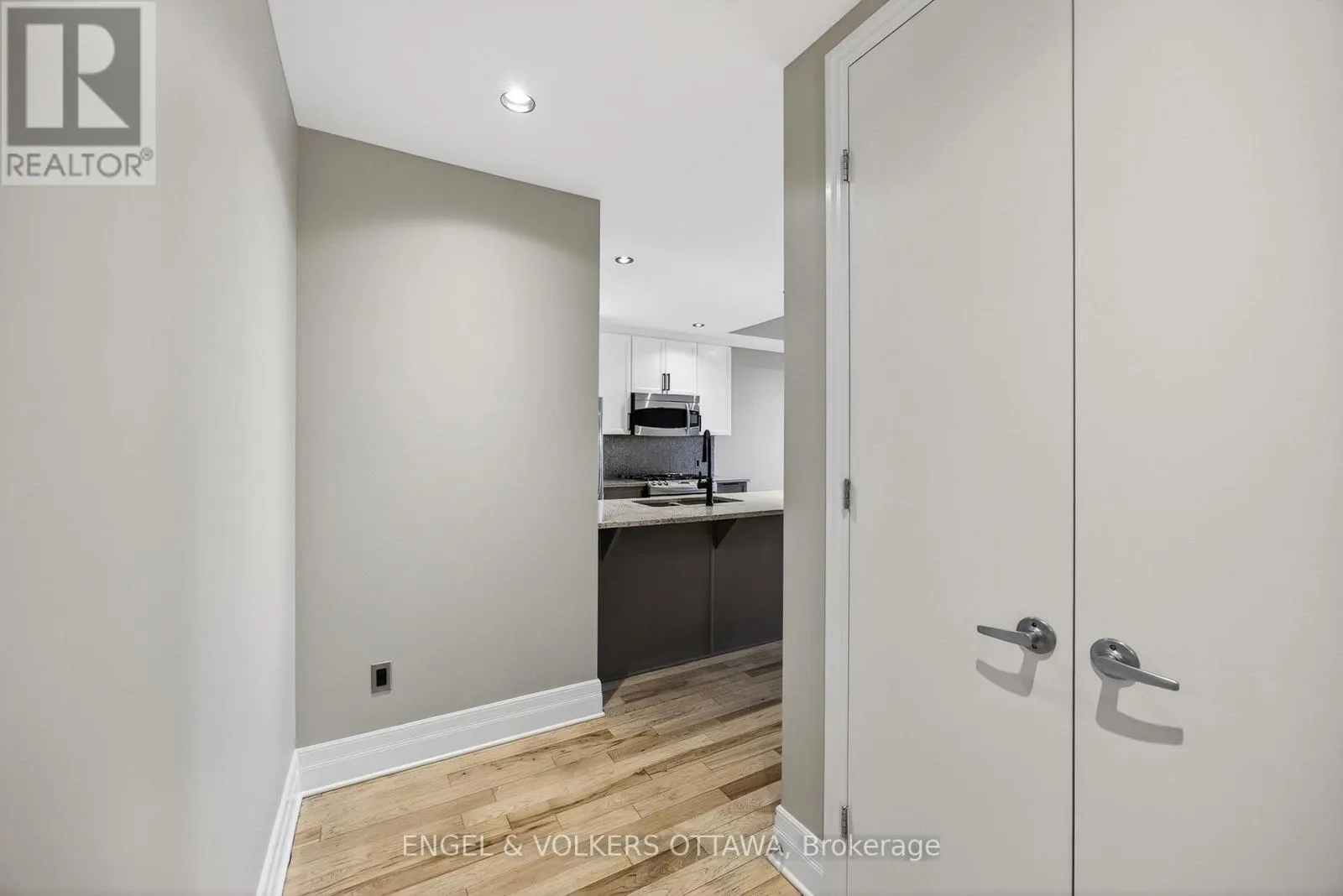 Cross Streets: Breezehill Avenue & Sherwood Drive. ** Directions: Turn onto Breezehill Ave from Sherwood Drive. OPEN HOUSE! THURS, APRIL 23, 5PM - 7PM!! Beautiful 1-bedroom condo by Domocile, just steps from Little Italy, the Civic Hospital, and Dows Lake. Located in the prestigious Radcliffe, this well-managed building offers great amenities including a party room, exercise room, and bike storage. The 4th-floor unit welcomes you with a spacious entryway that nicely separates the living space from the hallway, complete with a built-in closet and shoe organizer, and finished with hardwood flooring throughout. The open-concept layout features a modern eat-in kitchen with a granite island that overlooks a bright, comfortable living area, with a generous private balcony offering neighbourhood views. The bedroom is well-sized with plenty of closet space, dual reading lights, and room for a king-sized bed, plus the added bonus of a built-in wall vacuum. You'll also find a 4-piece bathroom, along with a separate laundry closet. The unit has been freshly painted in spring 2023, with new components added to the in-unit heating and cooling system in 2025, and includes underground parking and a storage locker on the condo level. A great option for anyone looking for stylish, low-maintenance living in the heart of Ottawa while still enjoying a bit of separation from it all. Condo fees: 559.39, Hydro: $40/month (id:27476)