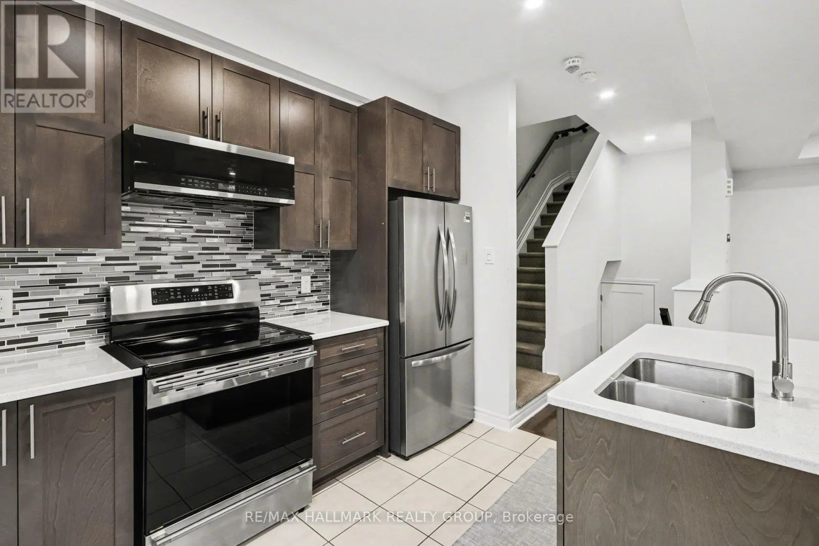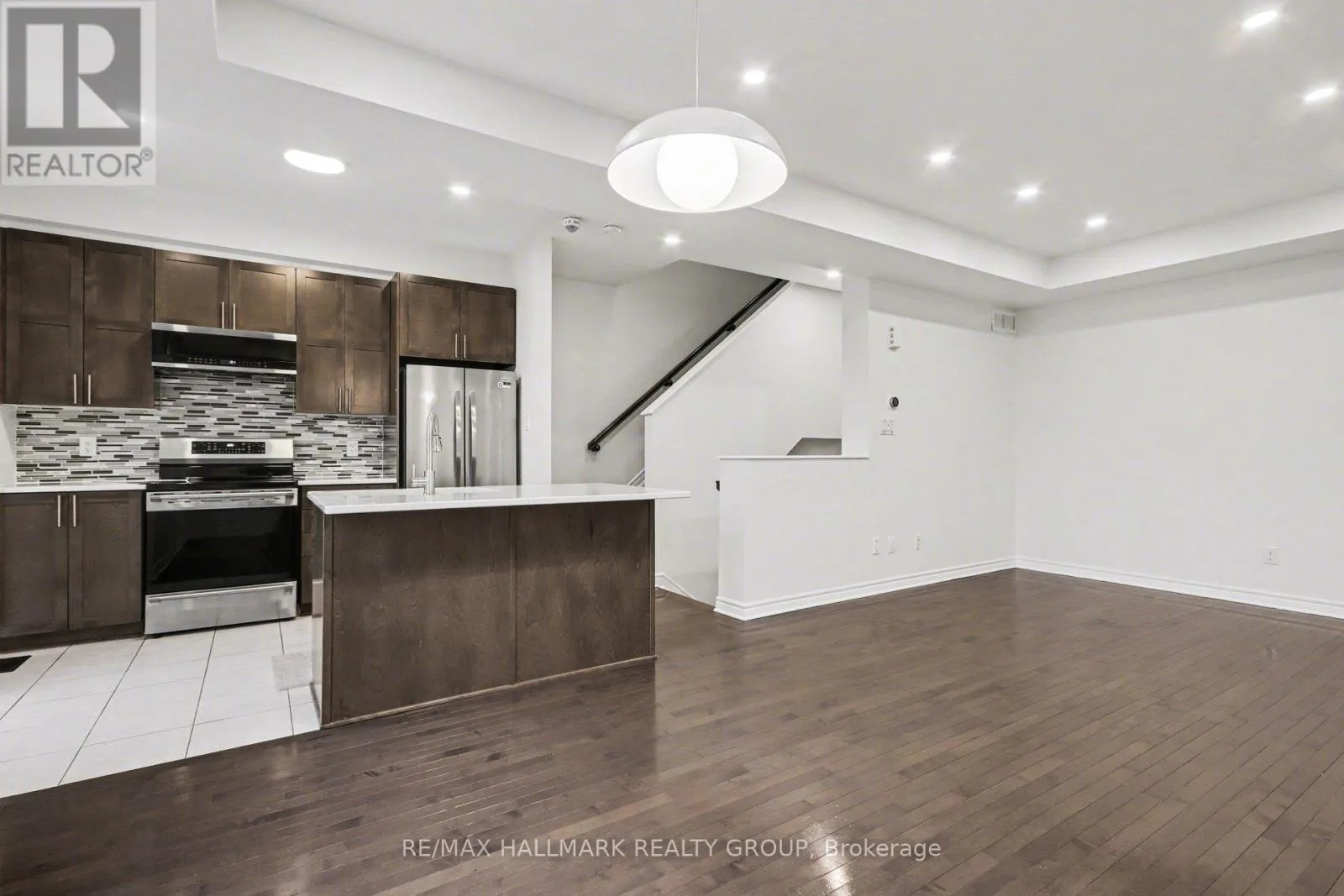 Kilbernie & Greenbank Welcome to this beautifully updated townhome in the heart of Half Moon Bay, Barrhaven. This spacious 2-bedroom, 2-bathroom home offers a functional and inviting layout across three levels. The main entry features ceramic tile flooring, a generous front closet, and a large storage room complete with a laundry sink-ideal for a mudroom setup or additional storage.Upstairs, the bright and airy second level showcases an open-concept living and dining space with stunning modern flooring, oversized windows, and a patio door that floods the space with natural light. Step out onto the balcony-perfect for enjoying your morning coffee. The kitchen is well-appointed with stainless steel appliances, ample cabinetry, plenty of counter space, and a convenient breakfast bar for casual dining.The third level offers added convenience with in-unit laundry, along with a spacious primary bedroom featuring new flooring, a walk-in closet, and direct access to the main bathroom. A well-sized second bedroom and full bathroom complete this level. Ideally located close to excellent schools, parks, and everyday shopping amenities. (id:27476)