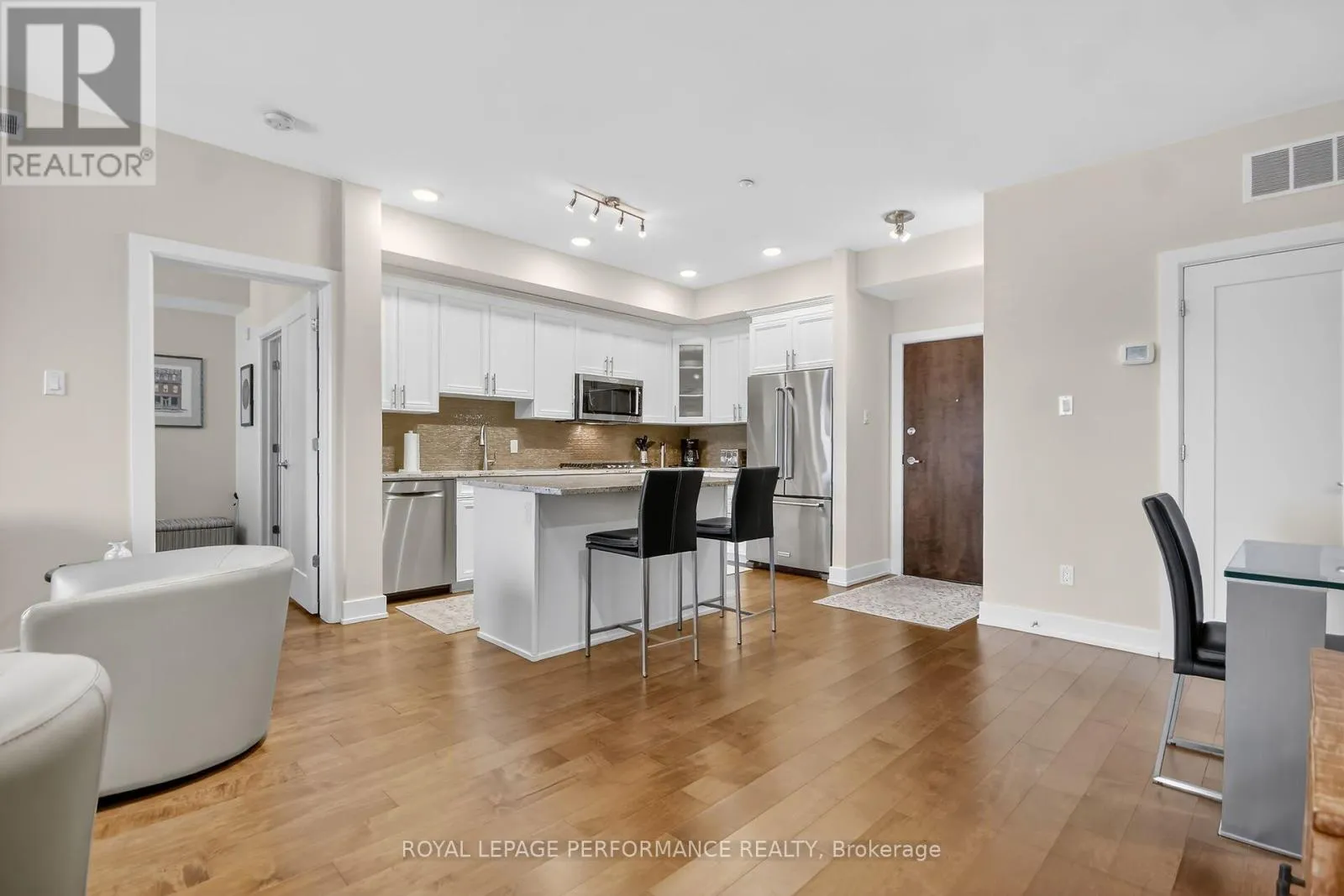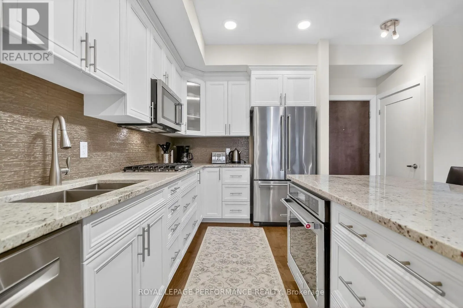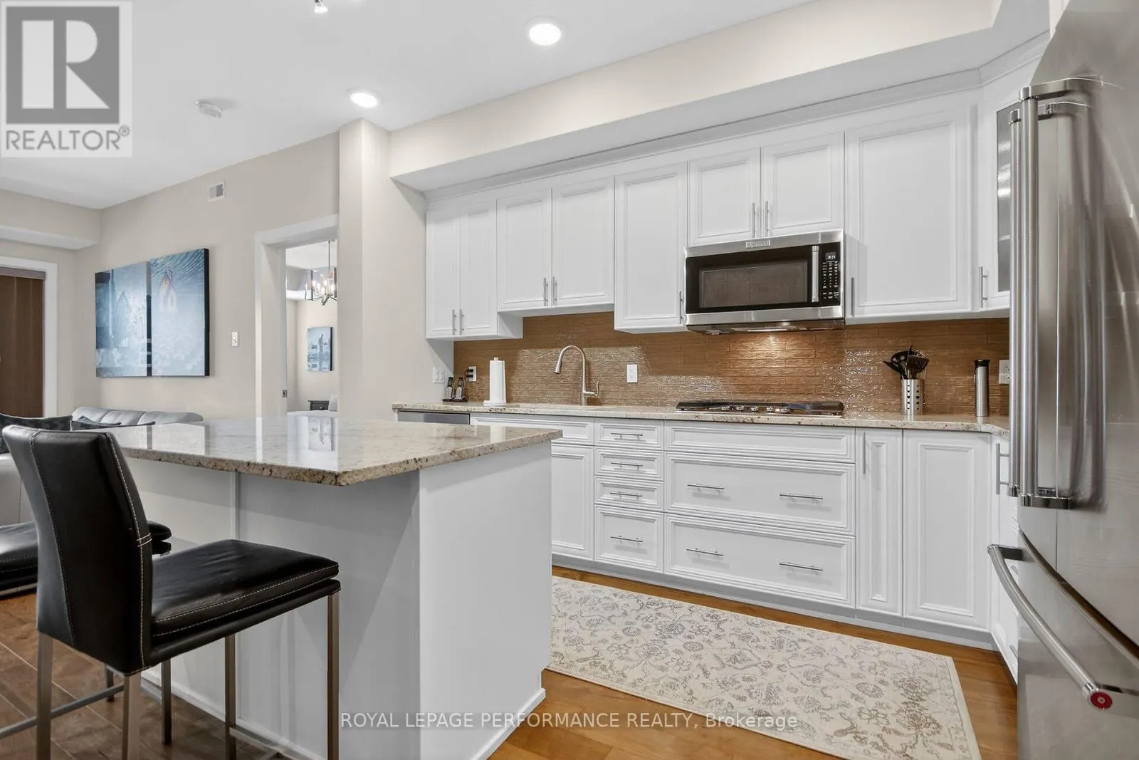 Cross Streets: Mountshannon Dr. & Berrigan Dr. Across from Ken Ross Park. ** Directions: South on Woodroffe Ave. past Fallowfield Rd. Longfields Dr, is the 2nd steet on right. 615 Longfields Rd is on the right side past Mountshannon Dr. or come in off of Strandhead Dr and turn onto Longfields Dr. Beyond well kept, immaculate 2 bedroom, 2 full bathroom penthouse apartment with unobstructed east view overlooking Ken Ross Park from the balcony and bedrooms. This apartment offers nine foot ceilings and has been totally upgraded with quiality finishings throughout. Upgraded kitchen and bathroom cabinets, custom ensuite double shower. All wood flooring and doors have been upgraded. Ceramic floor in both bathrooms. Higher quality stainless steel applinances, granite counter top, built in oven, and gas cook top elements. Built in microwave oven. Custom window coverings along with upgraded light fixtures throughout. The spacious balcony off of the living room features a custom power balcony sunshine screen, with durable flooring. A gas hook up BBQ is also included. Bright, open concept layout features a breakfast bar sitting area, custom kitchen with granite counter tops with lots of counter space and twelve storage drawers, complete with glass ceramic backsplash. Large dining room is where the laundry and utility closets are located. The spacious, bright living room includes the wall mounted electric fireplace and TV. Large sliding door access the balcony east views of the park. From the hallway, access the second full bathroom and spacious bedroom/office offering a large double closet, includes the TV, and offers a secondary access to the balcony. The large primary bedroom offer a spacious walk through closet to the full ensuite bathroom with custom double shower stall. The apartment incluses one, underground indoor parking spot, plus an outdoor surface parking spot. A storage locker is includes in the basement parking area accessed off of the elevator area. You will not be disappointed with this upgraded top floor apartment with the many custom features. $75K of upgrades. Within a 10 minute drive you have access to all the Barrhaven shopping/professional services amenities, restaurants etc. Walk to parks and transit. This is a one of a kind unique apt. (id:27476)