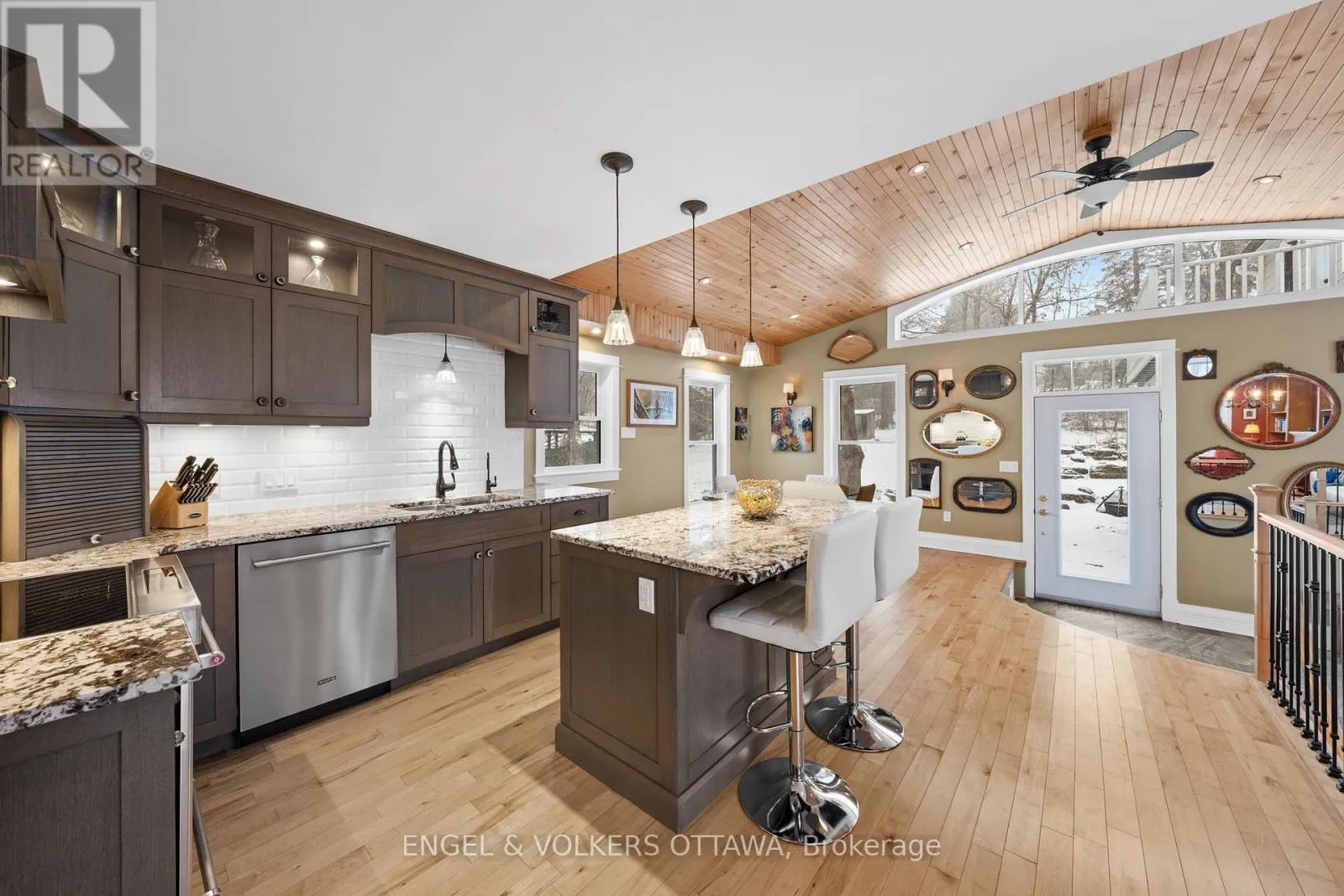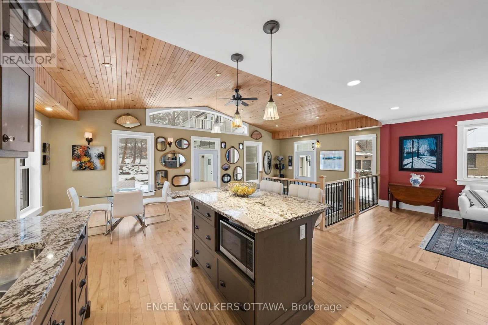 Cross Streets: BRIDGE ST AND WEST RIVER. ** Directions: BRIDGE STREET TO WEST RIVER TO EDWARD STREET. Welcome to this stunning, fully renovated bungalow nestled on the North Island in the charming Village of Manotick - where timeless character meets modern luxury. Set on a professionally landscaped lot, the outdoor space is a true sanctuary. Mature perennial rock gardens, waterfall, mature trees, and a stone patio, this property offers exceptional curb appeal and a truly serene outdoor retreat.The main residence has been thoughtfully reimagined with a well-designed addition that expands the living space without sacrificing warmth or flow. The addition impresses with soaring vaulted ceilings and expansive windows that flood the space with natural light. Step inside to a gracious living area anchored by a classic wood-burning fireplace - the perfect gathering place in every season. The layout has been artfully reconfigured from three bedrooms into an expansive two-bedroom plan, allowing for a truly luxurious primary suite complete with generous double closets. A beautifully appointed new full bath serves the main level, featuring a glass shower, brushed gold fixtures, and a heated towel bar - a spa-like retreat for the whole household.The finished lower level offers incredible versatility with two additional bedrooms, a fully renovated bath, a dedicated home gym, and a workshop.The showpiece of this property is the coach house with oversized, heated double car garage topped by an open concept living area, complete with a kitchenette, three-piece bath, and a charming private balcony - the perfect spot to enjoy your morning coffee overlooking those stunning gardens. Whether envisioned as a yoga or meditation studio, artist's retreat, private home office, or income-generating suite for a tenant or in-law, the possibilities are truly endless.All of this, just steps from the shops, restaurants, and scenic waterways that make Manotick one of Ottawa's most coveted communities. A rare opportunity - move in and make it yours. (id:27476)