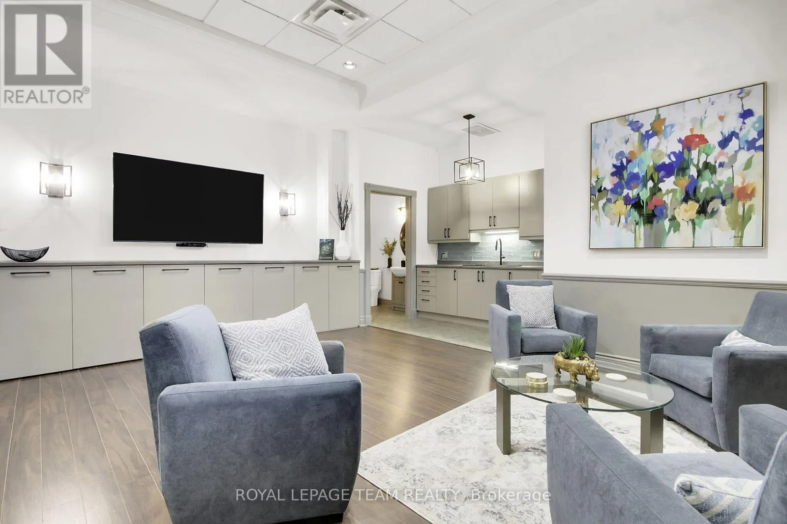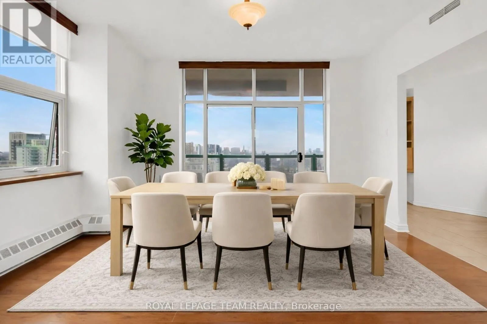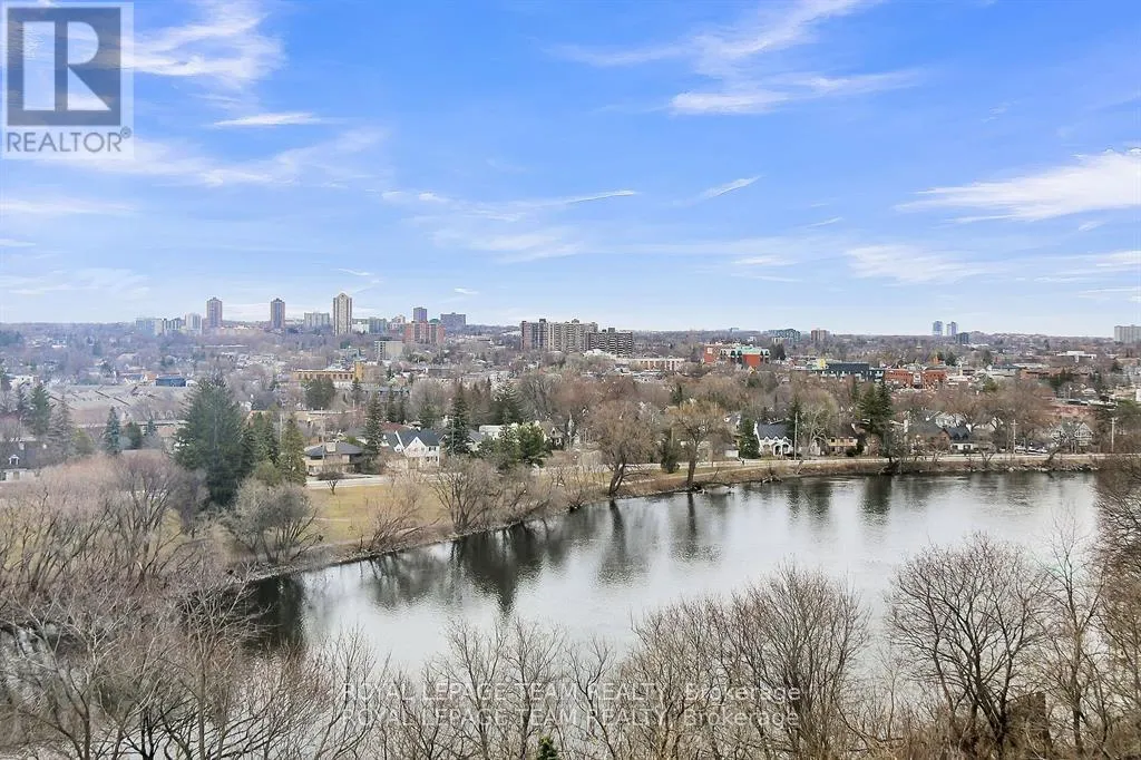 Cross Streets: Rideau Street and Wurtemburg. ** Directions: Rideau Street to Wurtemburg. This Luxury Condo in the exclusive "Falling Waters" building, has only 4 units per floor, backs on to the Rideau River in a park like setting in the middle of the city. This lovely 2 bedroom plus den/office unit is approx. 1800 sqft with an enviable southwest and east exposure, boasting views of the Rideau River, city views of downtown Ottawa including the park in front of the building and Parliament Hill, beautiful sunsets and July 1 fireworks. The spacious foyer with large coat closet welcomes you into the home with warm hardwood floors in the living and dining areas and large principal rooms. The living room features large windows streaming in lots of natural light, a central fireplace, and opens to the spacious dining room and large patio doors to the balcony. The kitchen is a good size with lots of storage and counter space including a convenient breakfast bar. The office offers additional flex space. The primary bedroom with views of the city, provides room for a sitting area, with a good size walk-in closet and spacious ensuite with double sinks, soaker tub and standalone shower. The 2nd bedroom is also a good size boasting city views as well. The laundry room offers plenty of extra storage in your unit in addition to your storage locker. This unit is freshly painted, new electric window shades on most windows and new flooring in both bedrooms. The underground parking space is well appointed with an electric charger, and the dedicated storage locker is very conveniently located. The private grounds are as luxurious as the units - with a large ground floor terrace overlooking the Rideau River in a park like setting, in addition to a large park across from the front of the building. Enjoy a short walk to shops, restaurants, NAC and Byward Market. Welcome Home. (id:27476)