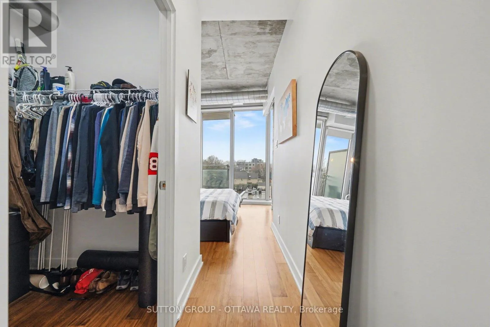 Cross Streets: Corner of Bank and Gladstone Ave. ** Directions: Bank St and Gladstone Ave. OPEN HOUSE SUNDAY APRIL 19th 2-4PM. Experience elevated urban living at Central Condominiums Phase 1, developed by Urban Capital and ideally located at 354 Gladstone Avenue in the heart of Centretown. Just steps away you will stumble across your favourite shops, restaurants, cafés, and everyday conveniences along Bank st. What's more is that you are just minutes from the vibrant Lansdowne Park and the scenic pathways along the Rideau Canal. This spacious 1-bedroom + den, 1-bathroom suite offers over 750 sq. ft. of thoughtfully designed living space with stunning west-facing exposure and breathtaking sunset views. The open-concept layout features wide engineered hardwood flooring and floor-to-ceiling windows that fill the space with natural light. The modern kitchen is equipped with stainless steel appliances and contemporary finishes, seamlessly flowing into the living and dining area - ideal for both everyday living and entertaining. The versatile den offers flexible space for a home office, reading nook, or guest area. The spacious bedroom includes a walk-in closet and convenient cheater access to the bathroom, which connects directly to the in-unit laundry for added functionality. Enjoy your own private balcony, perfect for taking in evening sunsets and city views. This LEED Gold-certified building offers premium amenities including a fitness centre, party room, concierge service, private courtyard with BBQ area and security. Locker included. Don't miss out! (id:27476)