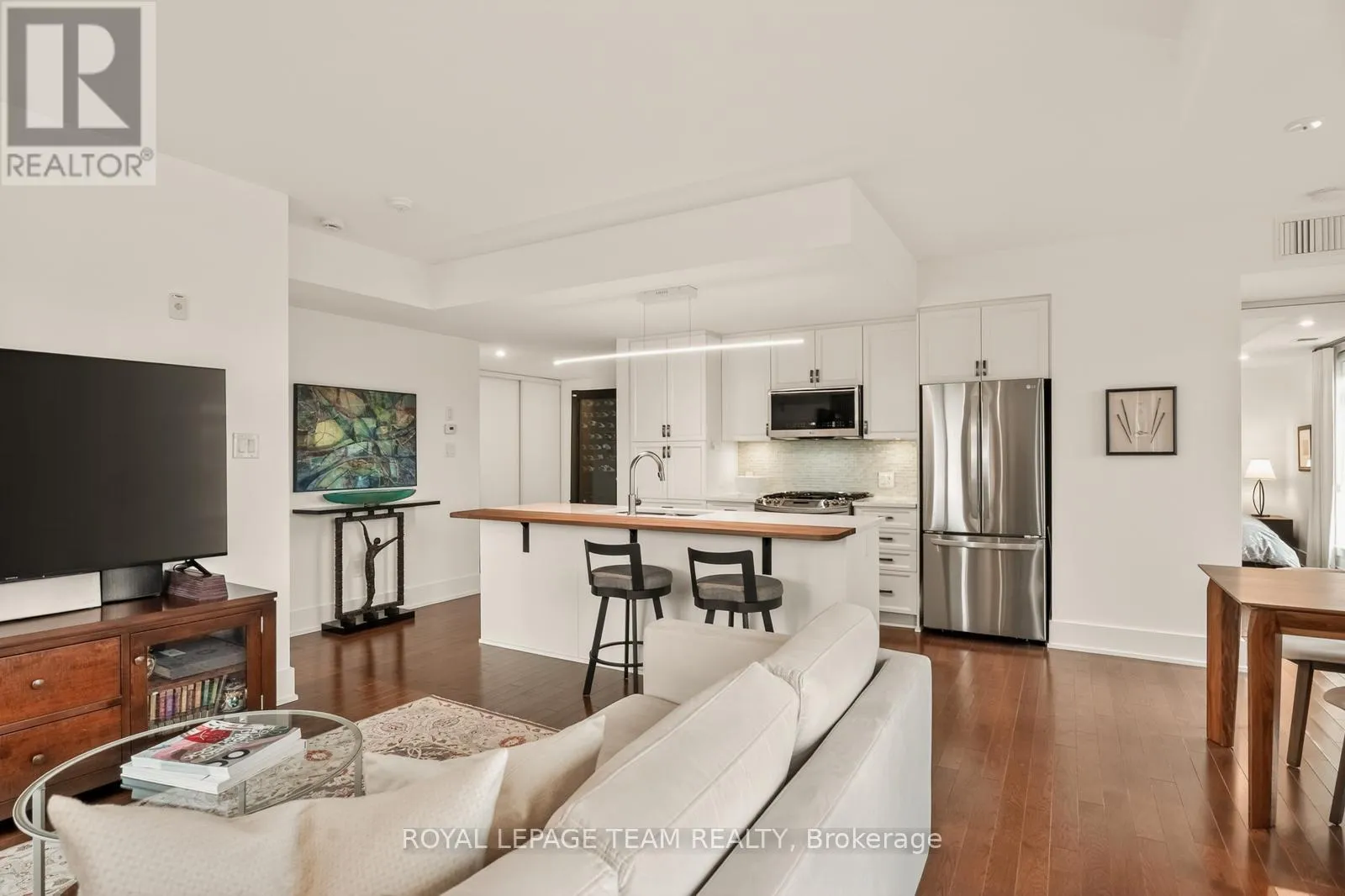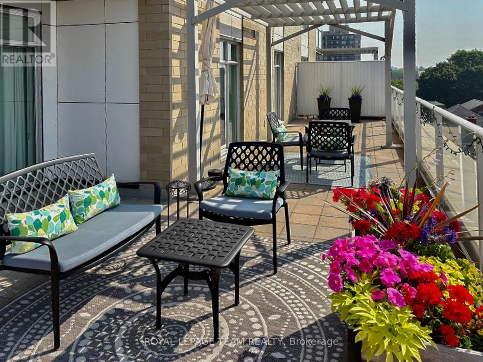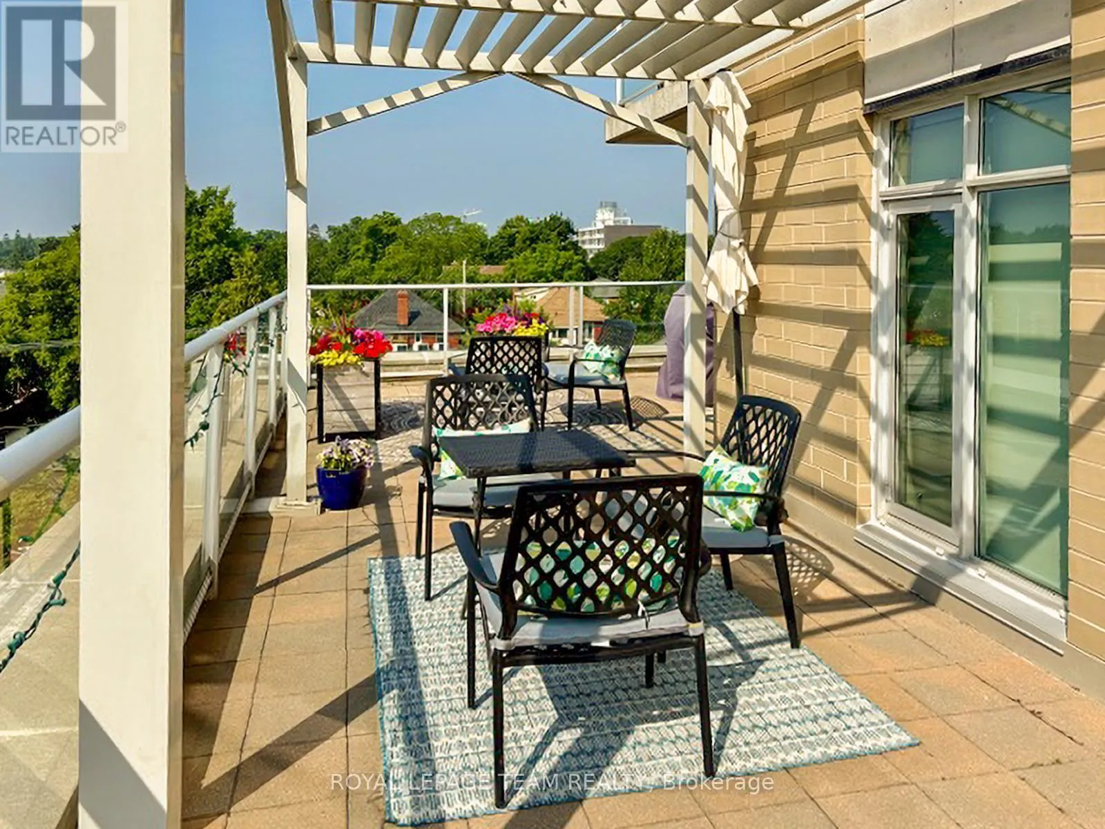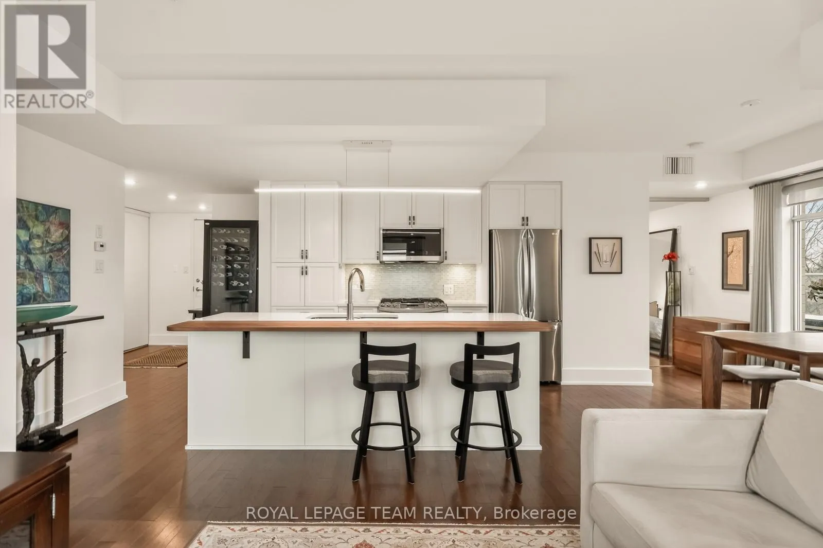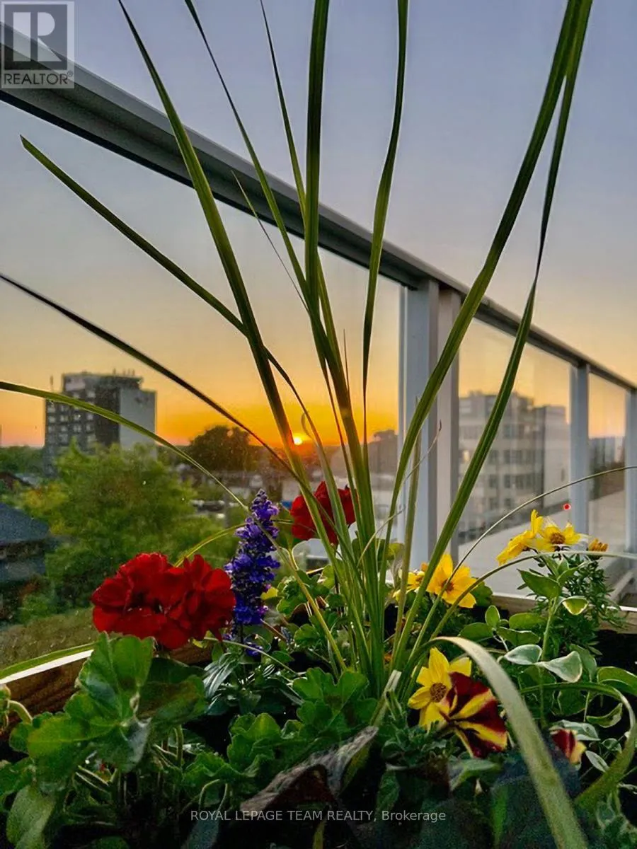 Cross Streets: Holland and Wellington St. W. ** Directions: Parkdale to Holland (South of Wellington). Building is on the East side of Holland. Open House Saturday April 18th 2-4pm. Clean lines, natural light, and 9-ft ceilings define this beautifully updated corner residence in the heart of Wellington Village - reflecting the elevated, livable and modern design Domicile is known for. This 2-bedroom, 2-bath condo features an open-concept layout with hardwood flooring throughout, anchored by a custom quartz and black walnut kitchen island, high-end appliances, and tailored millwork. The living and dining areas flow seamlessly, framed by full-height windows that flood the space with light and create a strong indoor-outdoor connection. Step onto the rare 700 sq. ft. South-West facing terrace, complete with pergola, gas line, and lighting - an ideal extension of the living space. Wonderul for vegetable, herb or floral gardening. Both bathrooms have been thoughtfully renovated with heated floors, quartz finishes, and spa-like details. Custom California Closets enhance both bedrooms. Set in a LEED-certified, smoke-free building with fitness centre, lounge, rooftop terrace, guest suite and visitor parking. Steps to Parkdale Market, local cafés, transit, and river pathways. An impeccably presented, move-in ready home. One oversized parking spot and adjacent private locker included. A must see in Wellington Village! (id:27476)