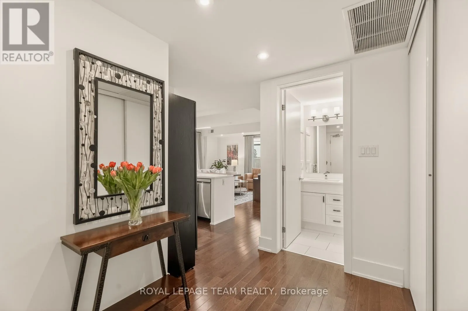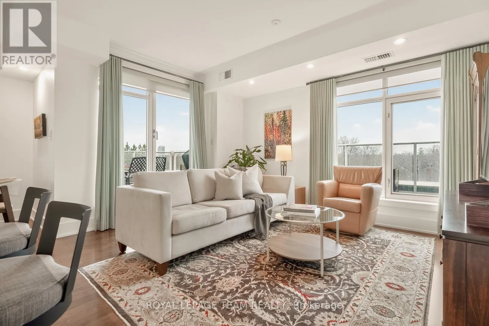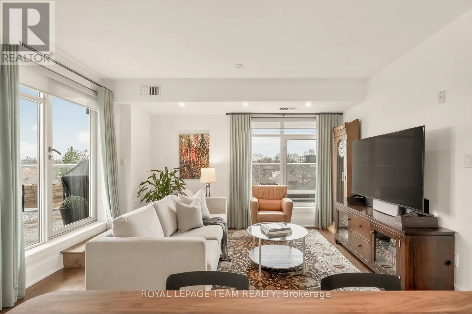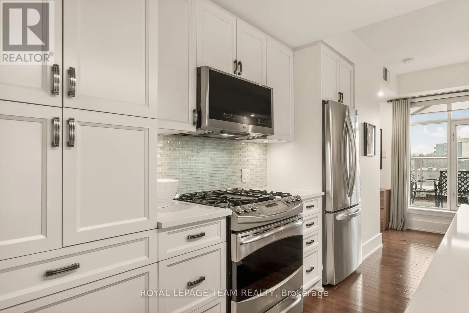 Cross Streets: Holland and Wellington St. W. ** Directions: Parkdale to Holland (South of Wellington). Building is on the East side of Holland. Open House Saturday April 18th 2-4pm. Clean lines, natural light, and 9-ft ceilings define this beautifully updated corner residence in the heart of Wellington Village - reflecting the elevated, livable and modern design Domicile is known for. This 2-bedroom, 2-bath condo features an open-concept layout with hardwood flooring throughout, anchored by a custom quartz and black walnut kitchen island, high-end appliances, and tailored millwork. The living and dining areas flow seamlessly, framed by full-height windows that flood the space with light and create a strong indoor-outdoor connection. Step onto the rare 700 sq. ft. South-West facing terrace, complete with pergola, gas line, and lighting - an ideal extension of the living space. Wonderul for vegetable, herb or floral gardening. Both bathrooms have been thoughtfully renovated with heated floors, quartz finishes, and spa-like details. Custom California Closets enhance both bedrooms. Set in a LEED-certified, smoke-free building with fitness centre, lounge, rooftop terrace, guest suite and visitor parking. Steps to Parkdale Market, local cafés, transit, and river pathways. An impeccably presented, move-in ready home. One oversized parking spot and adjacent private locker included. A must see in Wellington Village! (id:27476)
