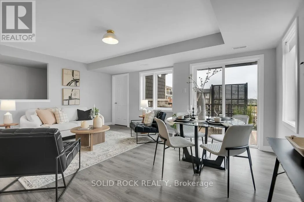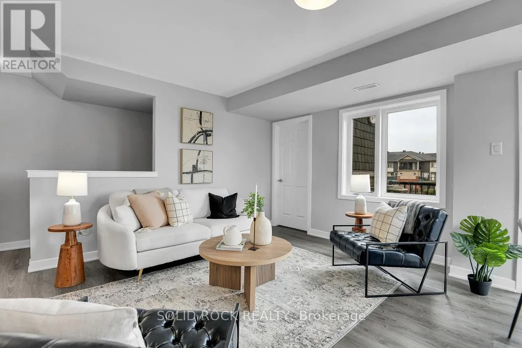Cross Streets: Fernbank and Rouncey. ** Directions: Take Fernbank to Rouncey and Rouncey to Nataulis and then onto Pilot. UPPER, END unit in the family friendly area of Stittsville/Kanata. Enjoy maintenance free living with no yard work and no snow removal for you to do! Built in 2022, this condo townhouse is open concept on the main level with easy clean laminate flooring and extra windows creating a bright space! Upgraded kitchen design with generous island, breakfast bar, pot lights, stainless steel hood fan and sleek white subway tile back splash. Additional closet next to the kitchen can be used as a pantry space. Neutral colour choices ready for your personal touches. Modern finishes throughout this home make it attractive. The primary bedroom has a walk-in closet and private, covered balcony. Two additional bedrooms. Main bathroom features upgraded design choices with stylish colours. Relax outdoors on any of your 2 balcony spaces (one open and one covered). Second level laundry with shelving and storage space. Additional storage room on main level. Designated parking space you can see from your window in the front. No side neighbours-school to be built there in the future. Flexible closing date-choose what works for you! Shopping, groceries and restaurants a few minutes walk away! Pets allowed. Parks and schools are close by. Reasonable condo fees. Open House Saturday (April 18) and Sunday (April 19) 2-4 P.M. (id:27476)