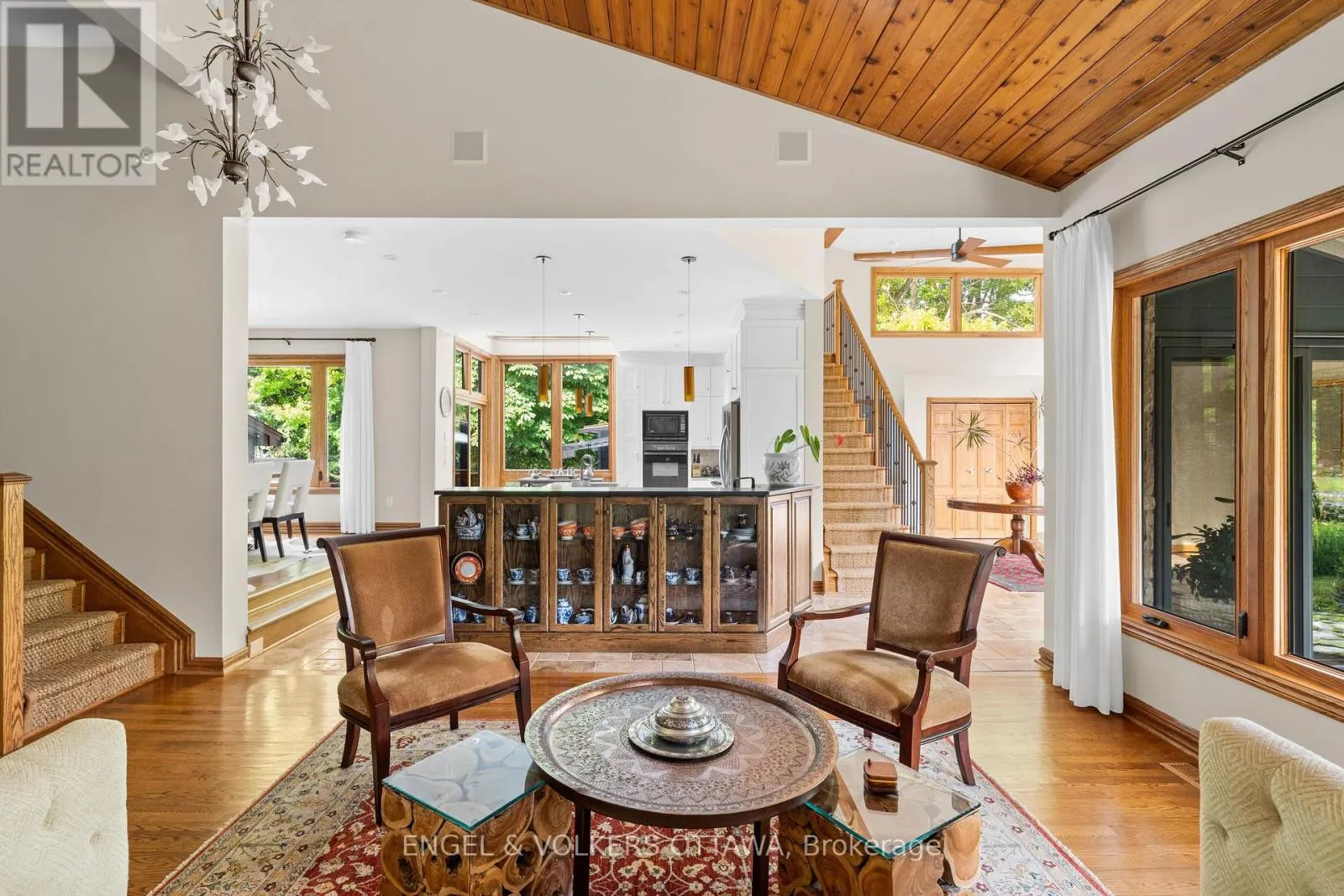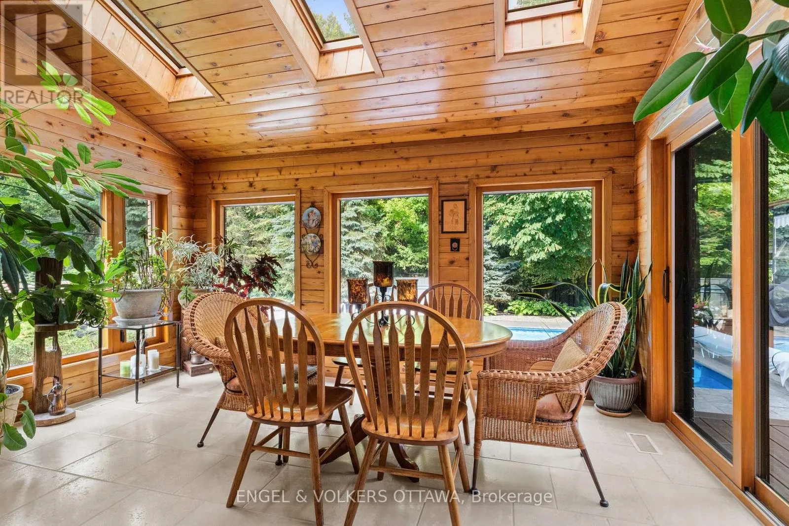 Cross Streets: Vaan Dr & Revol Rd. ** Directions: From Woodroffe Ave, turn onto Vaan Dr and then turn onto Revol Rd. This striking residence is tucked within tranquil Merivale Gardens, known for its spacious lots, tree-lined streets, and direct access to NCC Land. Thoughtfully expanded and renovated in 2012/2013, the home blends timeless stone and brick architecture with modern updates, creating a distinctive and inviting aesthetic. Inside, the grand foyer welcomes with soaring ceilings, natural light, and seamless access to the main living spaces. Vaulted cedar ceilings, oak strip hardwood flooring, and expansive windows define the living and dining rooms, while the chef's kitchen - designed by 2H Interiors - features granite countertops, custom cabinetry, an Electrolux stove & built-in oven, a KitchenAid French-door refrigerator, and dual dishwashers, including a Fisher & Paykel half unit, perfect for entertaining. A spacious eat-in area offers backyard access and casual family dining. The upper level includes a generous primary suite with hardwood floors, large windows overlooking the gardens, a glass-enclosed shower in the ensuite, and a remarkable walk-in closet with vaulted ceilings. Two additional bedrooms, a full bathroom, and a loft-style office with views over the front foyer and the pool outside complete this second level. The lower levels offer abundant living and entertaining space, including a family room with a wood-burning fireplace and wet bar, a dedicated home office, and a spa-level retreat with a sauna, hot tub, and full bathroom. The outdoor space is designed for resort-style living, serviced by a sprinkler system and featuring a large in-ground pool, multiple lounge and dining areas, a firepit patio, herb and vegetable gardens, and a tranquil pond. Backing onto NCC greenspace, the property provides a private retreat with direct access to nature. 37 Revol Road is more than a home - it's a lifestyle, offering a seamless balance of architectural character, modern comforts, and exceptional outdoor living in one of Ottawa's most desirable enclaves. (id:27476)
