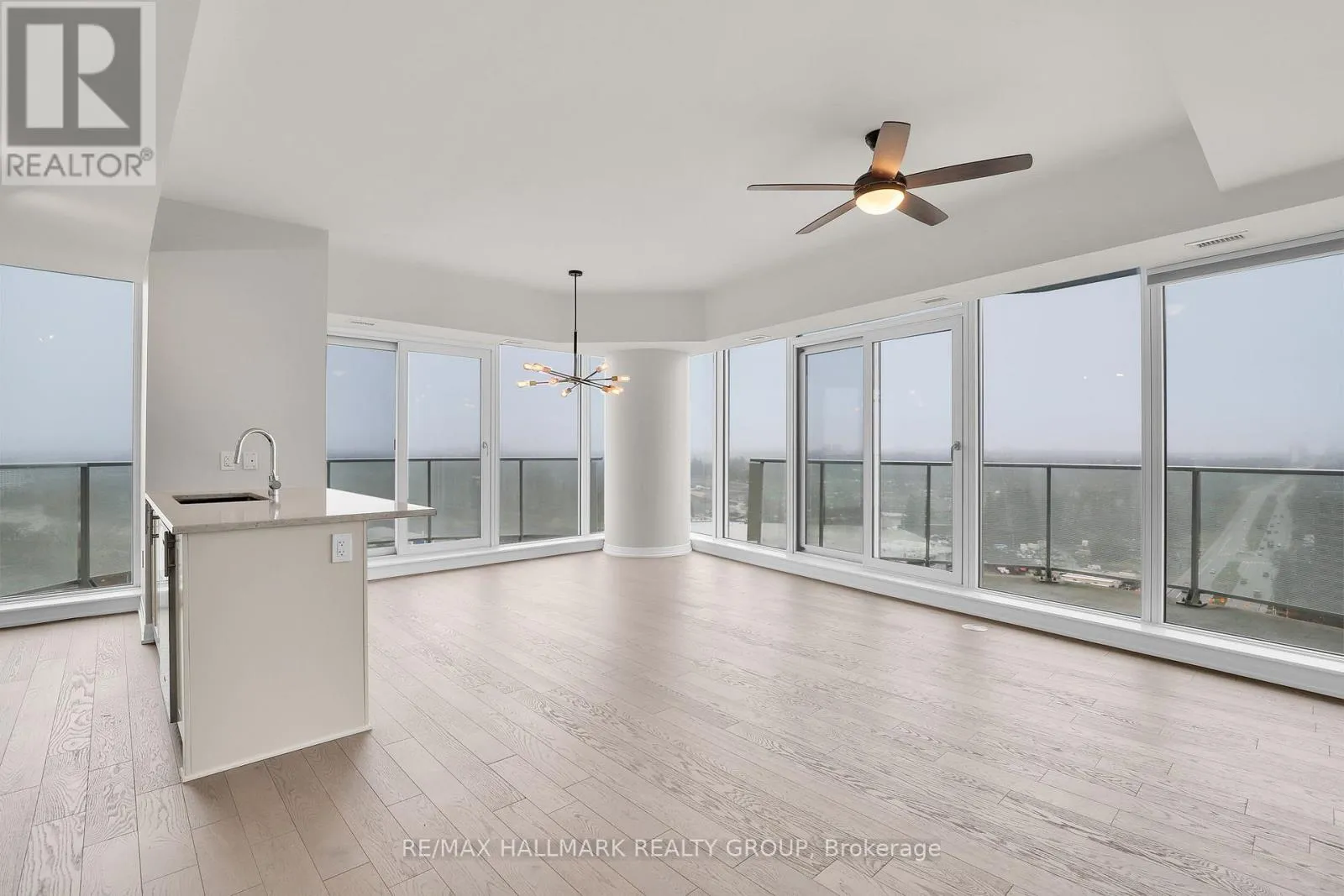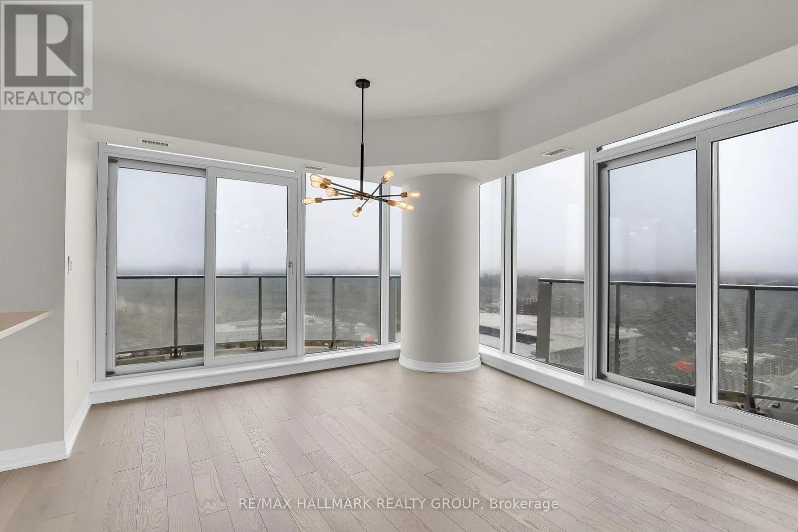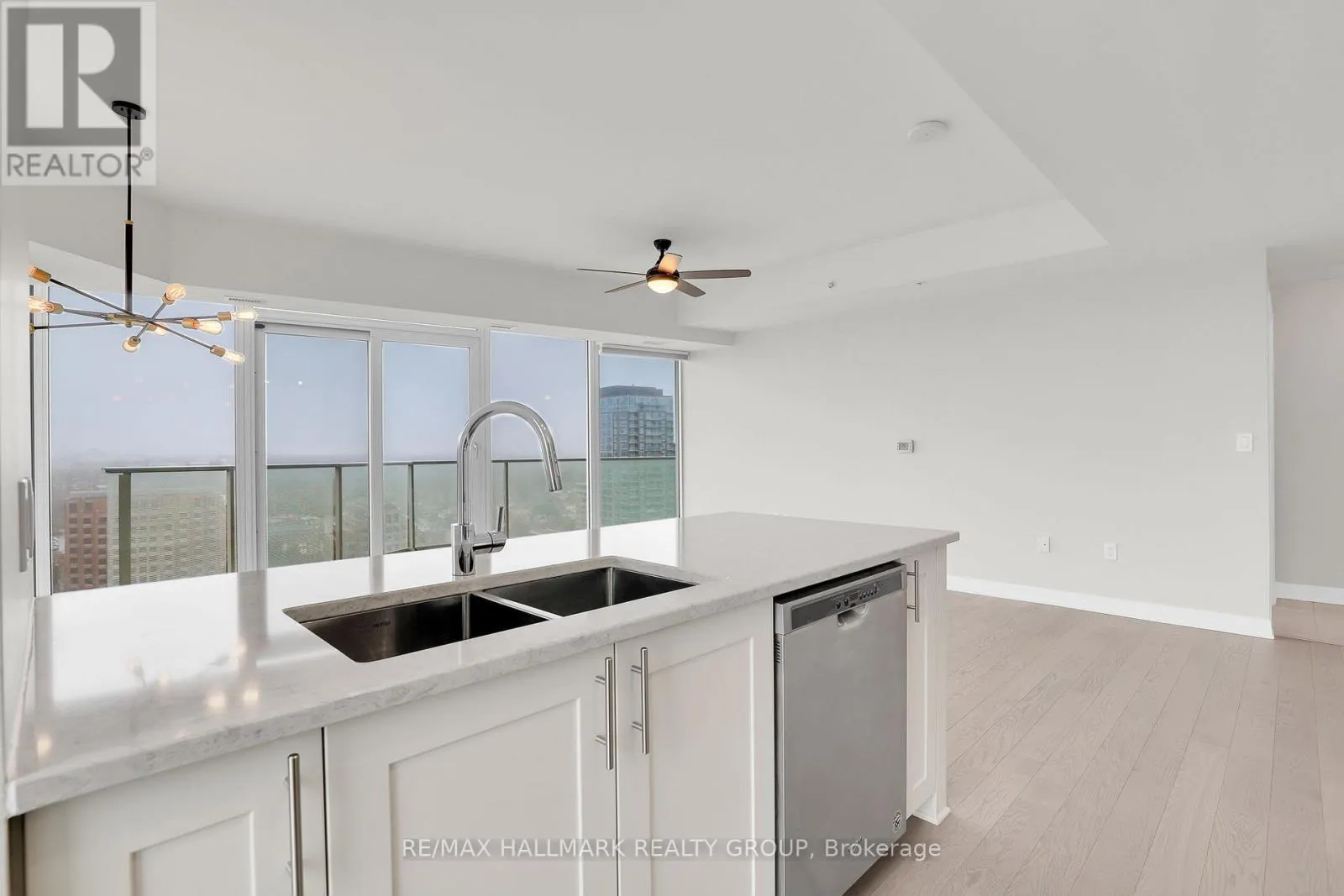 Cross Streets: Carling Preston. ** Directions: Carling east bound to Preston to Adeline to Norfolk. The Icon! Ottawa's tallest tower set within Little Italy and overlooking a Unesco world heritage site - Dows Lake and the Rideau Canal. Stunning 180 degree southern views from this corner unit, premium finishes and flawless attention to detail. Floor to ceiling glass frames the open-plan and features stylish two-tone kitchen with gorgeous quartz counters and stainless appliances, designer baths including primary bedroom ensuite with glass shower, living, and dining room with on-trend flooring, motorized window blinds, fresh new paint and glass sliding doors that create a seamless connection to three separate balconies. Parking and locker included! This pet-friendly building offers a grand entry foyer, fitness centre, yoga studio, movie theatre, indoor pool and sauna, a 24hr concierge, guest suites, 2 party rooms and so much more. Experience a view from every room and steps to renowned dining, Dows Lake, light rail and endless bike paths. (some photos virtually staged). (id:27476)