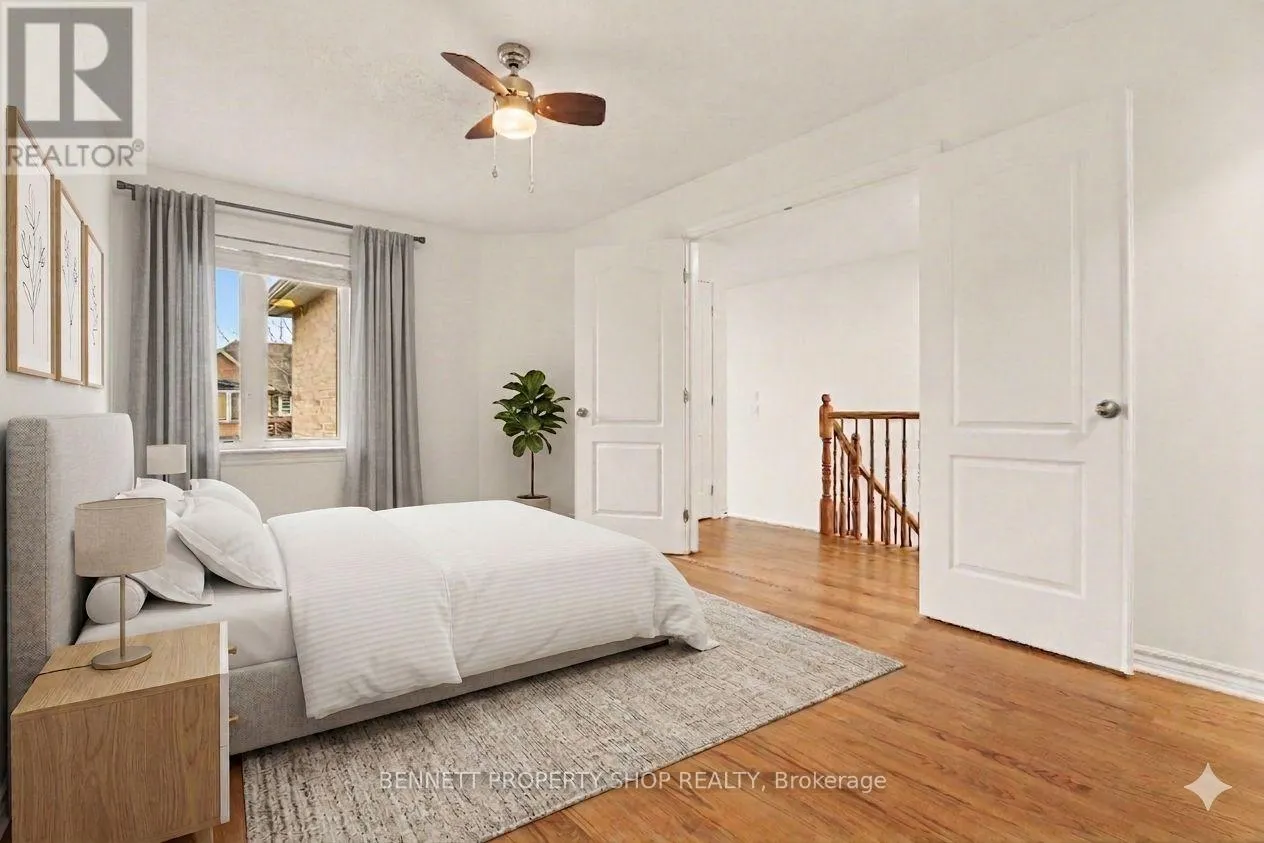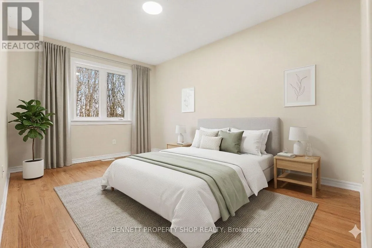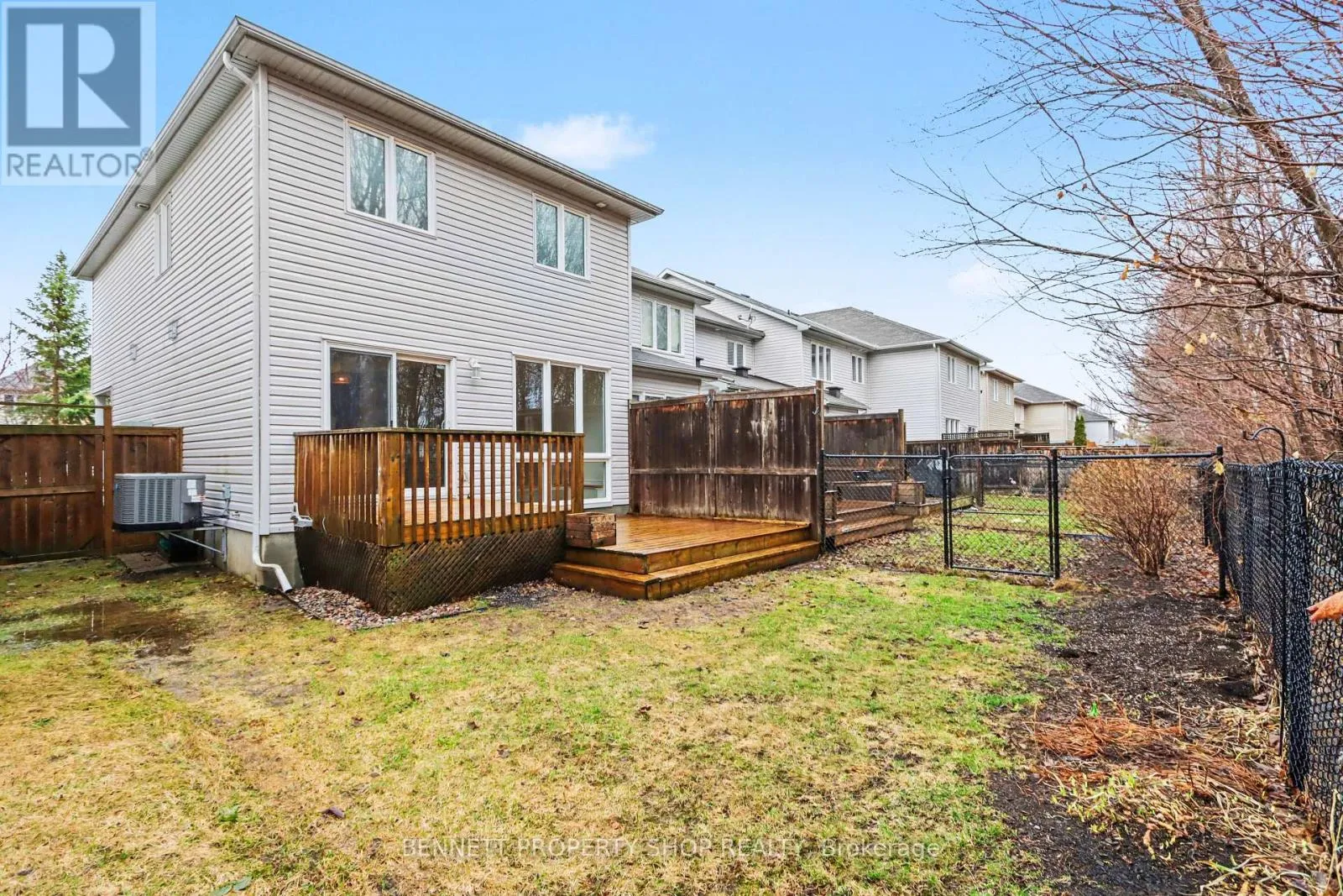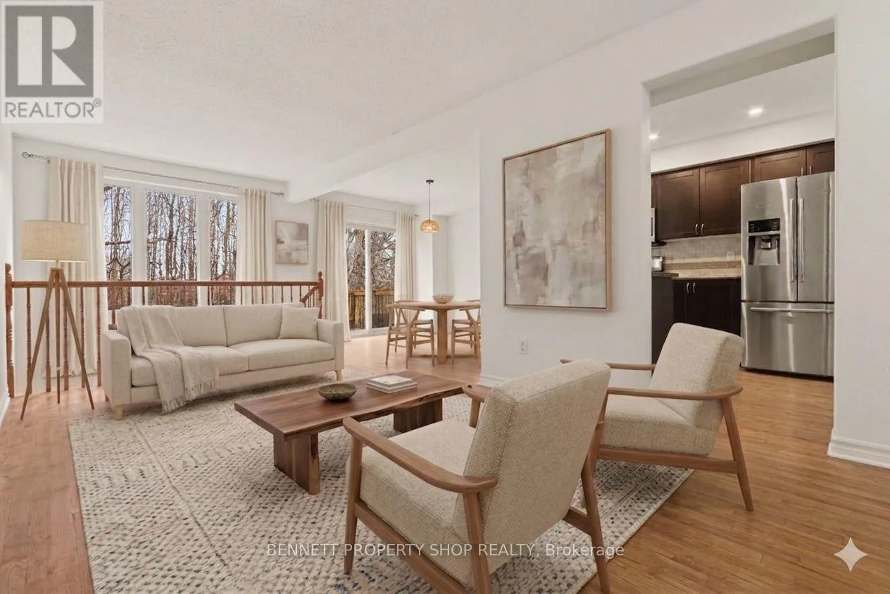 Cross Streets: Abbott Street East - Talltree Crescent. ** Directions: Hazeldean to Iber Td. South on Abbott St E, to Talltree. With unbeatable access to every daily convenience, this end unit townhome delivers the space, comfort, and privacy families look for. Hardwood floors, a separate dining room, and multiple living areas create a layout that adapts effortlessly to busy routines and gatherings alike. Upstairs, three generous bedrooms include a spacious primary suite with a 4-piece ensuite and walk-in closet, plus a dedicated laundry room for true day-to-day ease. An impressive upper-level family room with vaulted ceilings and a gas fireplace adds a dramatic, light-filled retreat perfect for relaxing or entertaining. With three distinct living spaces, the home offers exceptional flexibility: a welcoming main floor living area, the striking upper level family room, and a fully finished lower level rec room ideal for a home theatre, games room, or hobby zone. Step outside to a large deck overlooking a private, treed backdrop with no rear neighbours-a rare, peaceful outdoor escape. Close to shopping, schools, parks, trails and public transit, this home blends comfort, privacy, and convenience in one standout package. Recent updates include New Carpet on stairs, paint and LED lighting throughout (April 2026). Some photos are digitally enhanced. (id:27476)