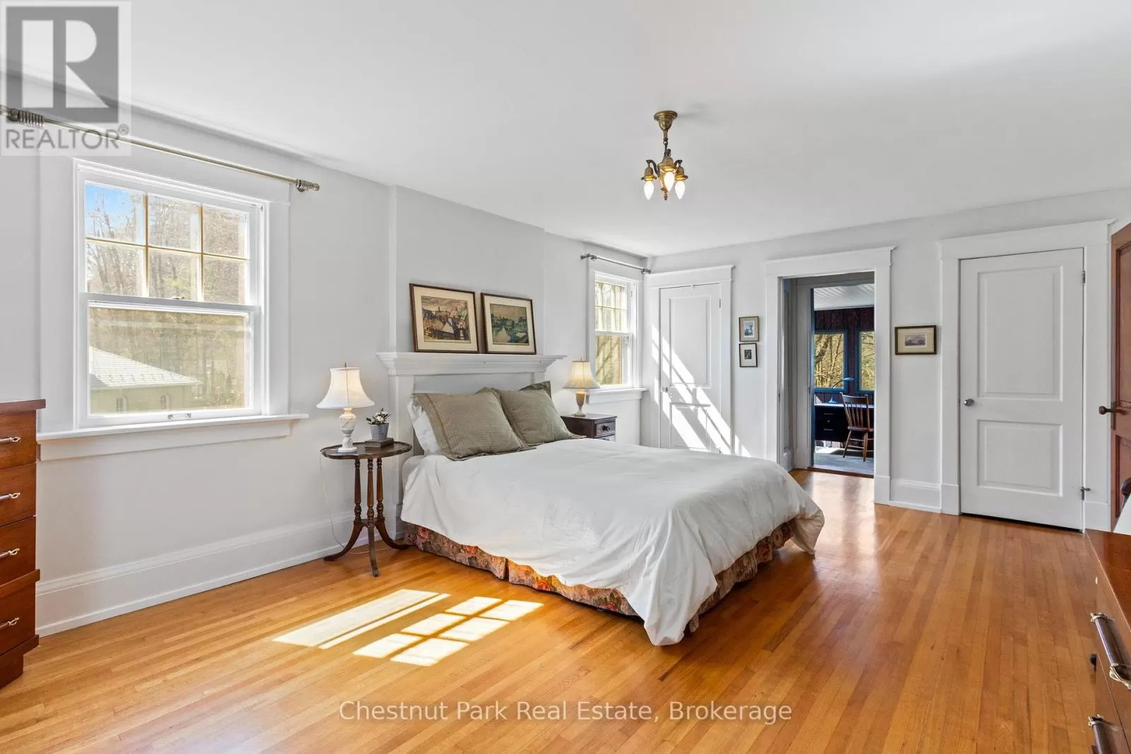 Cross Streets: 2nd Ave E & 4th St W. ** Directions: Take 2nd Ave E South from downtown, Right on 4th St W to house on Right. A Treasure to Behold, this stunning Heritage-style waterfront home is a masterpiece of timeless beauty and grace. Nestled on one of Owen Sound's most sought-after streets, this majestic century residence offers a rare blend of character, charm and potential. Classic curb appeal welcomes you, with a private rear yard that backs onto the tranquil Sydenham River. The landscape here is a year-round showpiece; peaceful, ever-changing, and deeply inspiring. Step inside to discover warm, inviting spaces that speak of history and comfort. The main floor boasts a cozy living room, a formal dining room perfect for family gatherings, a convenient 2-piece bath and a well-appointed kitchen that opens into a charming breakfast nook. One of the home's highlights is the sunroom, bathed in natural light with full windows that showcase stunning views of the river, wildlife and garden in every season. Upstairs, you'll find a thoughtfully laid-out second level with a reading nook, a spacious 4-piece bathroom and a large primary bedroom that includes its own sun-filled office or sitting room ideal for peaceful mornings or inspired work-from-home days. Gleaming hardwood floors run throughout (under most broadloom), enhancing the traditional elegance of the home. Adding even more value is an unfinished loft space, full of potential for future living space, studio or guest quarters. The unique attached potting shed provides ideal enclosed storage for garden tools, toys, or seasonal equipment. This property is not just a house, it's a sanctuary, a storybook setting waiting for its next chapter. Come explore this riverfront GEM and imagine your life unfolding within its historic walls. (id:27476)