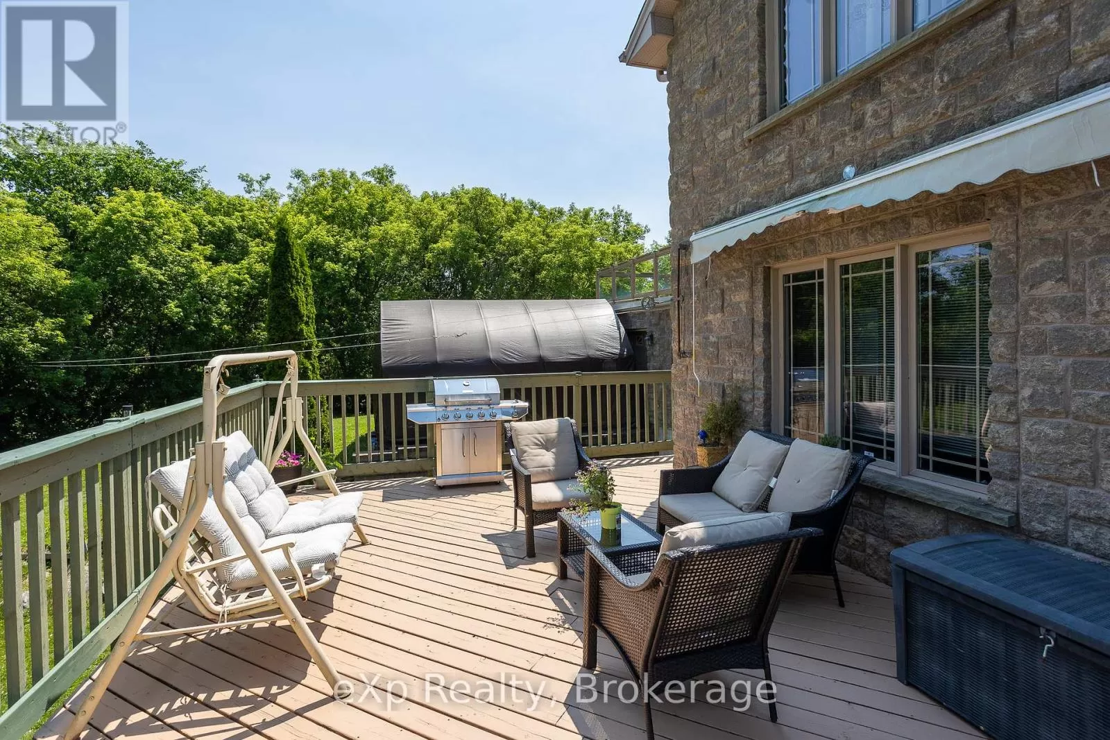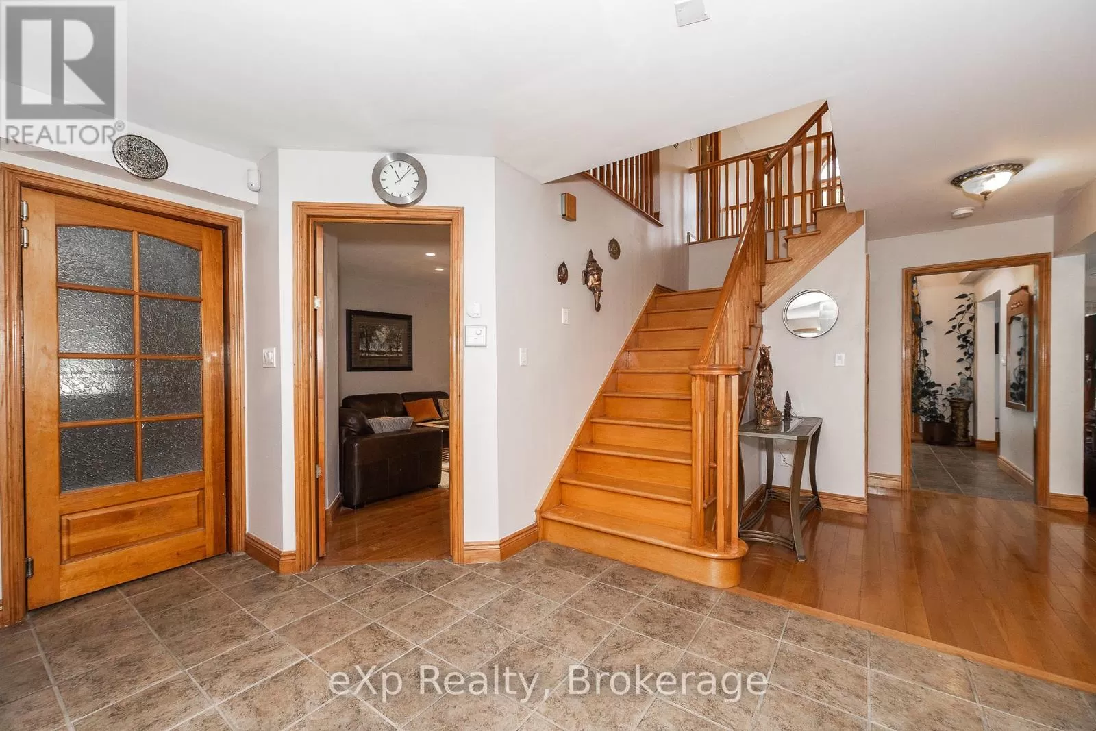 Cross Streets: 9th Ave E. ** Directions: From 9th Ave E, turn east (right) onto 26th St. E. This spacious stone home offers over 3,200 sq ft of finished living space, ideal for large families or multi-generational living. The main floor features a grand foyer with vaulted ceilings, a powder room, and a striking solid maple staircase that sets the tone for the quality throughout. You'll find an inviting family room filled with natural light, a formal living/dining area perfect for gatherings, and a large custom kitchen with solid maple cabinetry, granite countertops, built-in appliances including a gas cooktop and double wall ovens, a center island with bar-top seating, and a bright breakfast area with access to the back deck. Maple hardwood and tile flooring run throughout both the main and second levels. Upstairs, there are five spacious bedrooms and three full bathrooms, including a grand primary suite with a walk-through closet and 4-piece ensuite. The second floor also offers access to a rooftop patio with hot tub hook-up -- an ideal spot to relax and unwind. The finished lower level includes a self-contained in-law suite with kitchen, 3-piece bath, laundry, living area, walk-out to a patio, and walk-up access to the attached double garage. The remaining lower level space is used for storage and a rec room, with potential for future finishing. With plenty of room for separation and privacy, along with generous shared spaces perfect for everyone to gather, this home is well-suited for a variety of living arrangements. Set on a quiet in-town street on nearly half an acre, with an interlocking stone driveway, large deck with retractable awning, and close proximity to all of Owen Sounds amenities, this home offers exceptional space, functionality, and timeless design. (id:27476)