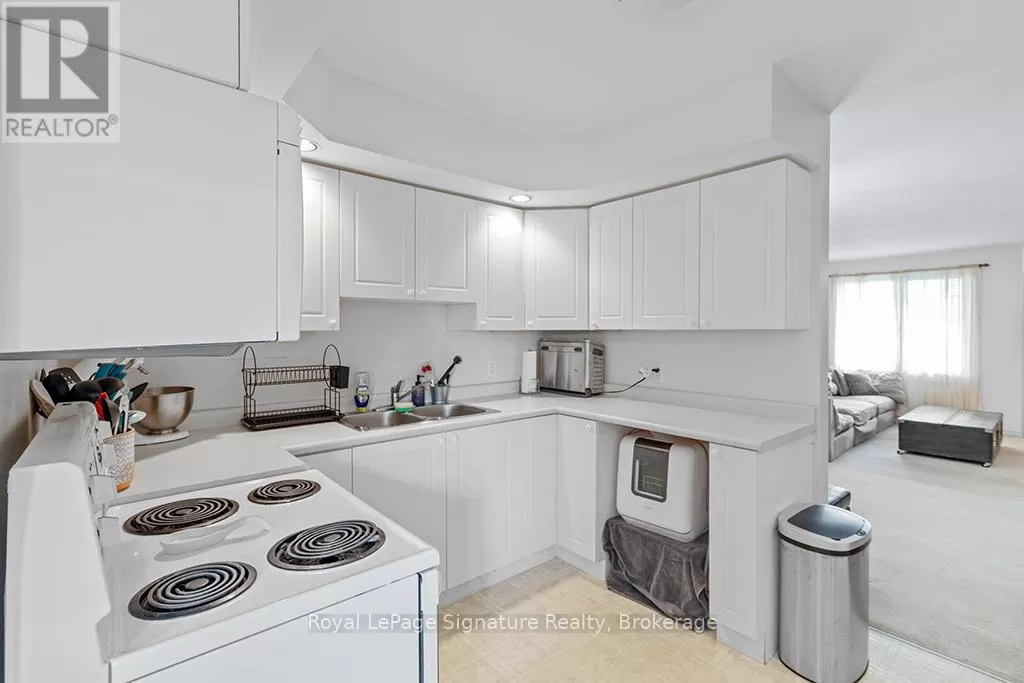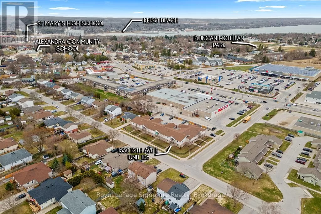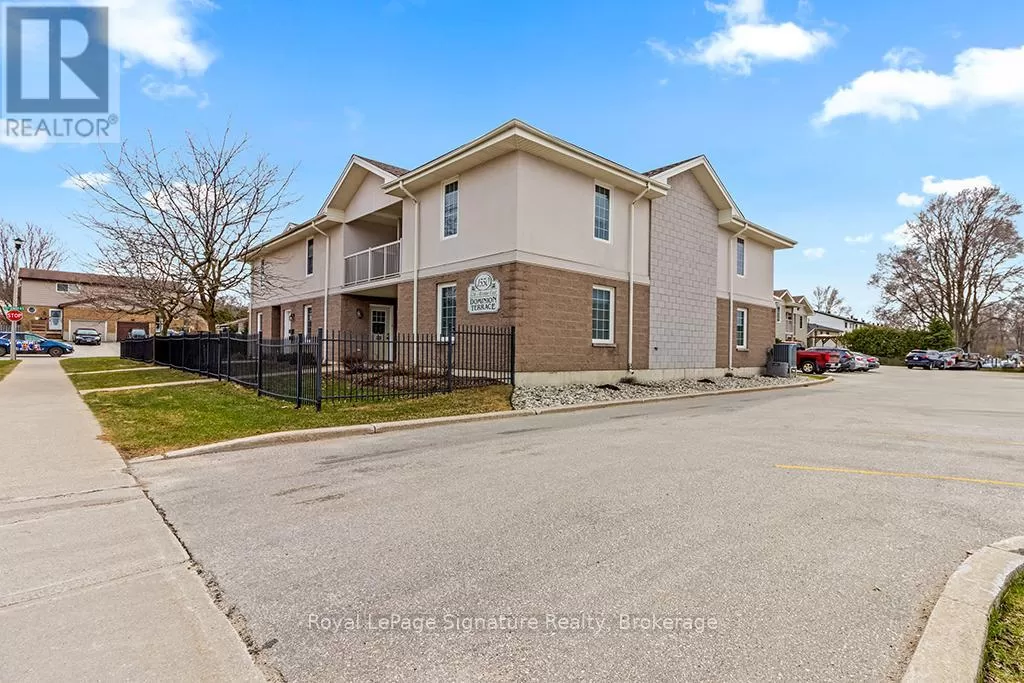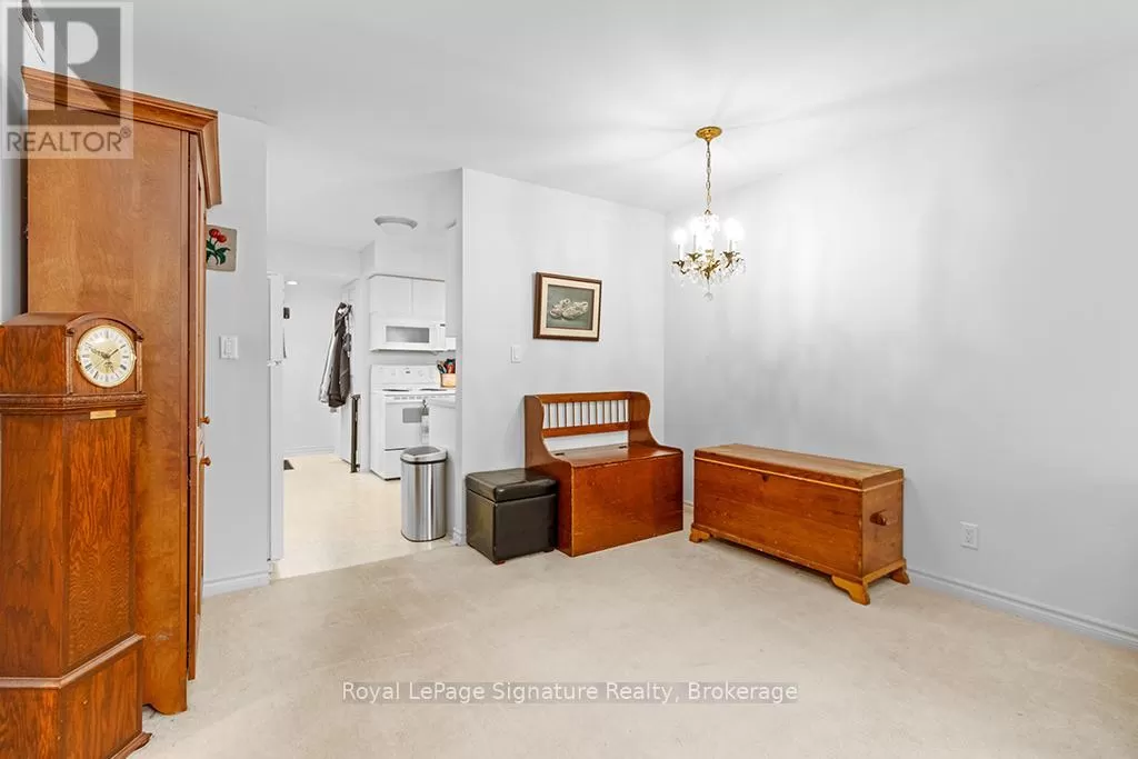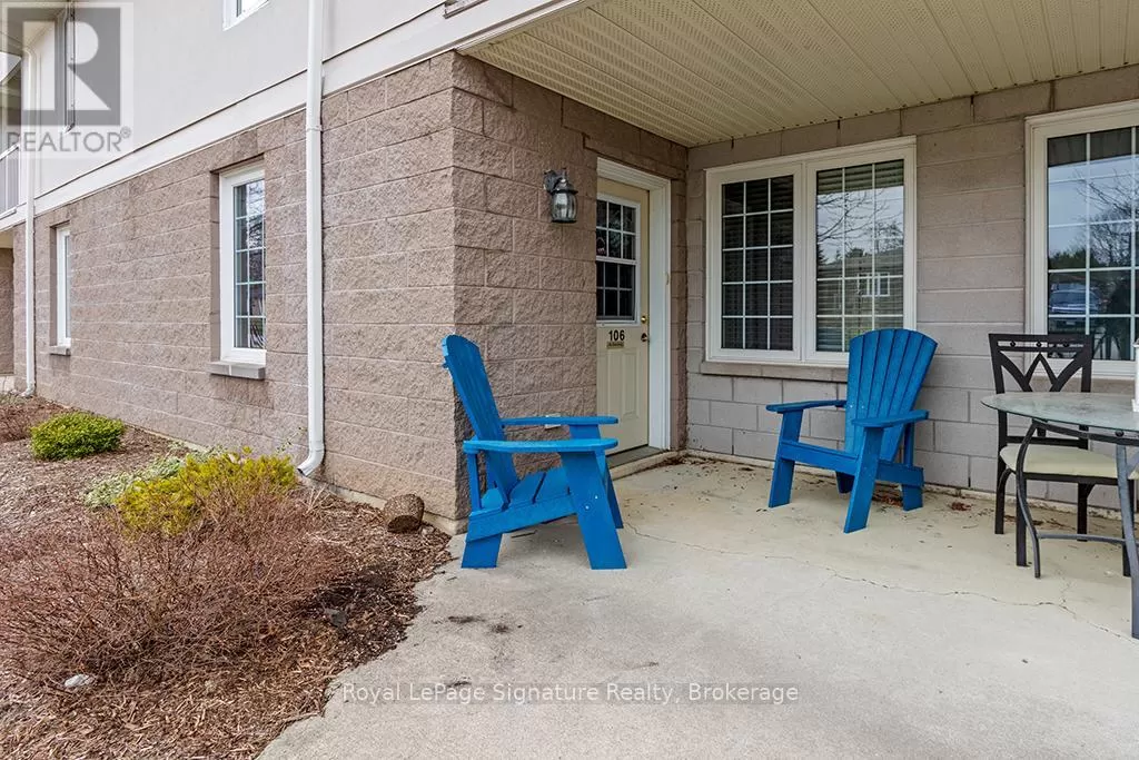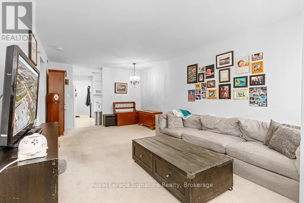 Cross Streets: 12th Ave E & 16th St E. ** Directions: Turn south onto 12 Avenue East from 16th St E (located behind Shoppers Drug Mart). AFFORDABLE LIVING with low condo fees in a convenient east side location. Welcome to Dominion Terrace! This ground-level, two-bedroom unit offers both a front entrance and direct access from the parking area making coming and going a breeze. Step inside to find a bright, open-concept living and dining space, complete with a white kitchen that provides plenty of cupboard storage and counter space. The in-suite laundry and generous storage area add to the everyday convenience. Enjoy your morning coffee or unwind in the afternoon on your outdoor patio. The spacious primary bedroom is large enough for a king sized bed & features a double closet, while the second bedroom easily adapts as a home office, guest room, or den with cupboards for additional storage. Economical condo fees, forced-air electric heating, and central air ensure comfort and affordability year-round. Located near grocery stores, restaurants, public transit, Georgian College, and the hospital, this condo is perfectly situated for retirees, busy professionals, or students. Don't miss this opportunity to enjoy low-maintenance living in a well-maintained building! (id:27476)