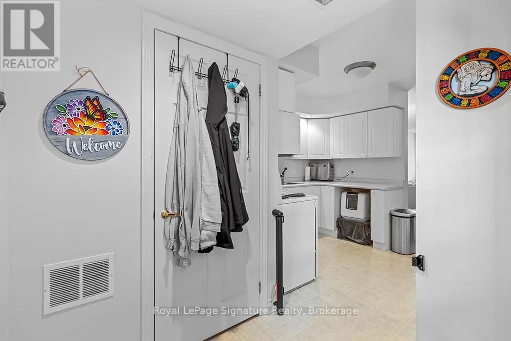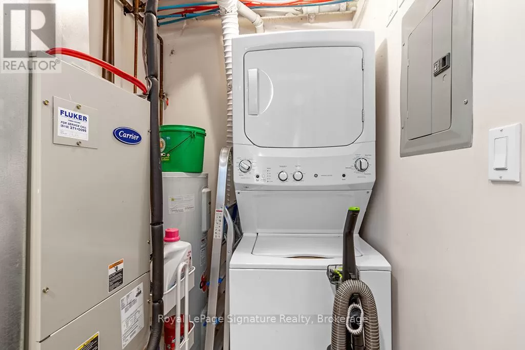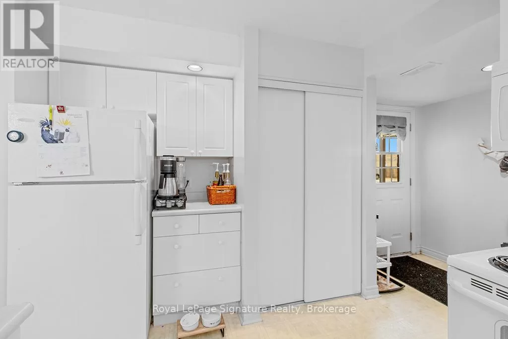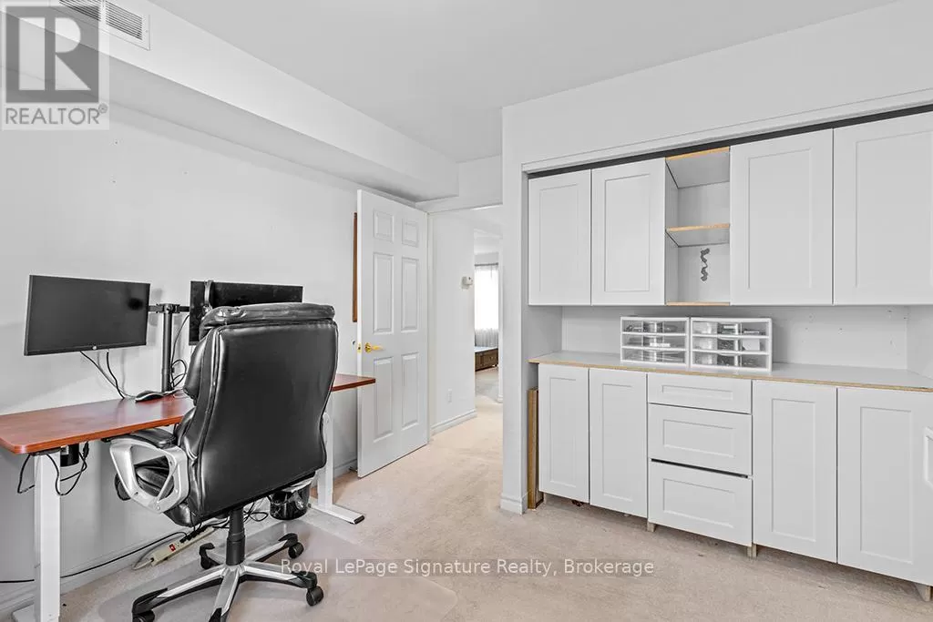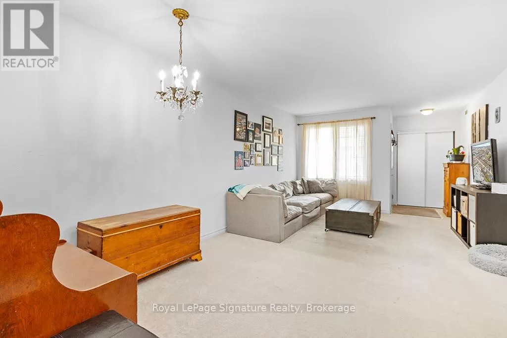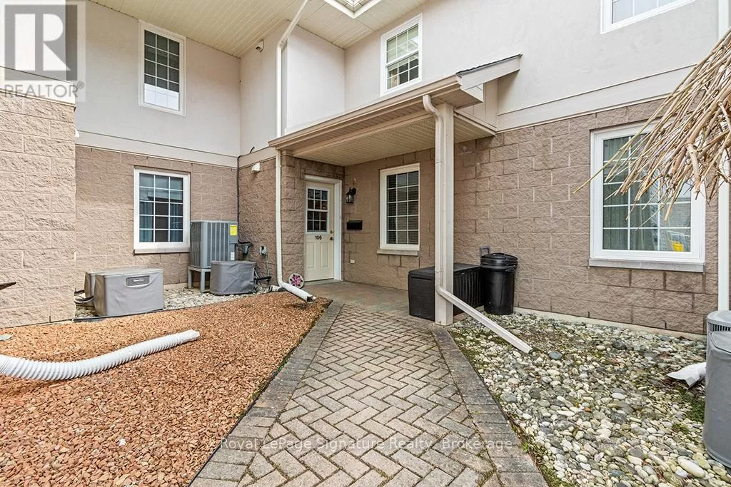 Cross Streets: 12th Ave E & 16th St E. ** Directions: Turn south onto 12 Avenue East from 16th St E (located behind Shoppers Drug Mart). AFFORDABLE LIVING with low condo fees in a convenient east side location. Welcome to Dominion Terrace! This ground-level, two-bedroom unit offers both a front entrance and direct access from the parking area making coming and going a breeze. Step inside to find a bright, open-concept living and dining space, complete with a white kitchen that provides plenty of cupboard storage and counter space. The in-suite laundry and generous storage area add to the everyday convenience. Enjoy your morning coffee or unwind in the afternoon on your outdoor patio. The spacious primary bedroom is large enough for a king sized bed & features a double closet, while the second bedroom easily adapts as a home office, guest room, or den with cupboards for additional storage. Economical condo fees, forced-air electric heating, and central air ensure comfort and affordability year-round. Located near grocery stores, restaurants, public transit, Georgian College, and the hospital, this condo is perfectly situated for retirees, busy professionals, or students. Don't miss this opportunity to enjoy low-maintenance living in a well-maintained building! (id:27476)