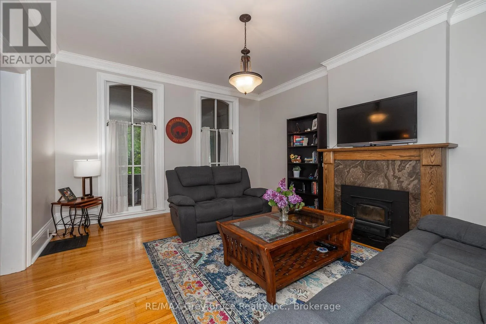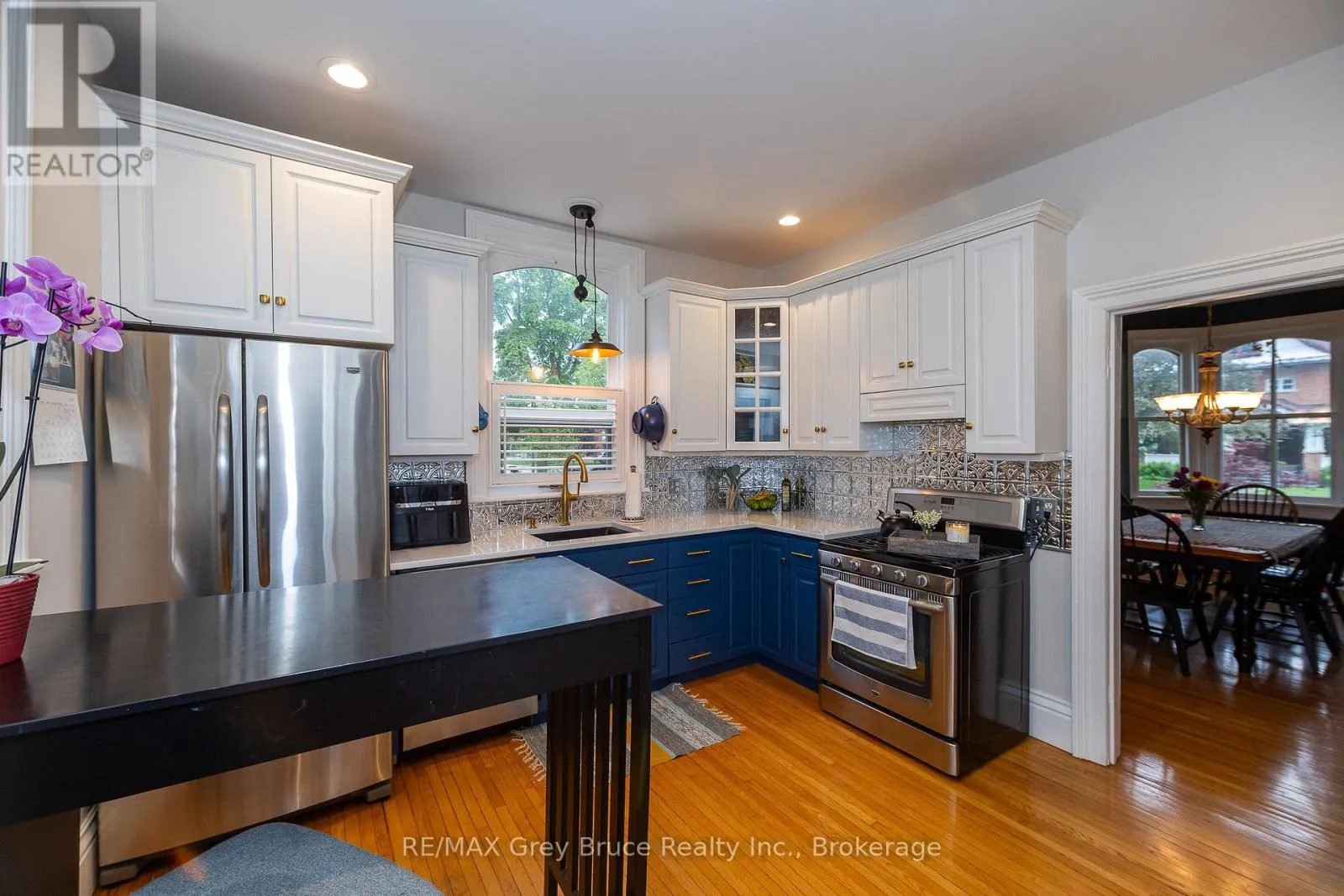 Cross Streets: 3rd Ave W & 9th St W. ** Directions: From 9th St W turn north on 3rd Ave W. Historic elegance meets modern comfort! This beautiful 4 bedroom, 3 bath home offers timeless character and modern updates on one of Owen Sounds most prestigious streets. Surrounded by landmarks like the former U.S. Consulate, Billy Bishop House, and James Harrison House, it's just a short walk to the Mill Dam, Farmers Market, Library, and the River District. Inside, you'll find soaring ceilings, hardwood floors, oversized windows, and a sun-filled living room overlooking the charming verandah. The custom kitchen with quartz countertops and ample cabinetry flows into a formal dining room perfect for entertaining. Upstairs features three bedrooms and a large family bath with laundry, while the third-floor primary suite boasts skylights, a sitting area, and a spa-style ensuite. Heated floors in both full baths and the family room add year-round comfort.The fenced backyard is a private retreat with mature landscaping, waterfalls, a pond, stone patio, and expansive deck. With natural gas heating, central air, a basement walkout, and a rare 52' x 186.6' lot, this property offers history, charm, and an unbeatable location. (id:27476)