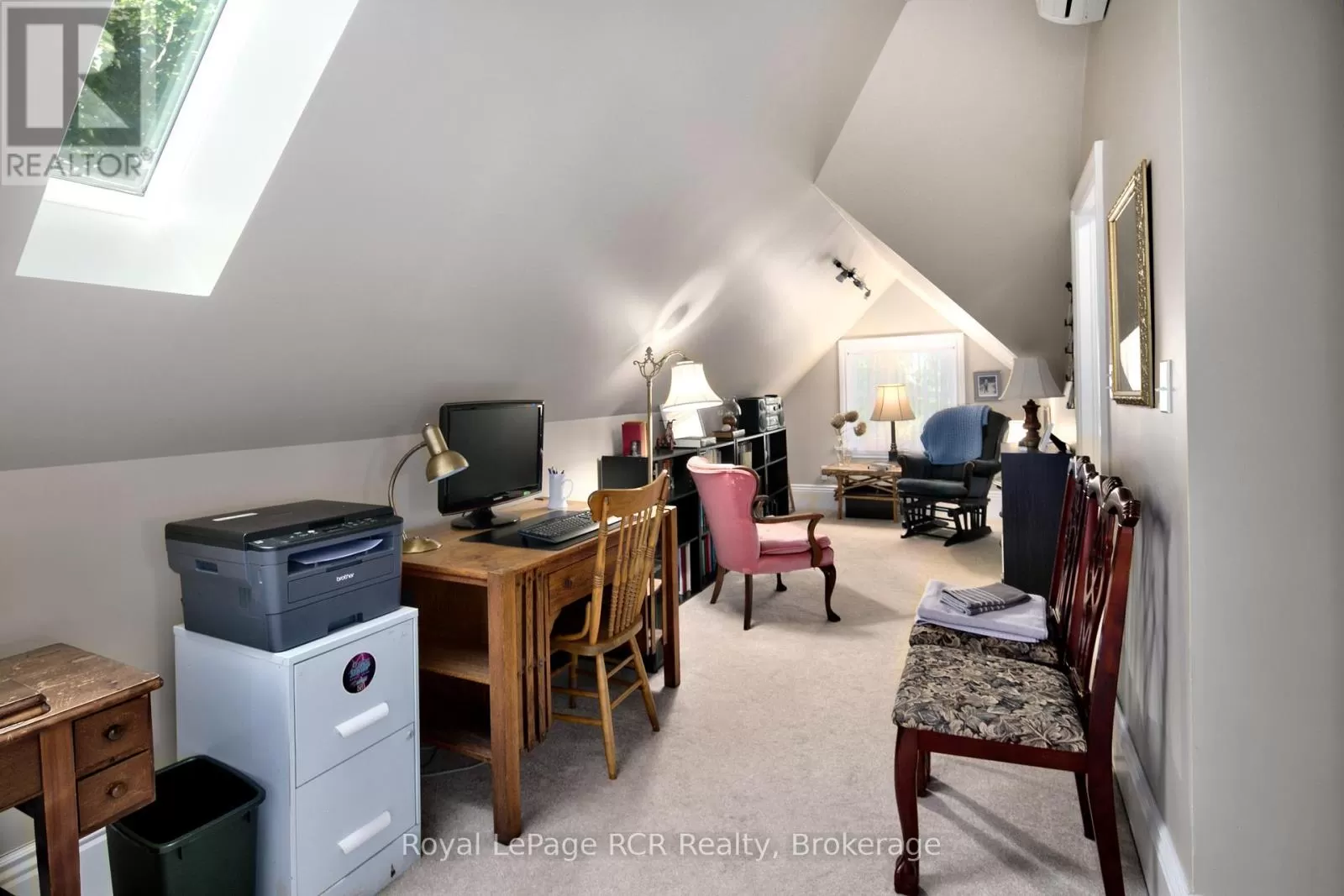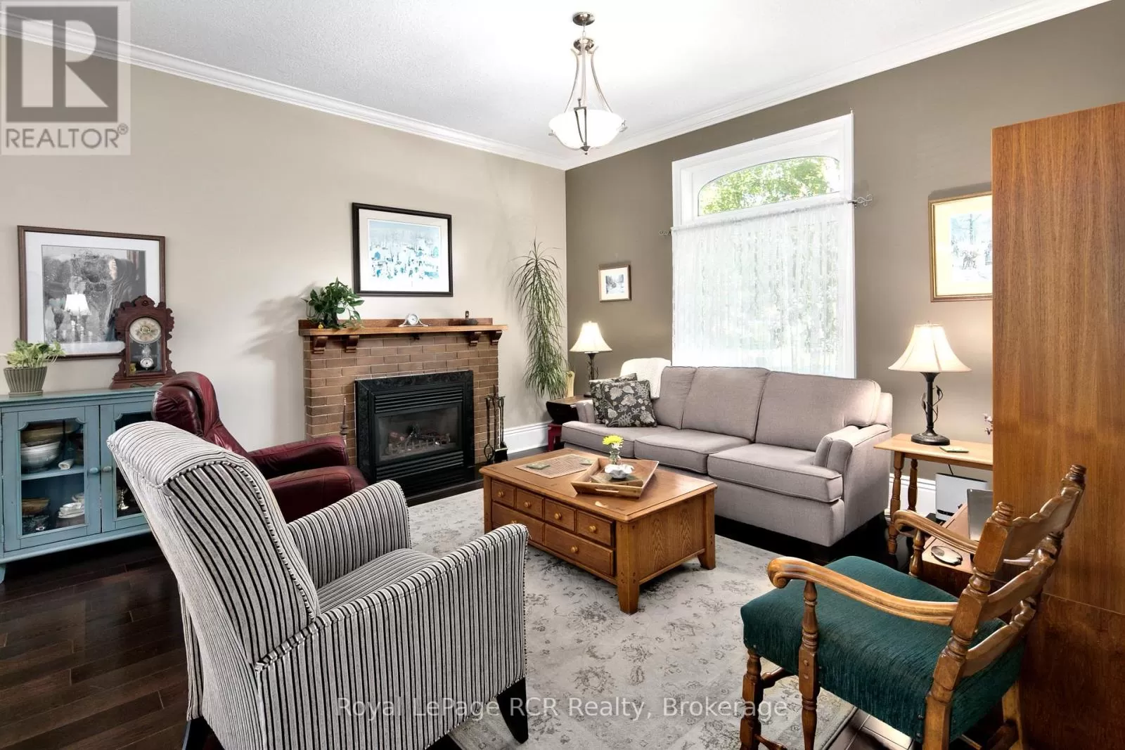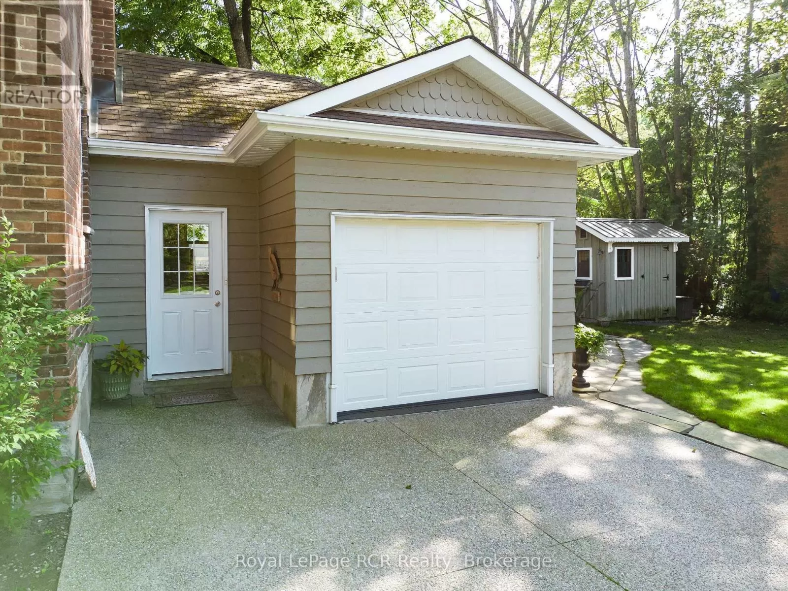 Cross Streets: 4TH AVE W/12TH ST W. ** Directions: 1198 4TH AVE W, OWEN SOUND, ON. Welcome to this 4 bed 3 bath 2.5-storey century home with attached garage, offering 2,616 square feet of beautifully updated living space while preserving its timeless character. Set on a corner lot in a desirable, family-friendly neighbourhood, this home combines classic charm with modern convenience. The inviting front porch sets the tone, leading into a warm and welcoming open concept main floor. The kitchen features an island with granite countertops, a large pantry, and engineered hardwood floors, opening to a dining area that flows seamlessly into the spacious living room. Here, soaring high ceilings, a cozy gas fireplace, hardwood flooring, and custom crown molding create an elegant space for both everyday living and entertaining. A convenient 2-pc bathroom completes the main level. Upstairs, the primary bedroom is generously sized with a good closet, accompanied by two additional bedrooms, a full 4-pc bathroom, and a well-placed laundry area. The finished attic offers versatility with a fourth bedroom or recreation room, along with its own 3-pc bathroom and dedicated heat pump and A/C. The unfinished basement provides ample storage and workshop space. Outdoors, a flagstone patio, mature trees, and a storage shed add to the property's appeal. The single attached garage with a concrete driveway enhances both functionality and convenience. Additional features include a fibreglass roof (2018), forced-air natural gas furnace with central air, and ceiling fans in all bedrooms. With its private side entrance, thoughtful renovations, and unbeatable location within walking distance to Kelso Beach and the harbour, this century home is the perfect blend of comfort, character, and lifestyle. (id:27476)