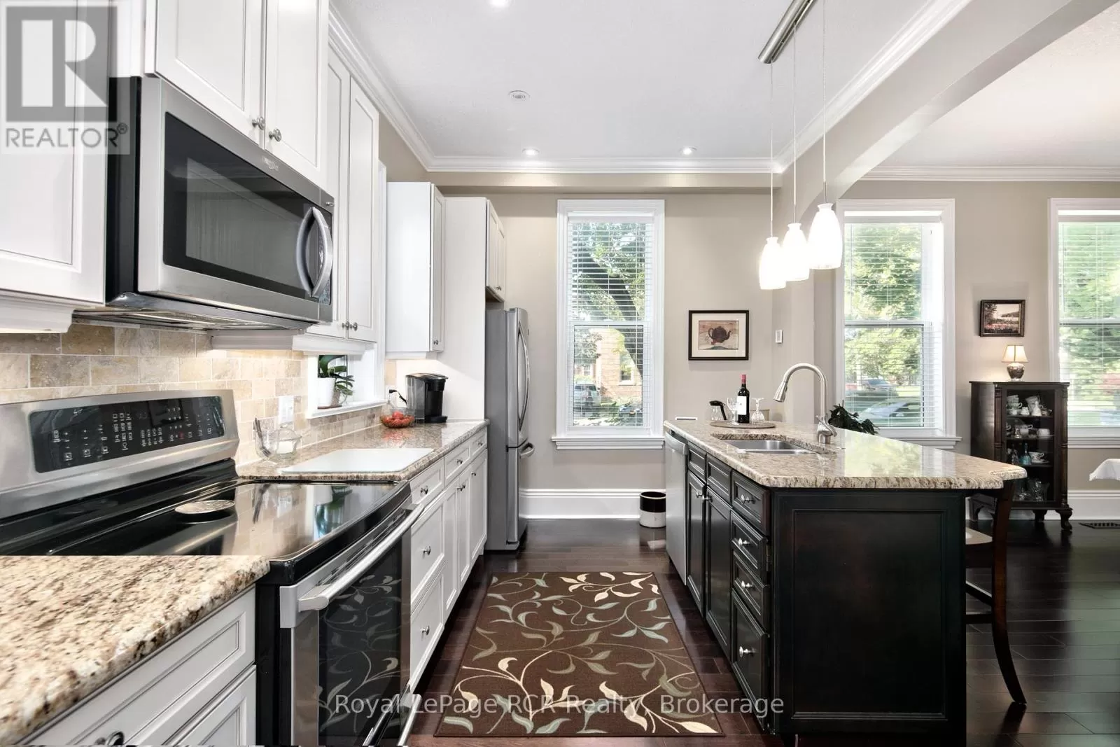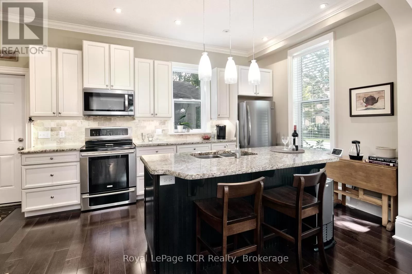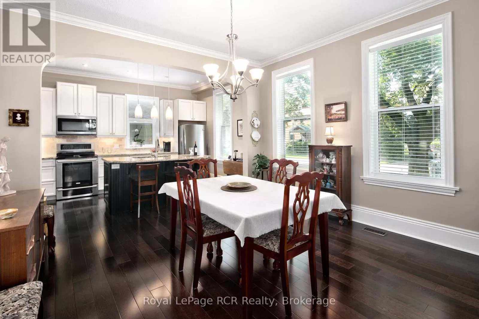 Cross Streets: 4TH AVE W/12TH ST W. ** Directions: 1198 4TH AVE W, OWEN SOUND, ON. Welcome to this 4 bed 3 bath 2.5-storey century home with attached garage, offering 2,616 square feet of beautifully updated living space while preserving its timeless character. Set on a corner lot in a desirable, family-friendly neighbourhood, this home combines classic charm with modern convenience. The inviting front porch sets the tone, leading into a warm and welcoming open concept main floor. The kitchen features an island with granite countertops, a large pantry, and engineered hardwood floors, opening to a dining area that flows seamlessly into the spacious living room. Here, soaring high ceilings, a cozy gas fireplace, hardwood flooring, and custom crown molding create an elegant space for both everyday living and entertaining. A convenient 2-pc bathroom completes the main level. Upstairs, the primary bedroom is generously sized with a good closet, accompanied by two additional bedrooms, a full 4-pc bathroom, and a well-placed laundry area. The finished attic offers versatility with a fourth bedroom or recreation room, along with its own 3-pc bathroom and dedicated heat pump and A/C. The unfinished basement provides ample storage and workshop space. Outdoors, a flagstone patio, mature trees, and a storage shed add to the property's appeal. The single attached garage with a concrete driveway enhances both functionality and convenience. Additional features include a fibreglass roof (2018), forced-air natural gas furnace with central air, and ceiling fans in all bedrooms. With its private side entrance, thoughtful renovations, and unbeatable location within walking distance to Kelso Beach and the harbour, this century home is the perfect blend of comfort, character, and lifestyle. (id:27476)