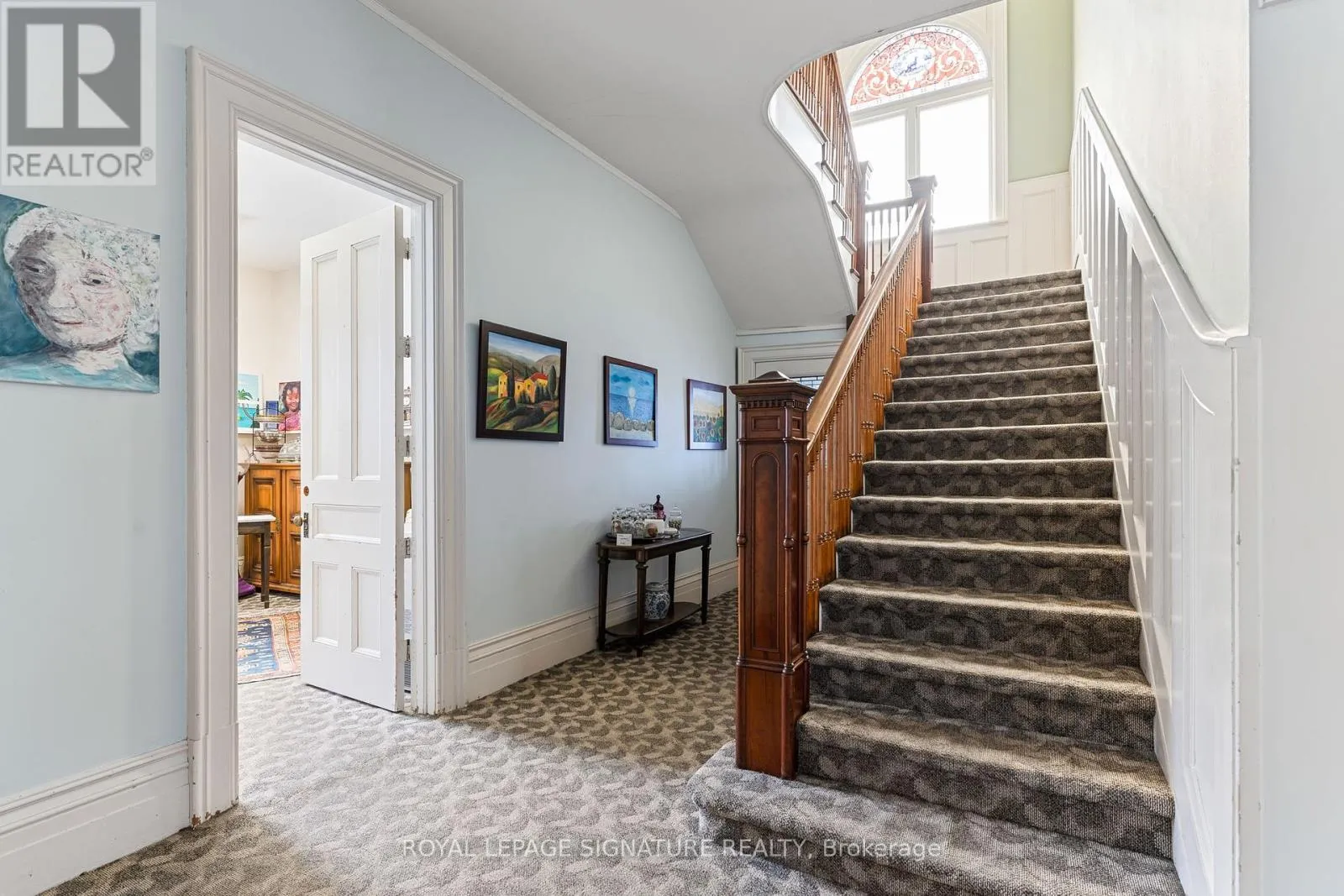 10th Street West and First Avenue West This remarkable 1893 Queen Anne Revival offers a rare blend of architectural beauty and proven financial success. The estate operates as a licensed bed & breakfast, including a fully renovated carriage house featuring two independent rental units. The two buildings are separate structures, providing flexible living arrangements and income across the property. Immediate, transferrable revenue from day one, is a privilege reserved for the discerning owner.Inside the main home, period details are showcased through original stained glass, intricate millwork, a stately newel post, and a signature tower with sweeping river views. The thoughtfully designed spaces cater to both leisure and business guests, with a welcoming library perfect for quiet work, sunlit living and dining rooms ideal for meetings or gatherings, a butlers pantry, large kitchen, and convenient powder room. Upstairs, four oversized bedrooms await, including a spacious primary suite, two generously sized bathrooms, thoughtfully designed to serve both family and guests with ease. Full upper story and roof deck available for conversion. Steeped in history, this home was built for to Dr. W. George Dow, back in 1893, and has since served as a medical office, insurance business, and community gathering place. As a timeless landmark, it stands in the very heart of Owen Sounds vibrant hub, offering the unique ability to live and work under one roof with a strong, proven, lucrative income stream already in place. (id:27476)