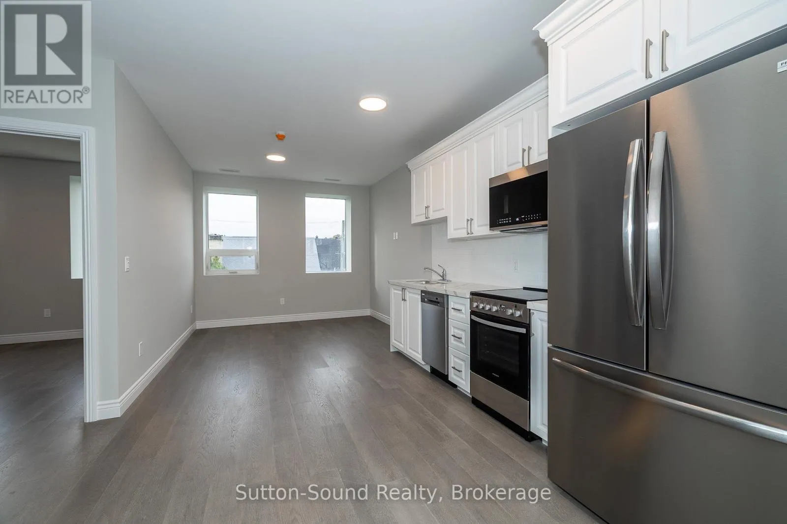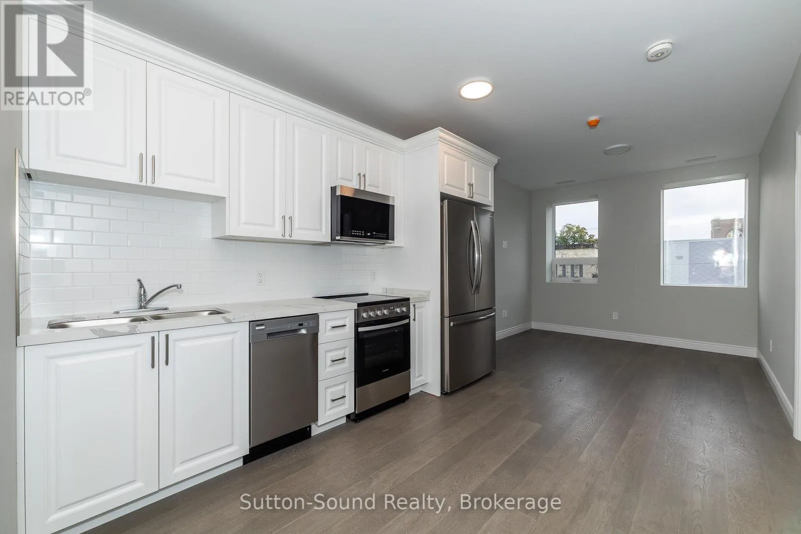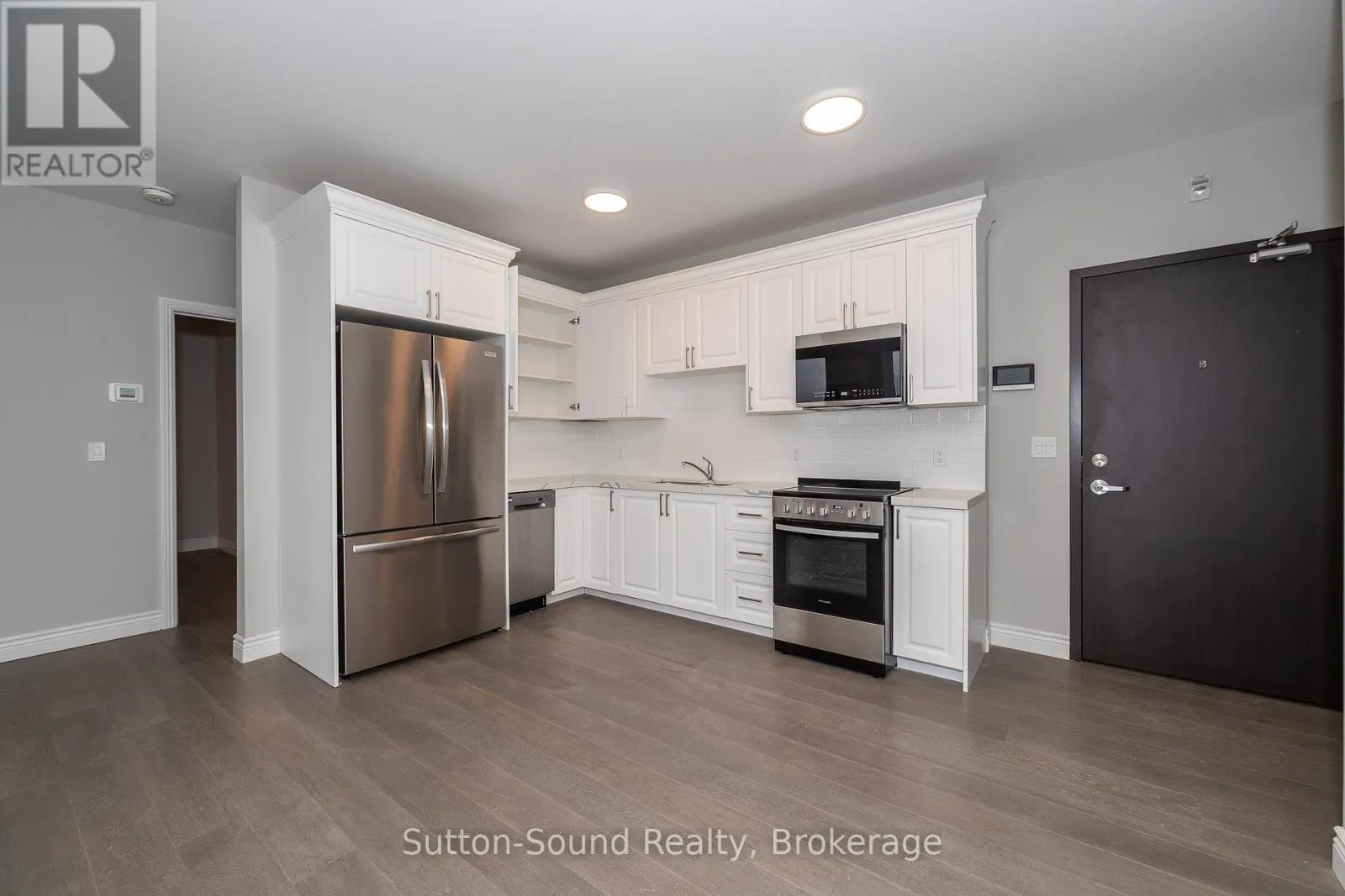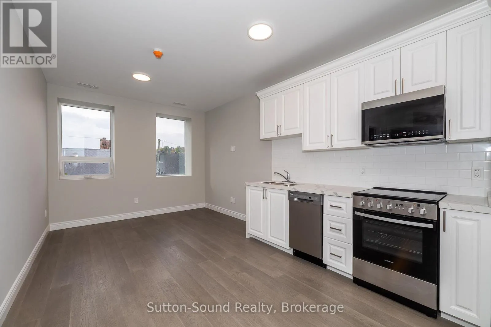 Cross Streets: 9th St. West & 1st Ave West. ** Directions: 920 1st Ave West, Owen Sound. Welcome to the Edgewater building in beautiful Owen Sound. This apartments are an all in cost for you. Included in the rent is your highspeed internet, cable, telephone, all utilities and parking. A close walk to the downtown with all the amenities any person could want. These high quality units are done with hardwood floors for easy up keep and in unit laundry. Quartz counter tops in the kitchen and 9 foot ceilings with an open concept and built in closet organizers. No wasted space in these amazing units. A common room for family gatherings and a roof top patio with out door kitchen for beautiful evenings for your enjoyment. A total of 21 units are available for lease in this building. (id:27476)