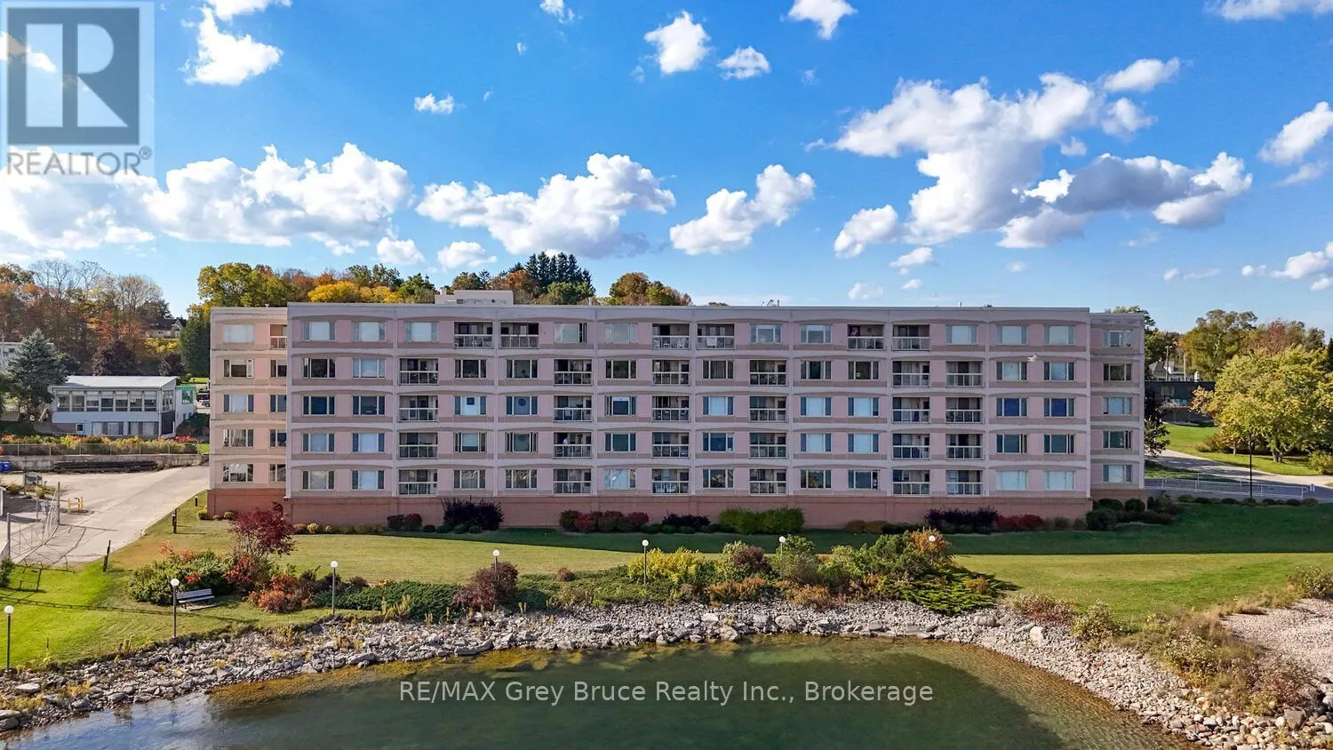 Cross Streets: GREY ROAD 1. ** Directions: HEAD NORTH ON GREY ROAD 1. 2 bedroom condo located on the Beautiful shores of Georgian Bay. This well appointed unit, has a large living room, eat in kitchen and formal dining area. With the Primary having its own ensuite. Lots of storage, with additional storage unit on the same floor. In unit laundry facilities, enclosed balcony . This westerly facing unit is priced to sell. (id:27476)
