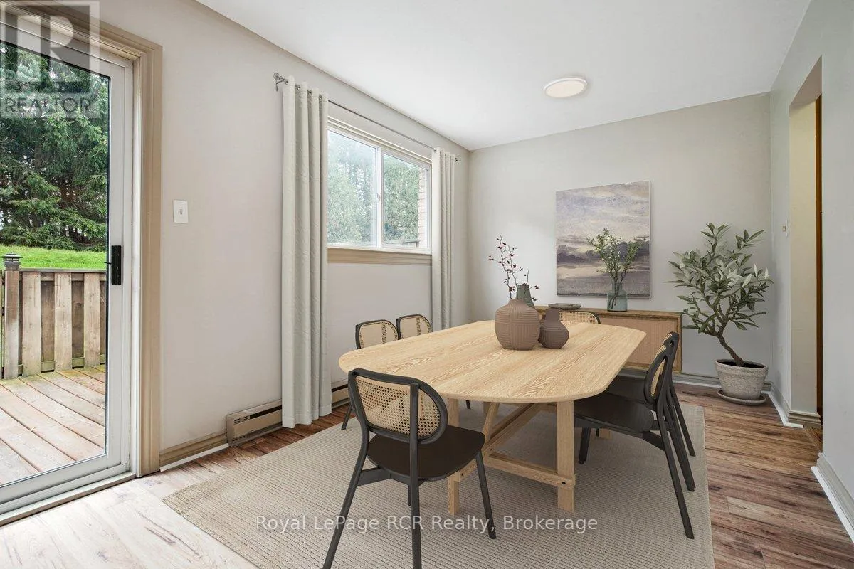 Cross Streets: Lamson Cres. & Laurie Cres. ** Directions: Head east on 10th St. E, turn south onto Lamson Cres. At end of road turn east then quick turn south onto Laurie Cres. Follow around bend and condo is on the left. Welcome to easy living on Owen Sound's east side! This 3-bedroom, 2-bathroom townhouse condo offers the perfect blend of comfort, convenience, and peace of mind. Ideally located close to Georgian College, East Ridge School, and the hospital, you'll love how effortless life feels here, whether you're a busy professional, a student, or simply looking to simplify your lifestyle. Step inside to find a welcoming layout with thoughtful updates throughout. New carpet adds comfort to the stairs and upper level, while the living room has been freshly repainted for a bright, refreshed feel. Other recent improvements include new insulation and some new drywall, adding to the home's overall comfort and efficiency. The space is warm and functional, offering plenty of room to relax, study, or spend time with family and friends. Out back, you'll discover a private deck that offers a peaceful spot to enjoy the view of the trees, and with no neighbours behind, it's your own quiet little escape. It's the perfect spot for a morning coffee, an evening unwind, or simply enjoying a little extra privacy. Low-maintenance living means more time for what matters most. Your affordable condo fees take care of the windows, doors, roof, lawn maintenance, and more, so you can enjoy homeownership without the hassle. Located just minutes from east side shopping, restaurants, and everyday essentials, this townhouse condo offers unbeatable convenience in a friendly, well-kept community. If you've been searching for a move-in ready home that combines value, comfort, and a great location, this is it! (id:27476)