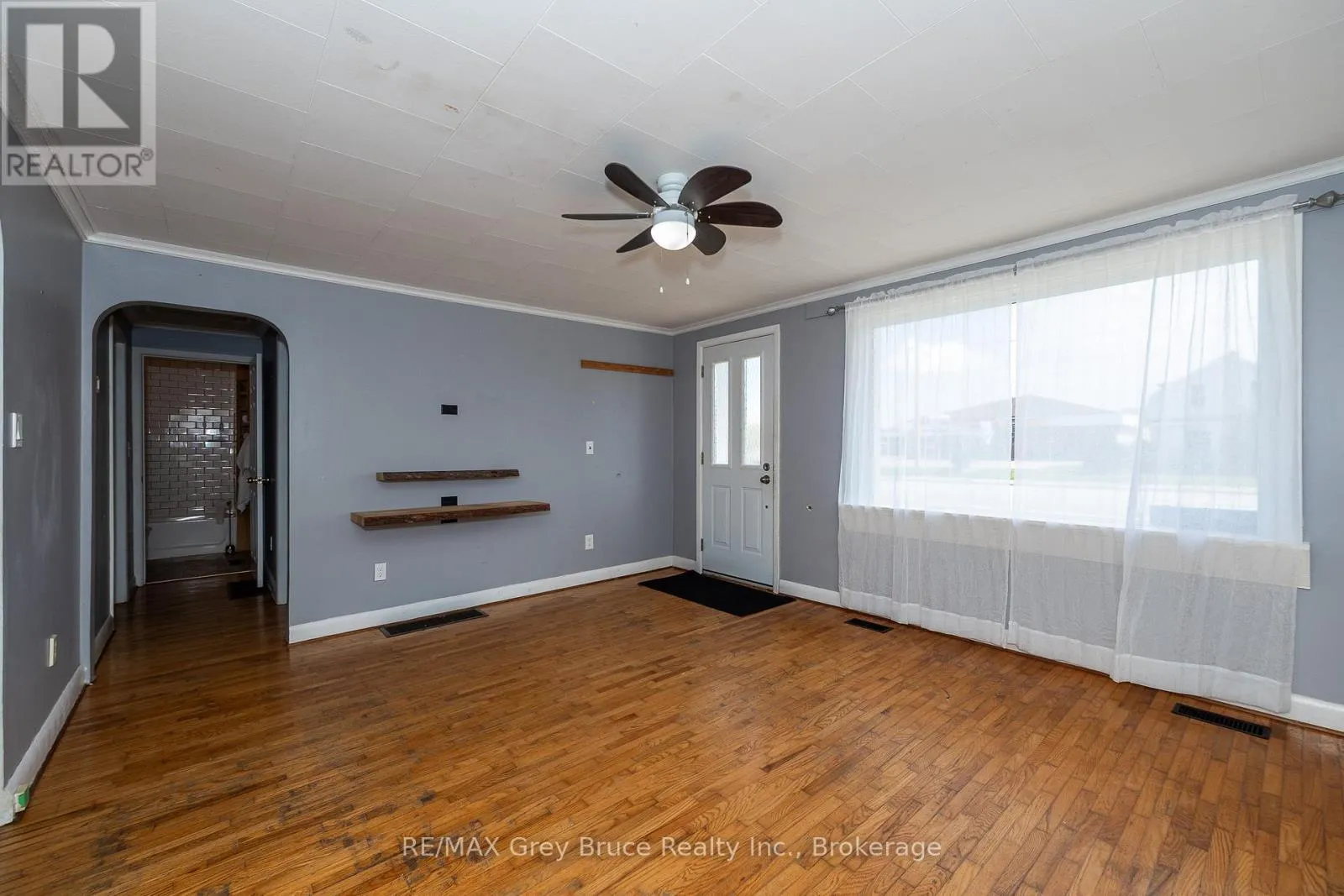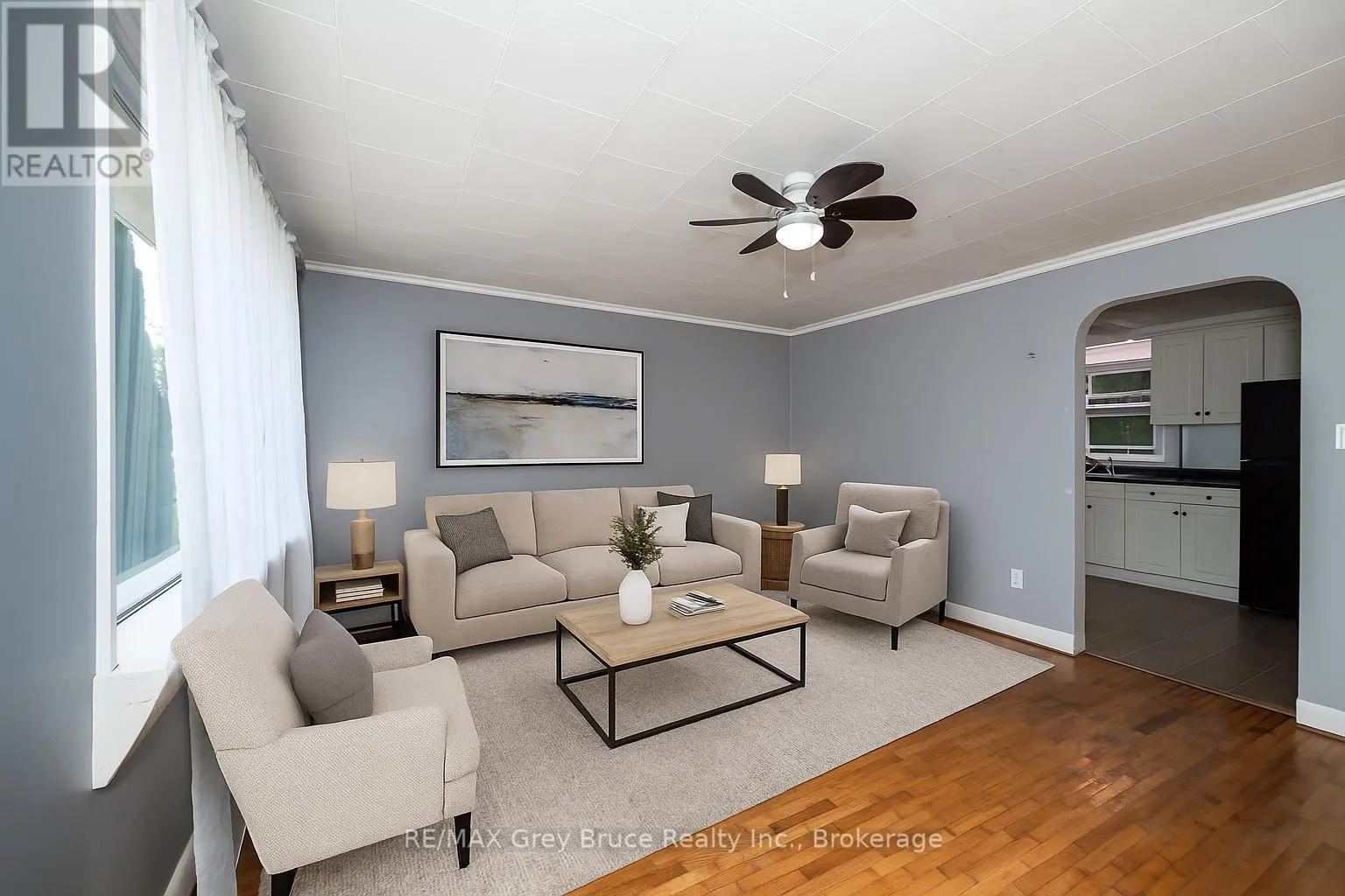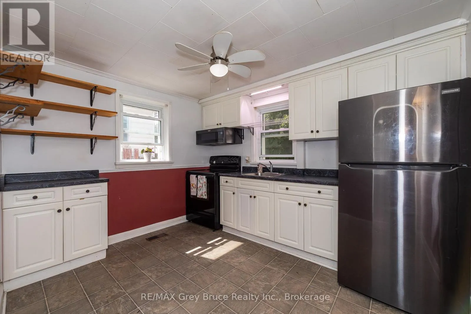 Cross Streets: 1582 9TH AVE E, OWEN SOUND. ** Directions: Go north on 9th Avenue East to #1582. Perfect for retirees, first-time buyers, or a small family, this charming east-side Owen Sound bungalow offers one-floor living with convenience and comfort. Shopping is within walking distance, and the home is on a bus route - no car, no problem! You'll also be close to restaurants, schools, the YMCA, hospital, and more. Inside, you'll find two bedrooms and one bathroom, with a bright single-level layout that makes daily living easy. A standout feature is the detached 20' x 24' insulated garage/shop with hydro & metal roof (2024), perfect for workshop, hobbies, storage, art studio, yoga - or 'getaway' place. With the ceiling over 10' high, and 9' x 8' bay door, and back lane access, it is ideal for your vehicle, atv - all your outdoor toys! The spacious backyard, shaded by mature trees, includes a shed (new roof 2025), a chicken coop, firepit and garden space, providing plenty of room to relax, entertain, or play. Insulated crawl space, central air, new eavestroughs (2025) and both front and rear decks round out this property package. With an INTERLOCK metal roof for long-lasting durability, this home represents a rare opportunity at this price point. With a few cosmetic updates, it could truly shine. (id:27476)