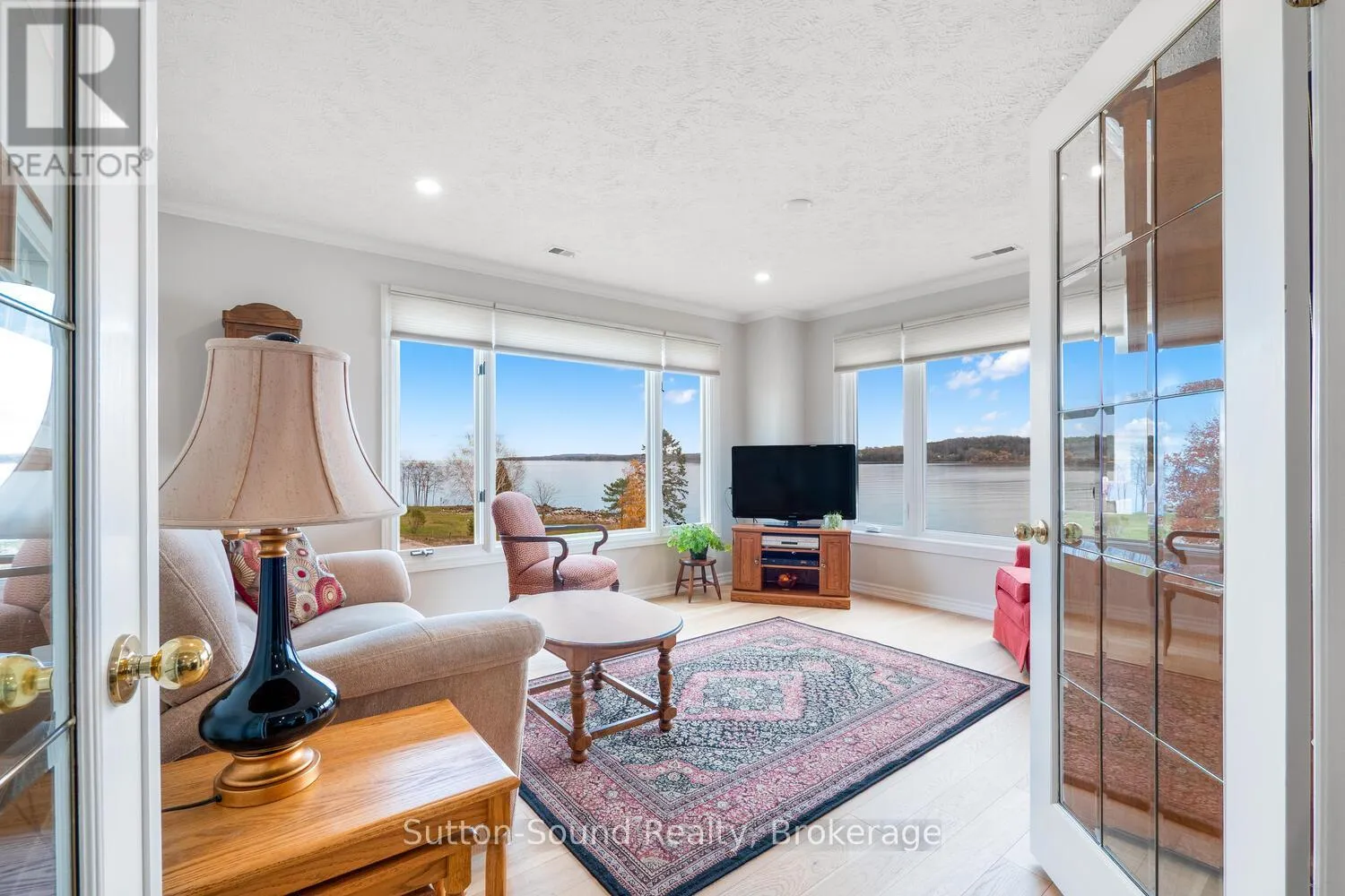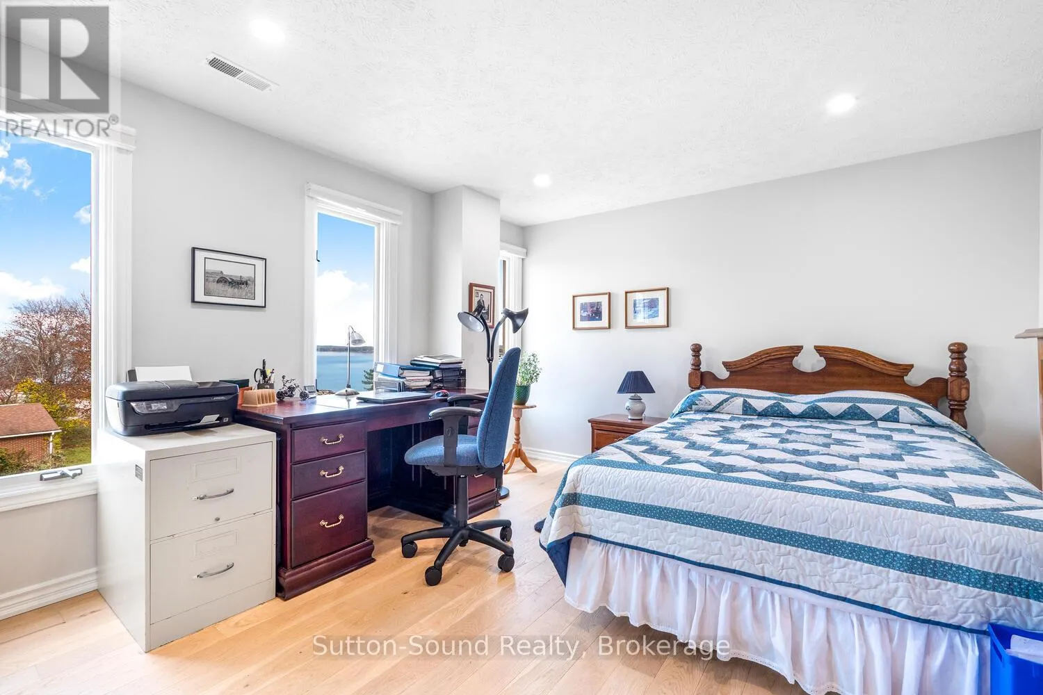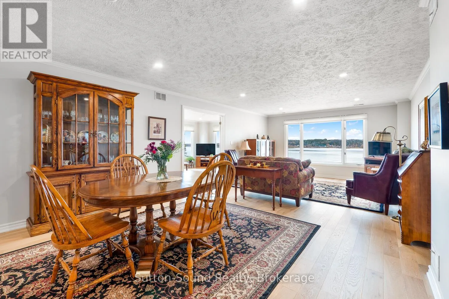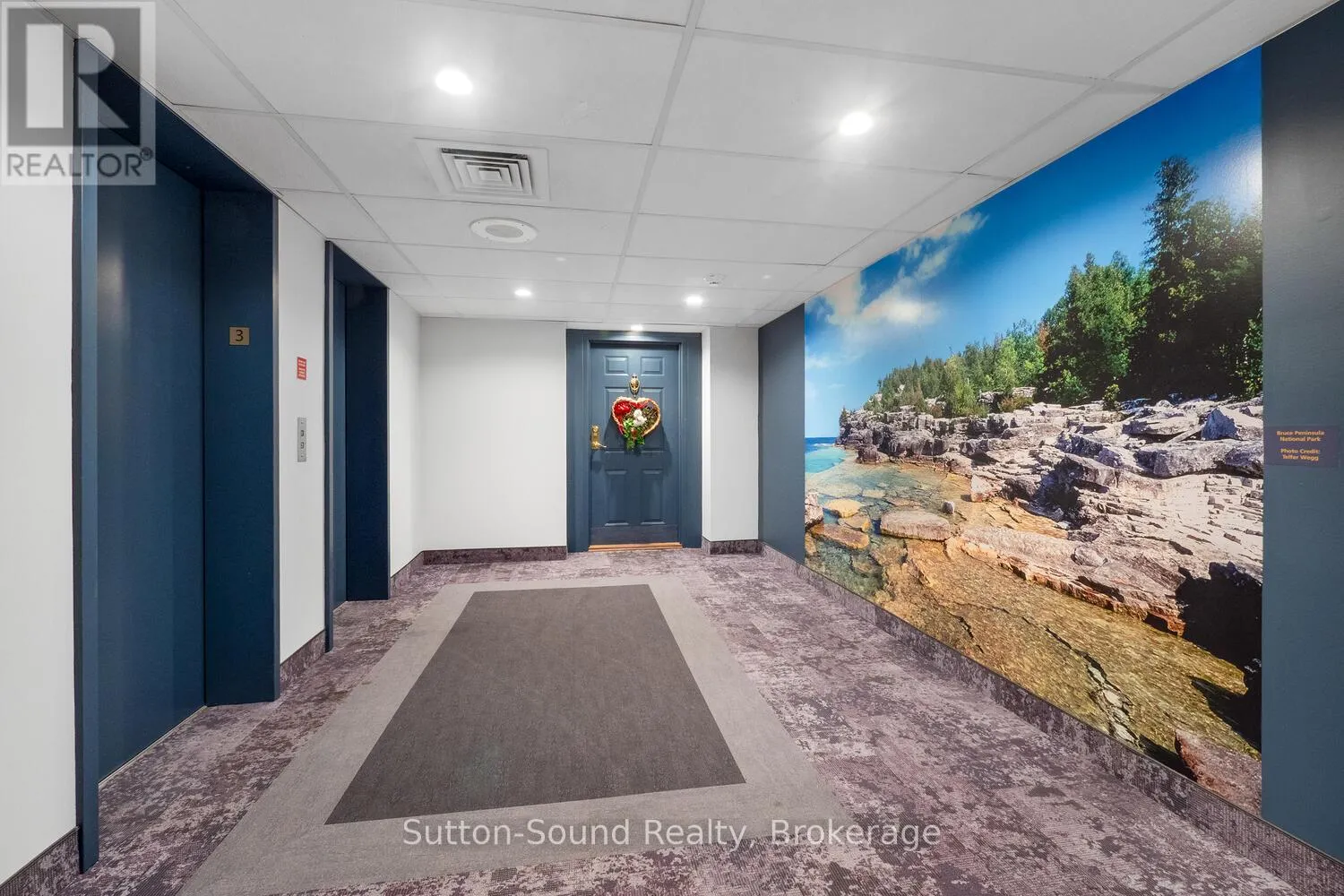 Cross Streets: 26th St W. ** Directions: 3rd AVE W right after 24th St W. RETIRE IN STYLE WITH BREATHTAKING WATER VIEWS! This 1800 sq ft corner condo unit showcases an abundance of windows highlighting Georgian Bay. With elegance and detailed finishes, this home offers 2 bedrooms, 2 baths a spacious open concept dining/living room and separate sunroom. The large primary bedroom boasts a balcony for morning coffees, a walk-in closet with custom shelving and a 3 pc ensuite. The kitchen features new countertops, newly resurfaced slow close cabinets and a custom built office center. The beautiful new engineered hardwood floors throughout are truly exquisite! Bonus features for this condo unit include 2 parking spaces in an underground parking garage and a storage locker conveniently located across the hallway. Building offers a large gathering room, a library with a pool table and kitchen facilities, Sauna, washrooms, a card room on the fifth floor, excercise room and roof top terrace. A condo with these views and finishings rarely come on the market. Here is your "window'"of opportunity!! (id:27476)