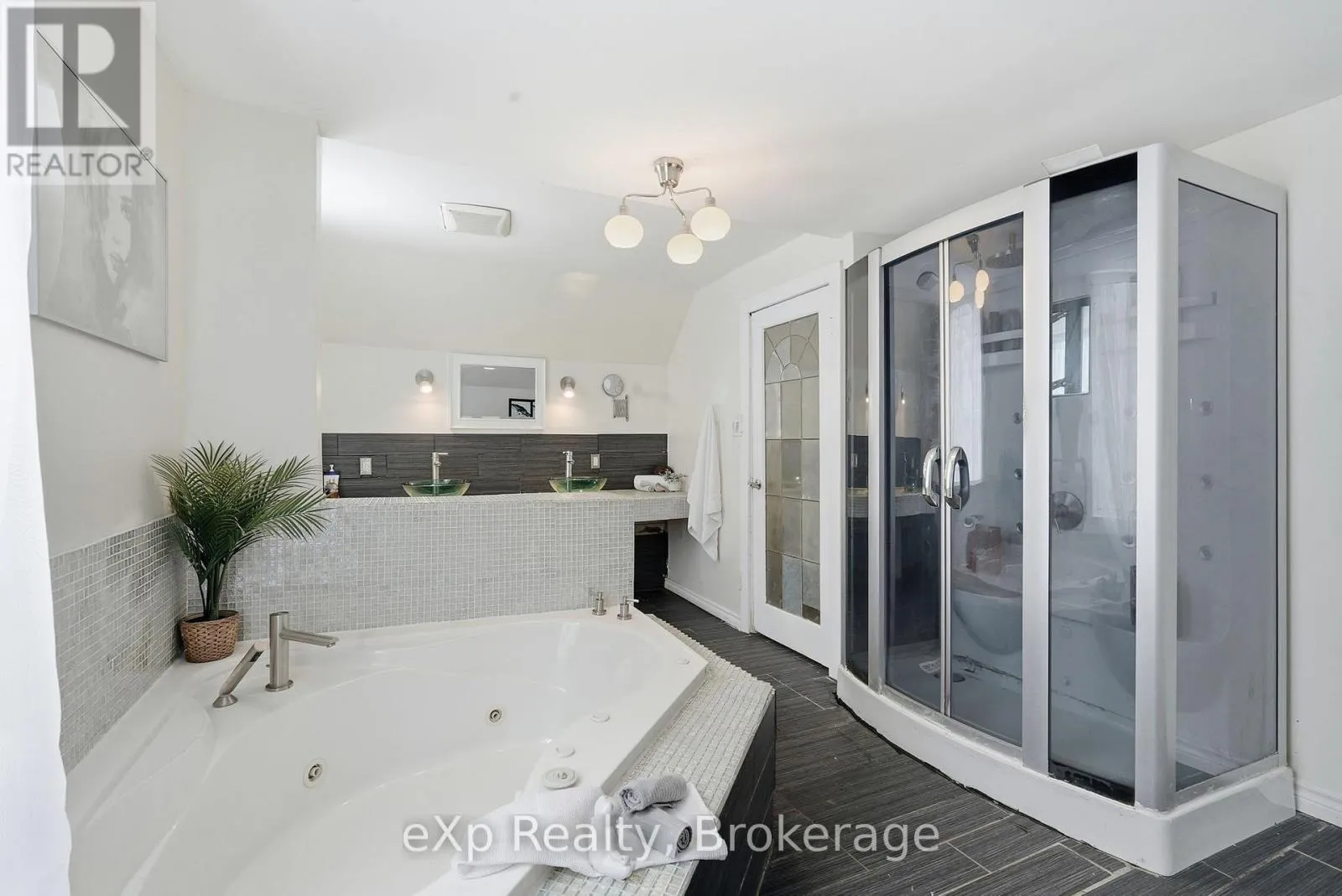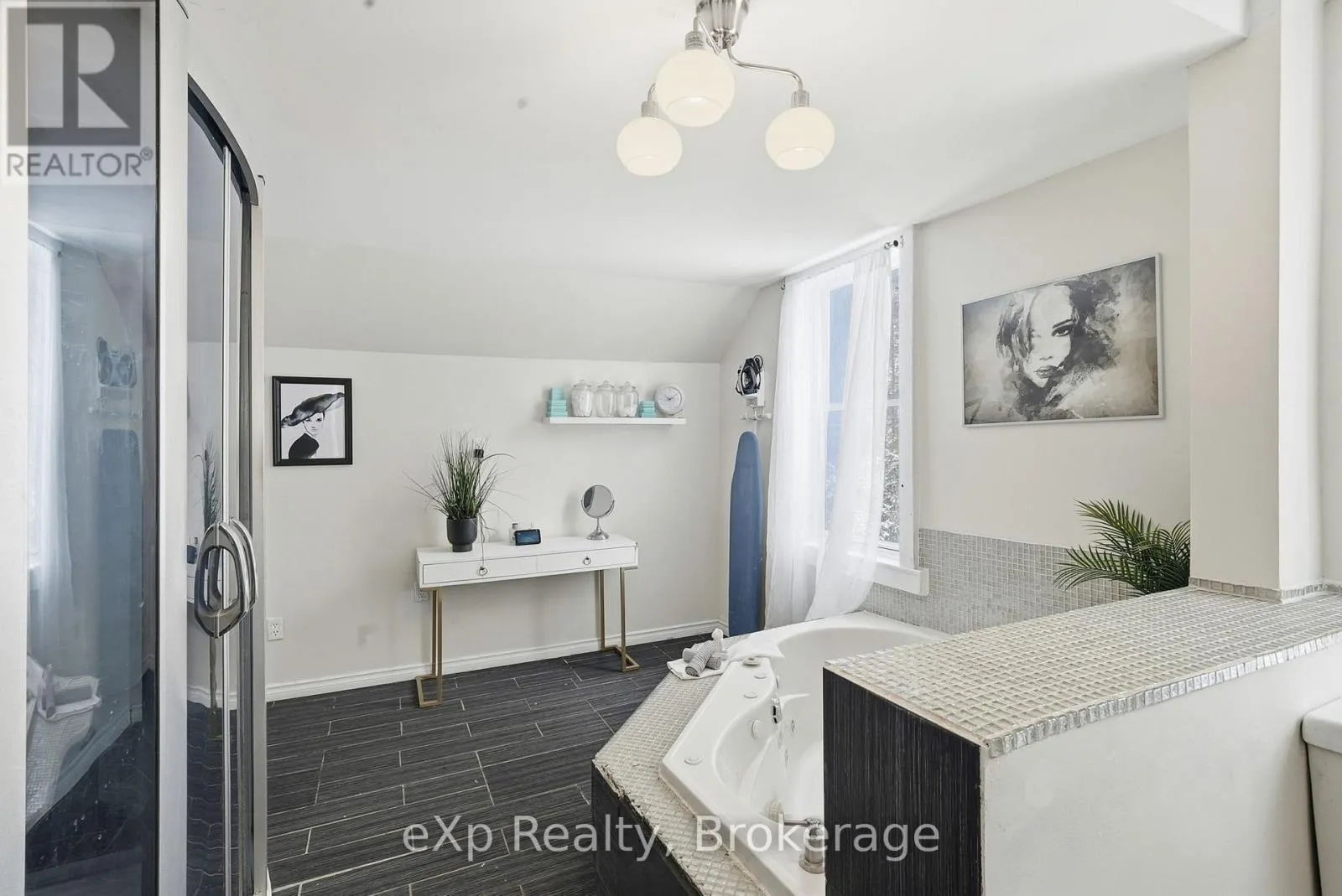 Cross Streets: 11th St W and Alpha St. ** Directions: From 10th St West go north on 7th Ave West, then East on 11th Ave West. House is on the left. Beautifully updated home with secondary suite nestled on a quiet residential street on Owen Sound's desirable west side, this beautifully updated storey & a half home offers the perfect blend of city convenience & peaceful nature-infused living. Just a short walk to shopping, & west-side amenities, the property features a spacious two-bedroom primary home plus a large secondary suite-ideal for families, multigenerational living, or offsetting housing costs with reliable rental income. Stepping outside, you'll fall in love with the extra-deep ravine lot, lined with mature trees for exceptional privacy. The backyard feels like a country retreat, complete with established gardens, a tranquil pond, & a covered back deck perfect for year-round enjoyment. Inside the primary living space, the modern, fully updated kitchen shines with new countertops, tiled backsplash, & added counter space, with stylish finishes (2024/25). The bright living room, spacious dining room with walkout to the deck, and secondary bedroom have all been freshly painted and thoughtfully refreshed. A handy main-floor powder room adds convenience. Upstairs, the luxurious 5-piece bathroom offers double sinks, a stand-alone shower, and a jetted corner tub. The primary bedroom is bright and generous, featuring a walk-in closet. The basement includes a fully insulated bonus room, with additional insulation throughout (2023) enhancing energy efficiency.The secondary suite provides exceptional flexibility, featuring a large kitchen, spacious bedroom, four-piece bathroom, and cozy den-perfect for tenants, in-laws, or extended family. Significant updates include a new roof (2017), new furnace (2023), new hot water heater (2018), and energy-efficient appliances, offering comfort and peace of mind.This welcoming, move-in-ready home combines modern upgrades with the charm of a private, nature-rich property-an exceptional find on Owen Sound's west side. (id:27476)