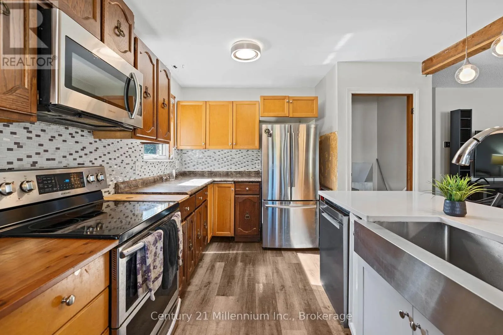 Cross Streets: 20th Street, 6th Ave East. ** Directions: From 16th St E, turn south onto 6th Ave E, house is on the left. This 4-bedroom, 2-bath backsplit offers incredible value on Owen Sounds sought-after East Side. If you've been looking for a property that's priced right, and that will allow you to do some renovations on that will improve your value, this one is it. Set on a large lot with a detached garage (with hydro), a 150 deep backyard, and a spacious laneway with plenty of parking, this home checks all the boxes for space and location. Step out to your private patio area with a covered pergola and hot tub perfect for relaxing or entertaining on summer evenings. The property features a great layout and solid fundamentals, ready for you to add your own finishing touches and make it truly your own. Recent mechanical updates include a newer furnace and central air system, giving you a strong foundation to build from. Located in a desirable East Side neighbourhood close to Timber McArthur Park, Saint Mary's, schools, the YMCA, transit, and all major amenities this is a complete package of space, value, andopportunity that's hard to beat. (id:27476)