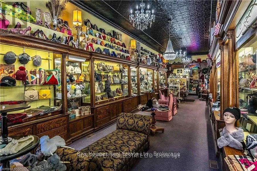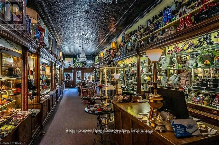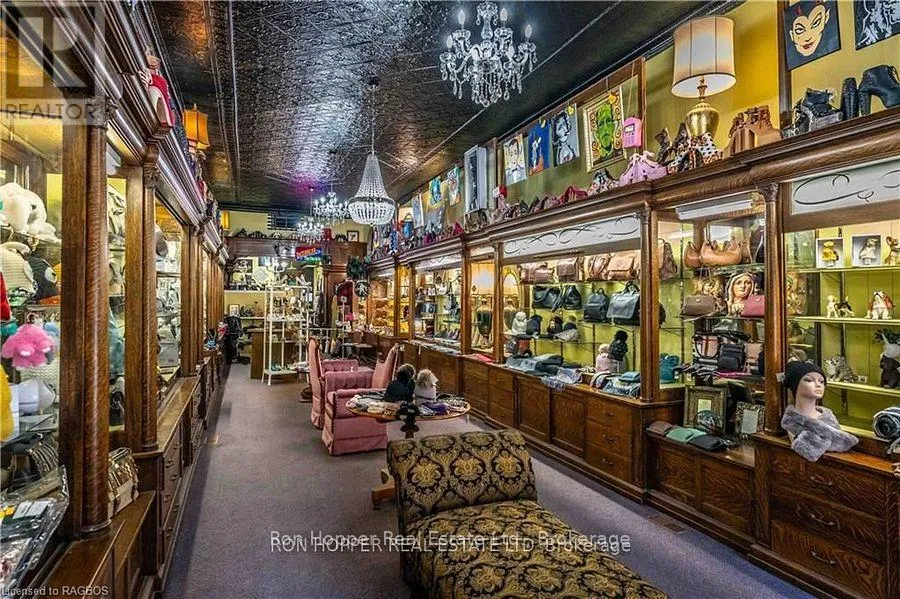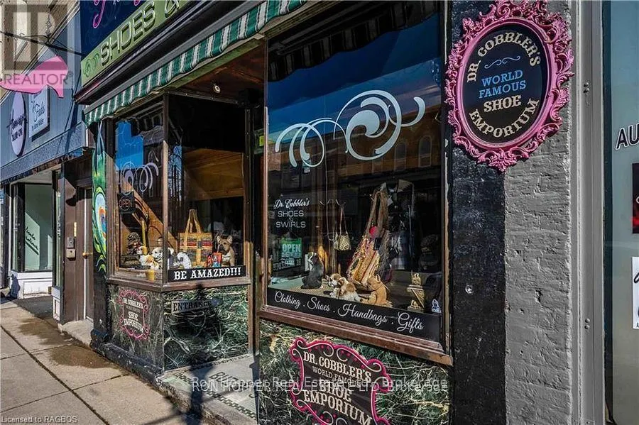 Cross Streets: Located on the main street of Owen Sound, 921 2nd Avenue East. ** Directions: On 2nd Ave East, between 9th street and 8th street. Building for sale. Notable commercial store front located in the heart of downtown Owen Sound. The quarter cut oak built-in cabinetry, tin ceilings, built-in safe and the hardwood floors exude elegance and are the perfect back drop to any retail store. There is private storage space at the rear with a secured entrance from the four private parking spaces. The full dry basement has a two piece bath and plenty of dry storage space with built-in shelving. Parking at the rear allows easy access to your storefront. The second level has potential for two residential units, just needing some tlc to add some extra income. Front Roof 2004. Rear Roof 2014, Gas Furnace & Central Air 2023. (id:27476)