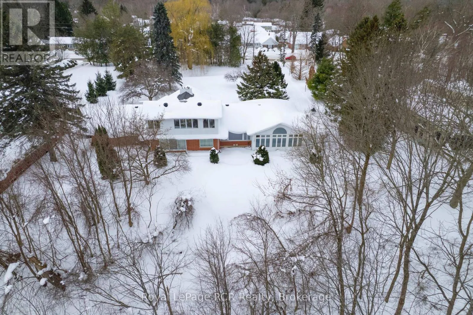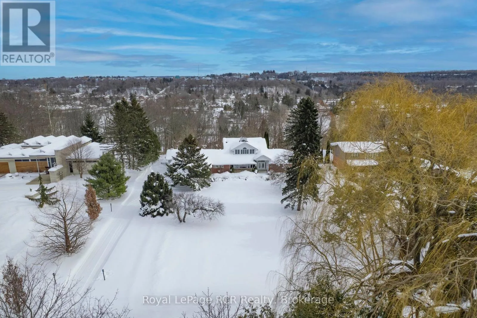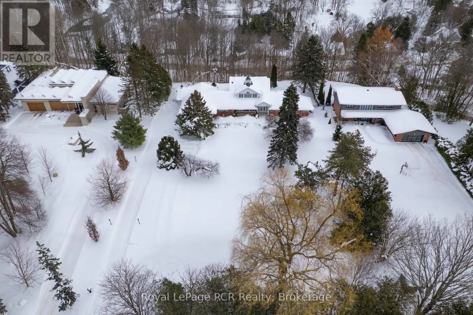Cross Streets: Moores Hill. ** Directions: From top of Moores Hill head North 3rd laneway on the right 525 4th Ave West. Rarely does a property offer this much space, privacy, and natural beauty within city limits. Situated on approximately 1.75 acres along Owen Sound's Westhill escarpment, this expansive bungalow is set on a 150 foot wide lot surrounded by mature trees, sweeping lawns, and a peaceful ravine backdrop. The setting offers a sense of retreat while remaining close to all amenities. Inside, no expense was spared in the building and updates over the years. The home blends timeless character with a one of a kind functional layout. The oak kitchen and dedicated office space provide warmth and functionality, while the impressive beamed great room addition creates a striking focal point. Featuring a stone fireplace, soaring ceilings, and heated floors, this space was designed for comfort and gathering. The upper-level primary suite offers flexibility as a private retreat, with large windows that capture seasonal views toward the Sydenham River and the city below. Its layout presents potential for multi-generational living or guest accommodation. Beneath the winter snow lies beautifully maintained, meticulously cared for grounds that have been thoughtfully landscaped over the years. Expansive concrete patios create inviting outdoor spaces, ideal for entertaining and enjoying the privacy of the setting. This is a property for buyers who value space, privacy, and a distinctive setting in one of Owen Sound's most established neighbourhoods. Immediate possession available. Additional features include natural gas radiant baseboard heating, two natural gas fireplaces, and two ductless split units for efficient cooling. Explore the full listing details and video tour to appreciate everything this exceptional property has to offer. (id:27476)
