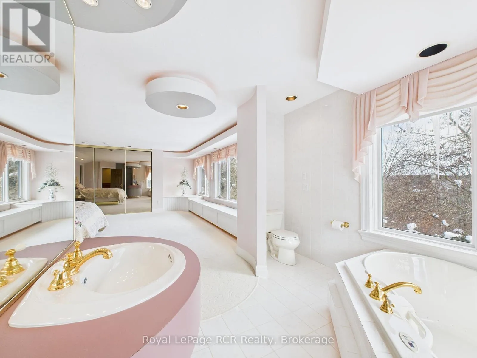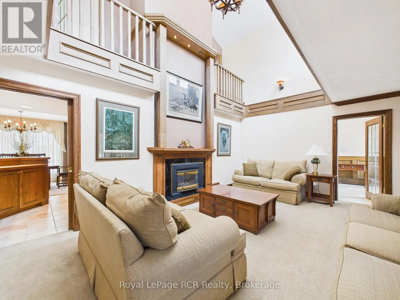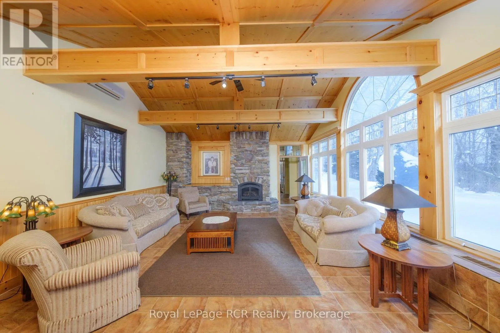 Cross Streets: Moores Hill. ** Directions: From top of Moores Hill head North 3rd laneway on the right 525 4th Ave West. Rarely does a property offer this much space, privacy, and natural beauty within city limits. Situated on approximately 1.75 acres along Owen Sound's Westhill escarpment, this expansive bungalow is set on a 150 foot wide lot surrounded by mature trees, sweeping lawns, and a peaceful ravine backdrop. The setting offers a sense of retreat while remaining close to all amenities. Inside, no expense was spared in the building and updates over the years. The home blends timeless character with a one of a kind functional layout. The oak kitchen and dedicated office space provide warmth and functionality, while the impressive beamed great room addition creates a striking focal point. Featuring a stone fireplace, soaring ceilings, and heated floors, this space was designed for comfort and gathering. The upper-level primary suite offers flexibility as a private retreat, with large windows that capture seasonal views toward the Sydenham River and the city below. Its layout presents potential for multi-generational living or guest accommodation. Beneath the winter snow lies beautifully maintained, meticulously cared for grounds that have been thoughtfully landscaped over the years. Expansive concrete patios create inviting outdoor spaces, ideal for entertaining and enjoying the privacy of the setting. This is a property for buyers who value space, privacy, and a distinctive setting in one of Owen Sound's most established neighbourhoods. Immediate possession available. Additional features include natural gas radiant baseboard heating, two natural gas fireplaces, and two ductless split units for efficient cooling. Explore the full listing details and video tour to appreciate everything this exceptional property has to offer. (id:27476)