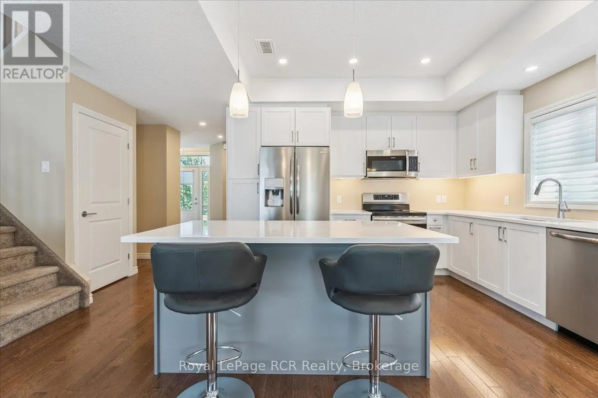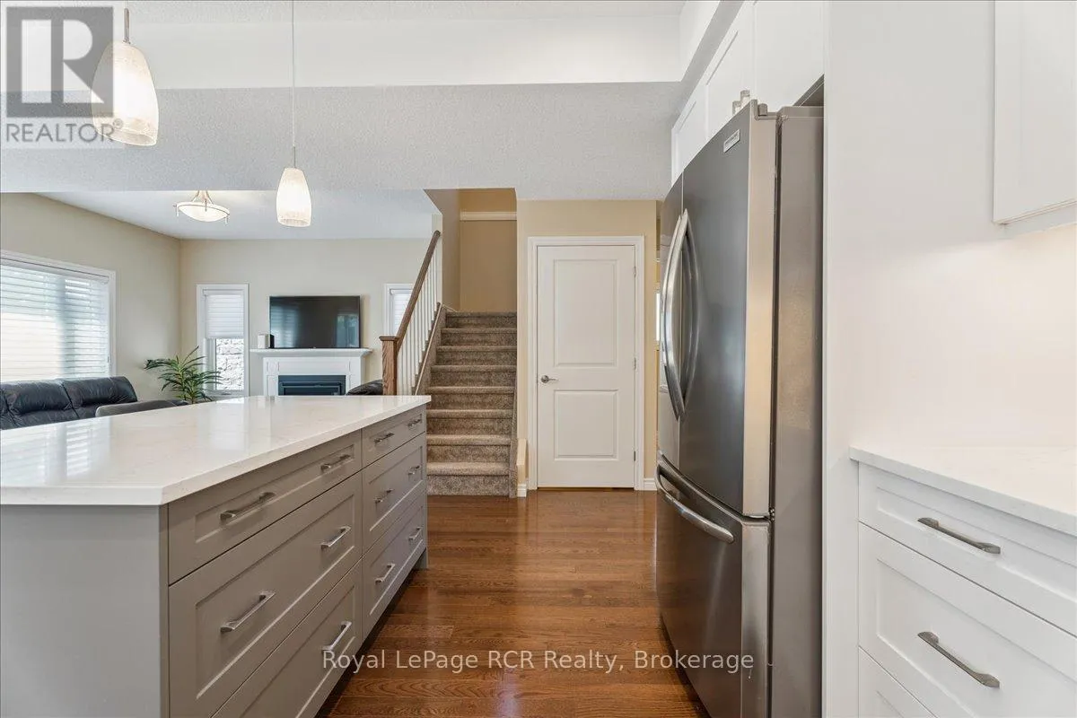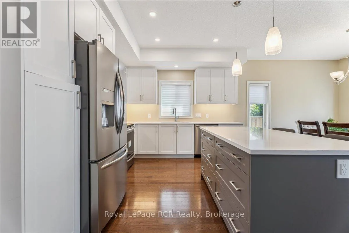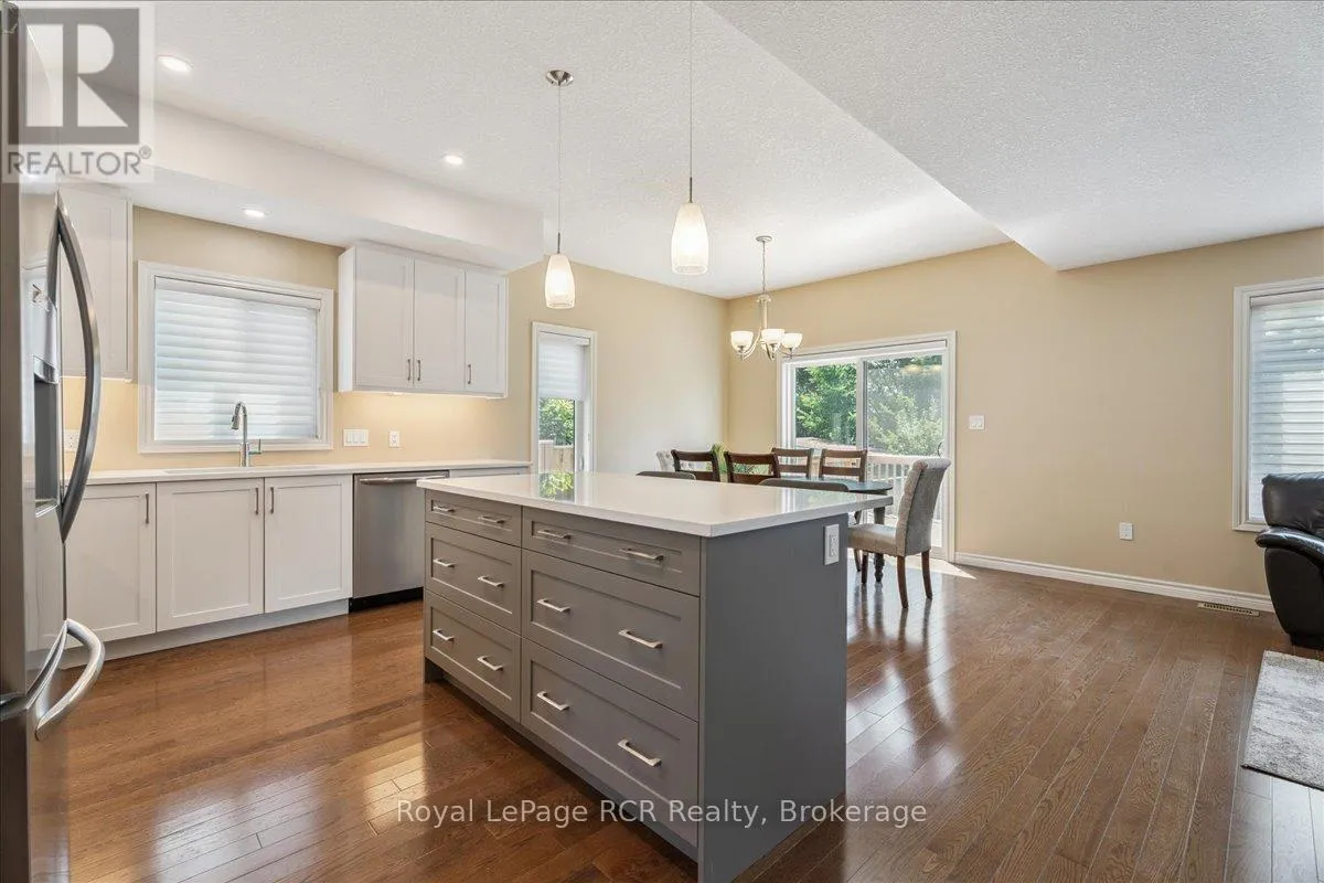 Cross Streets: 15th St. B E & 14th Ave. E. ** Directions: Head north on 9th Ave. E, turn east onto 16th St. E. At first lights (12th Ave. E.) turn south, then east onto 15th St. B. E. Follow around bend, this will be 14th Ave. E. Property will be on the right. Nestled at the end of a quiet cul-de-sac on the east side of Owen Sound, this stunning 2-storey stone home perfectly balances sophisticated style with the warmth of a true family home. From the moment you step inside, the open concept main floor reveals a layout designed for both high-energy entertaining and quiet everyday moments, further enhanced by the practical addition of a convenient main floor laundry room. At the heart of the residence sits a bright and modern kitchen, anchored by sleek quartz countertops, stainless steel appliances, and a center island that naturally becomes the hub for morning coffee and casual conversation. Rich hardwood flooring guides you through the airy dining area into a living room centered by a cozy gas fireplace, while sliding glass doors offer a seamless transition to the backyard deck for summer BBQs and outdoor relaxation. The upper level is a dedicated sanctuary, housing four generous bedrooms that ensure everyone has their own space. The primary suite serves as a private escape, complete with a walk-in closet and a spa-like five-piece ensuite. Downstairs, the finished lower level expands your living options significantly, offering a second gas fireplace in a welcoming family room along with a versatile fifth bedroom, ideal for a guest suite, a teenager's hideaway, or a quiet home office. Perfectly positioned just minutes from the hospital, shopping, and Georgian College, this home offers a rare combination of peaceful cul-de-sac living and effortless everyday convenience. (id:27476)
