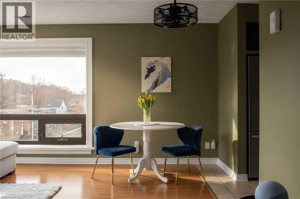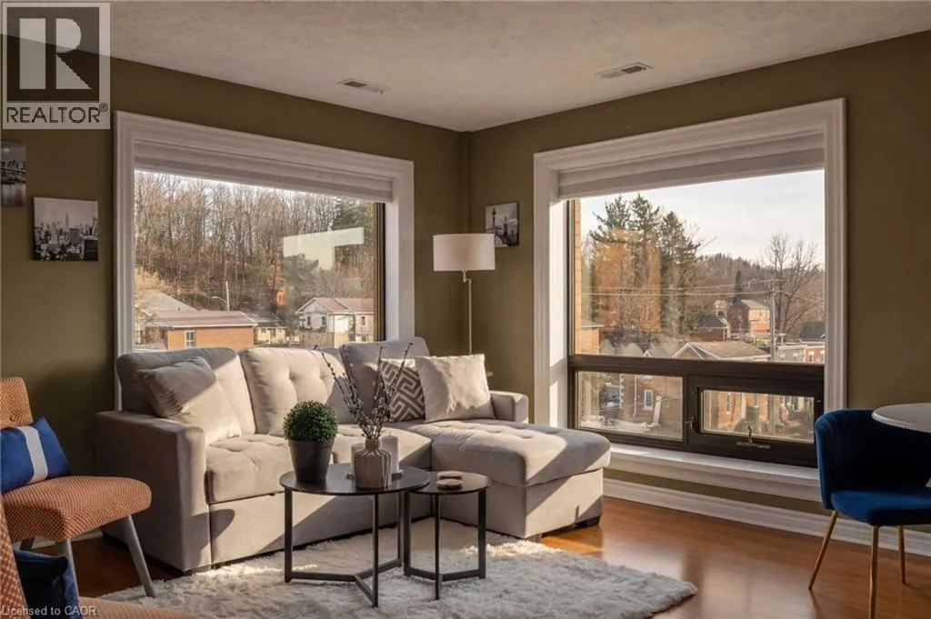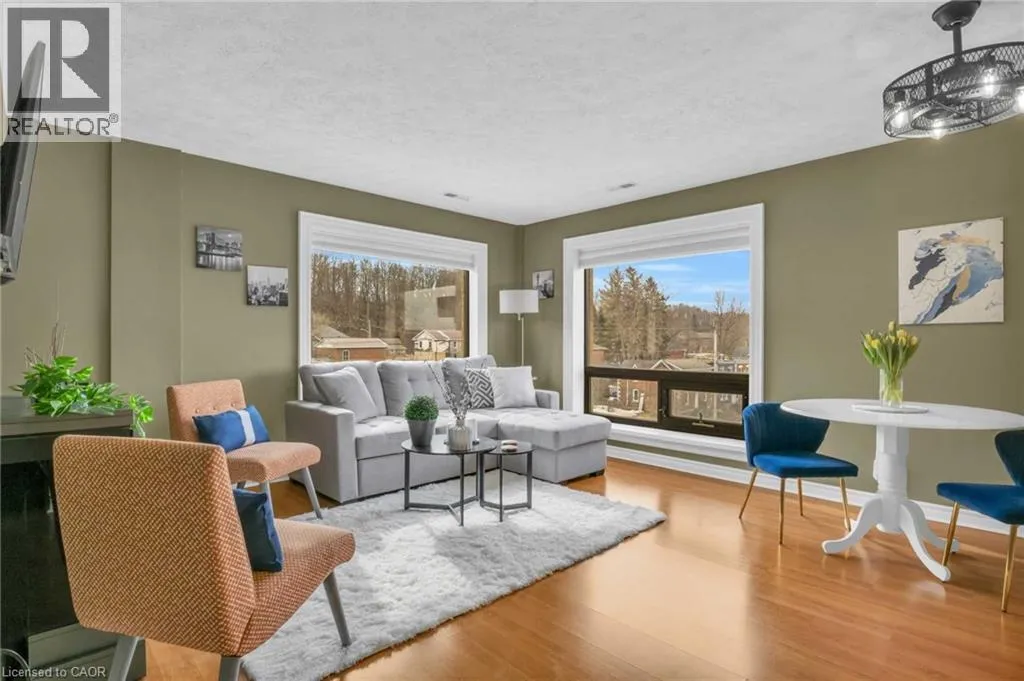 Welcome to 1717 2nd Avenue East, Unit 505 â a bright and spacious 2-bedroom plus den corner suite in one of Owen Soundâs most sought-after boutique condominium buildings. Ideally located just steps from the waterfront, scenic walking and biking trails, parks, gardens, playgrounds, Kelso Beach, and local art galleries, this home combines convenience with a vibrant lifestyle. Inside, the open-concept layout is brimming with natural light from expansive corner windows. Elegant wainscoting and low-maintenance flooring create a refined, modern feel throughout, while the kitchen offers ample cabinetry and workspace, perfect for everyday living or entertaining. The primary bedroom provides a peaceful retreat, while the second bedroom and versatile den offer flexible space for family, guests, or a home office. In-suite laundry adds practicality and ease to daily living. With only 15 residential units, this well-managed five-storey building delivers an intimate, exclusive atmosphere. Residents enjoy secure elevator access, ample parking, a large personal storage locker, and convenient garbage facilities on the same floor. A standout feature is the rooftop terrace â an inviting space to relax, entertain, and take in stunning water views and sunsets. Experience effortless, low-maintenance living in a prime location that truly has it all. (id:27476)