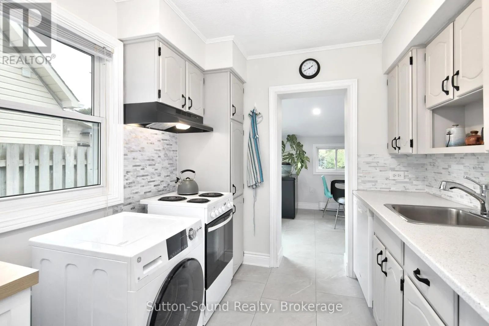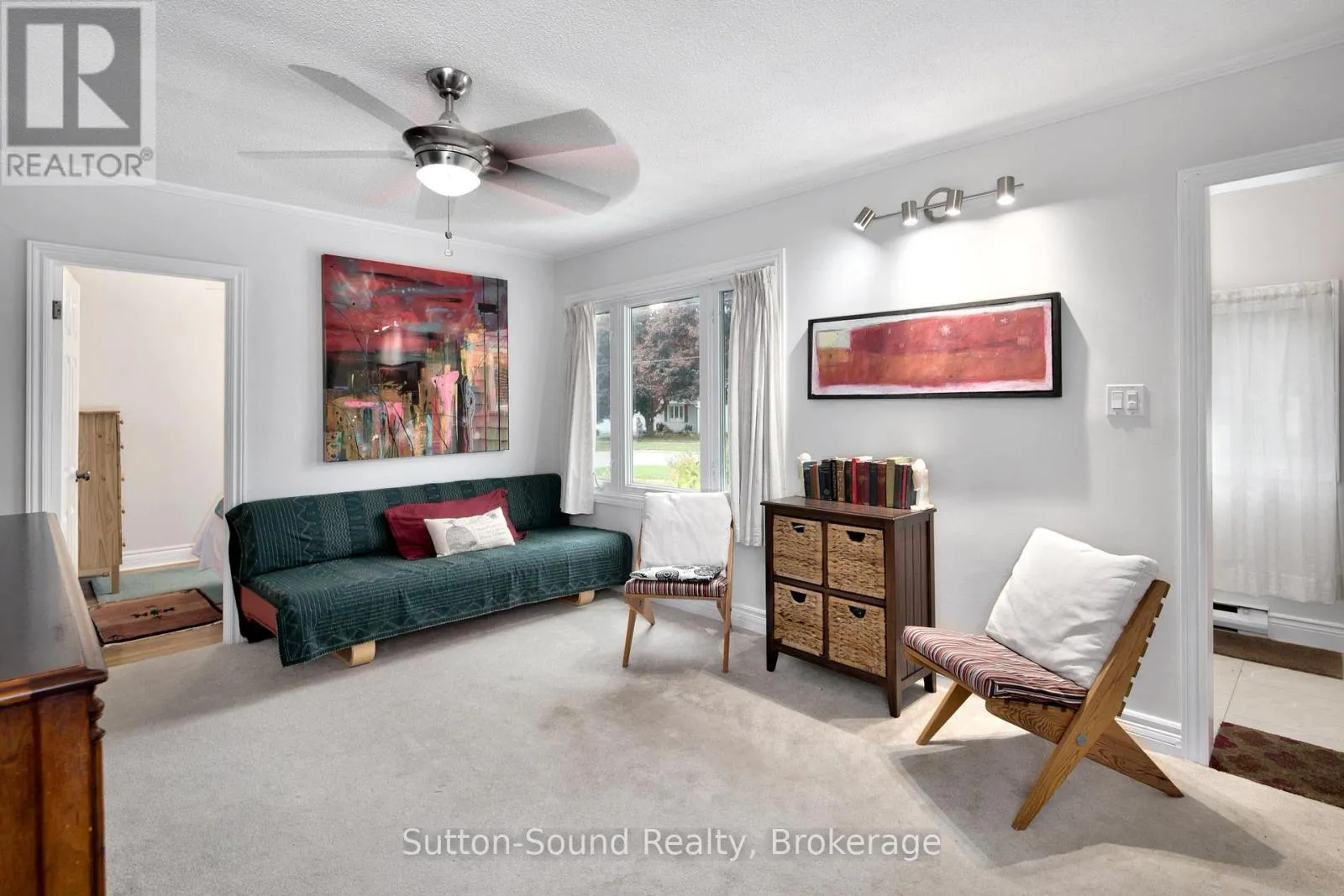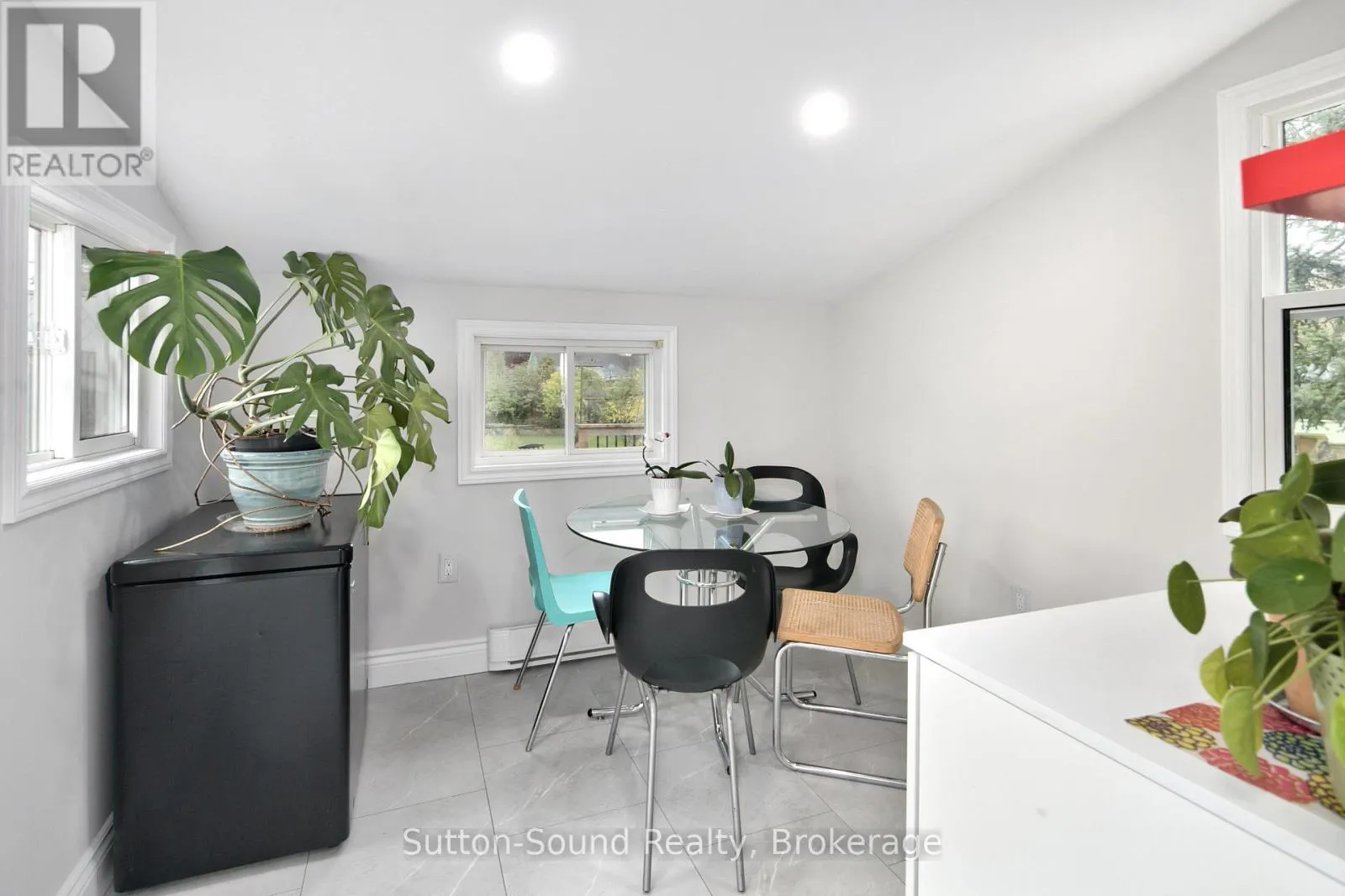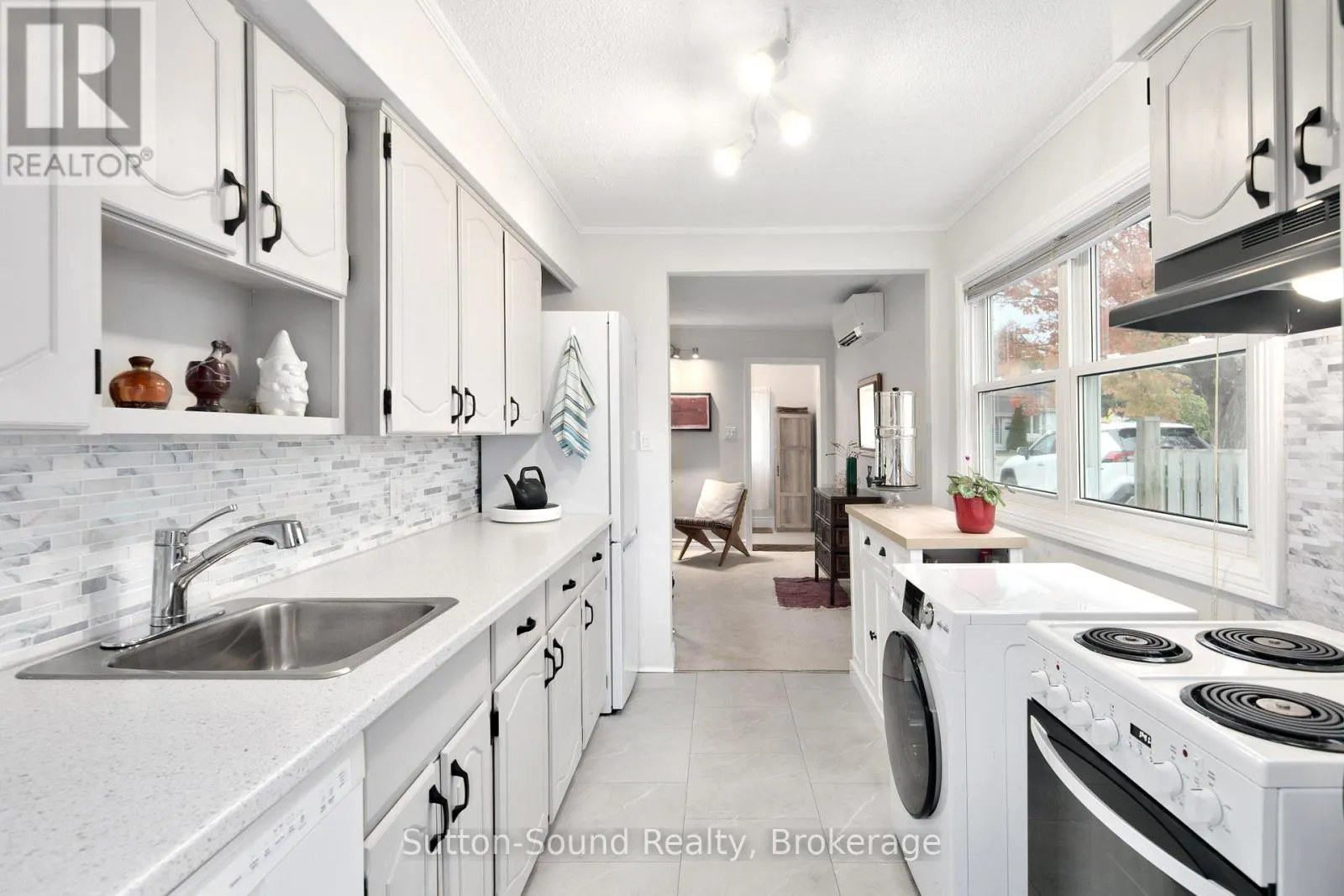 Cross Streets: 7th St E & 8th Ave E. ** Directions: Heading north on 9th Ave E, turn left (west) onto 7th St E. House is on the left hand side (south side) after 8th Ave E. Welcome to this beautifully maintained 2-bedroom bungalow tucked into a quiet east-side neighbourhood in Owen Sound-where comfort, charm, and smart updates come together seamlessly. Step inside to a bright and welcoming interior, featuring updated flooring throughout the kitchen, dining area, and mudroom. The refreshed kitchen offers a clean, modern feel with a new countertop, sink, and fridge-perfectly suited for everyday living. The home's cozy layout includes hardwood flooring in both bedrooms, with additional hardwood hidden beneath the living room carpet, along with a stylishly renovated 3-piece bathroom completed in 2018. A conveniently located laundry area adds to the home's functional, easy-living design. Enjoy year-round comfort with a recently installed heat pump and A/C unit, complemented by electric baseboards for added efficiency and backup heating. Outside, the fully fenced yard offers a private space to relax or entertain, complete with a back deck added in 2021 and a hot tub (being sold as is). Two storage sheds provide ample room for tools, equipment, or seasonal items.The exterior has been thoughtfully updated with vinyl siding, eavestroughs, soffit, and fascia, while the roof shingles were replaced in 2019-offering added peace of mind. Conveniently located close to parks, schools, shopping, the hospital, and transit, this home is an excellent opportunity for first-time buyers or those looking to downsize without compromising on comfort or location. (id:27476)