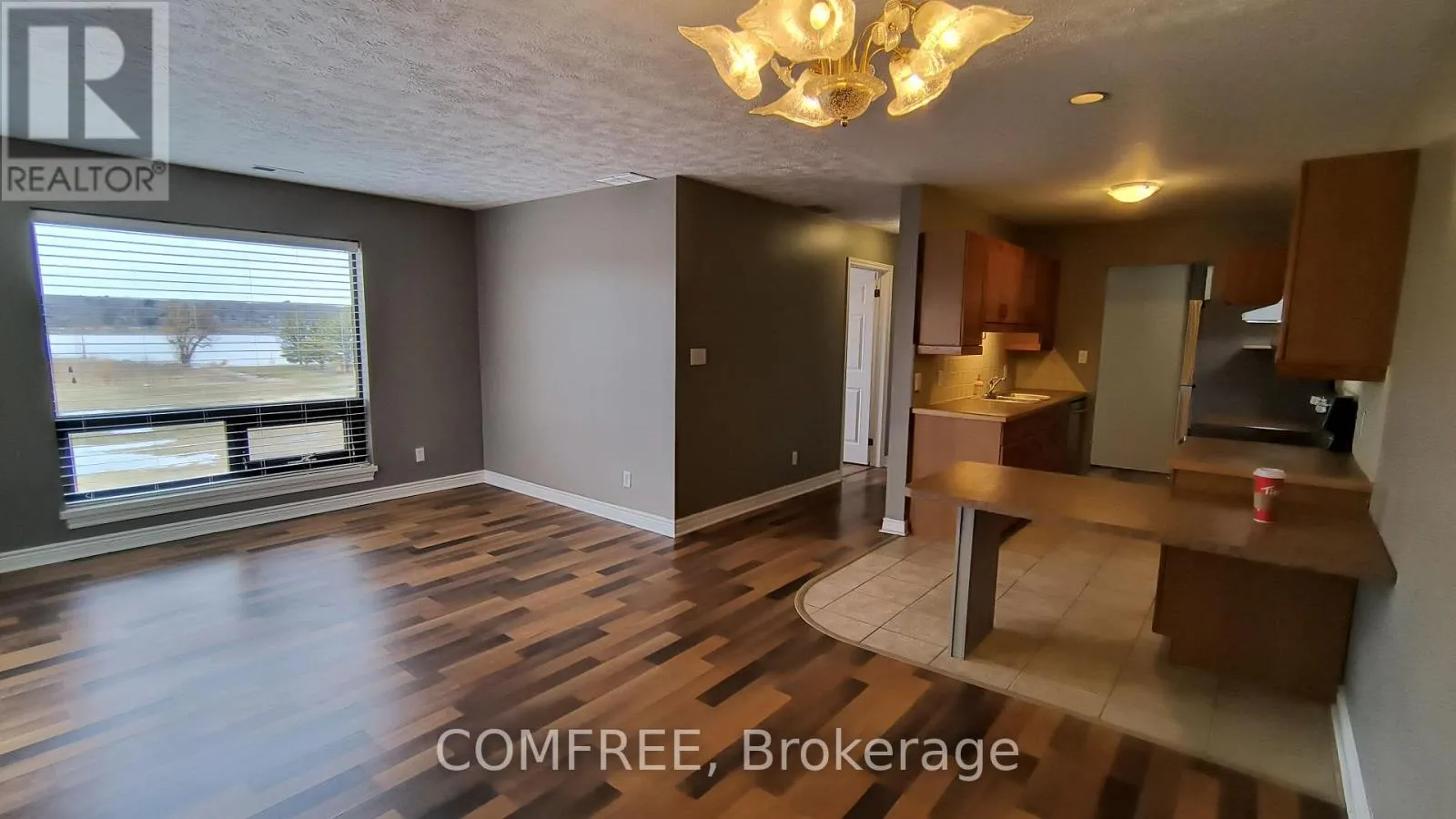 Cross Streets: 2nd Ave E at 9th St E, near 10th St E. ** Directions: From downtown Owen Sound, head east on 2nd Ave E. The property is on the left, just past 9th St E, across from Grey County Land Registry Office. Waterfront 2-Bedroom Condo in the BDO Building, Owen SoundLocated in the desirable BDO Building, this bright 2-bedroom, 1-bathroom condo offerspanoramic views of Georgian Bay. The open-concept layout features a spacious living and diningarea filled with natural light and beautiful water views.The primary bedroom includes a walk-in closet with convenient ensuite access to a modern 4-piece bathroom. The kitchen is equipped with maple cabinetry and ample storage.Additional highlights include carpet-free flooring, in-suite laundry, newer appliances, central airconditioning, an electric furnace, and an owned newer hot water heater.The building features a secure keyed elevator, as well as a separate furnace room and privatestorage room conveniently located on the same level. Residents also enjoy access to a rooftoppatio with BBQ area. Ample parking is available for both residents and visitors.Monthly maintenance fee of $332.98 includes water. (id:27476)