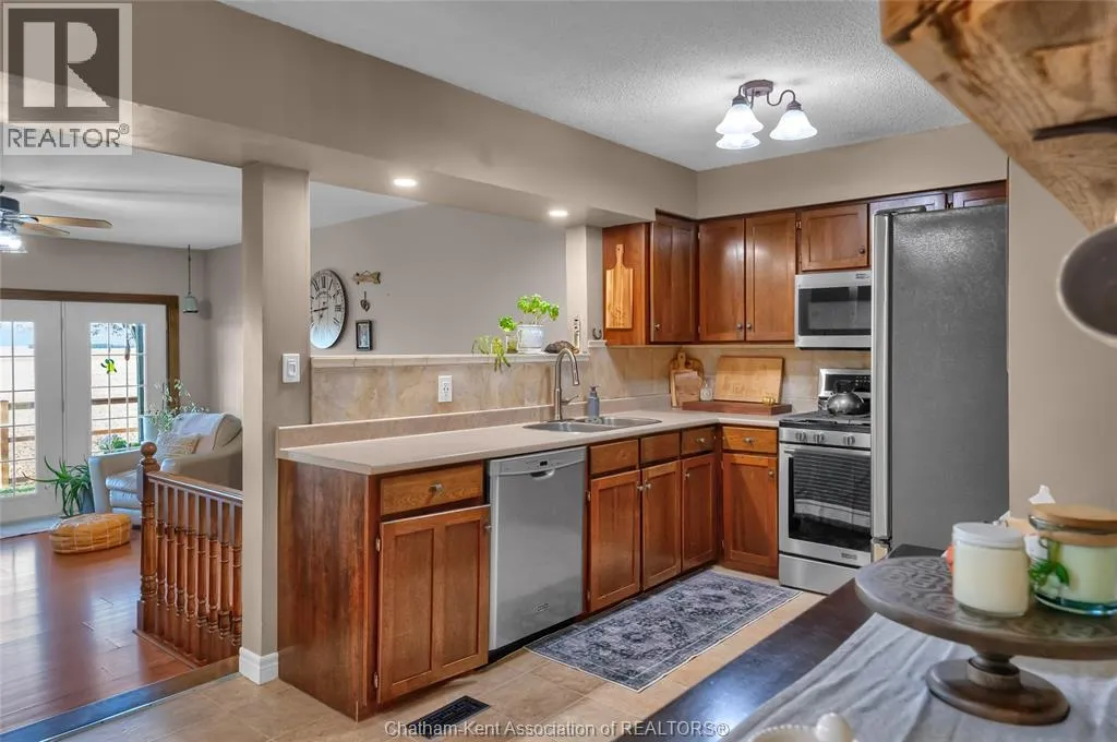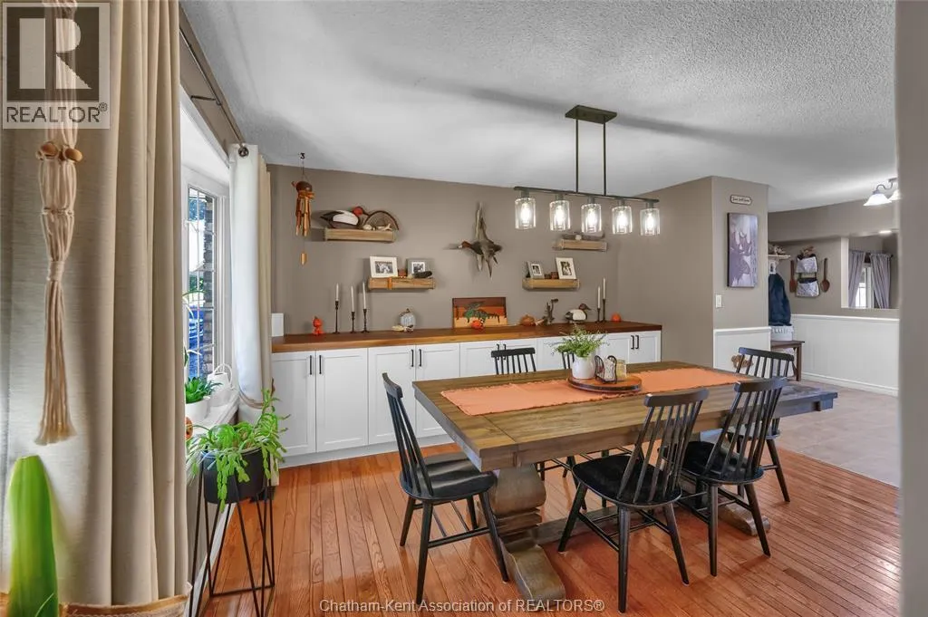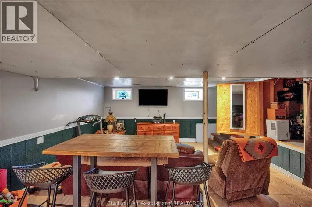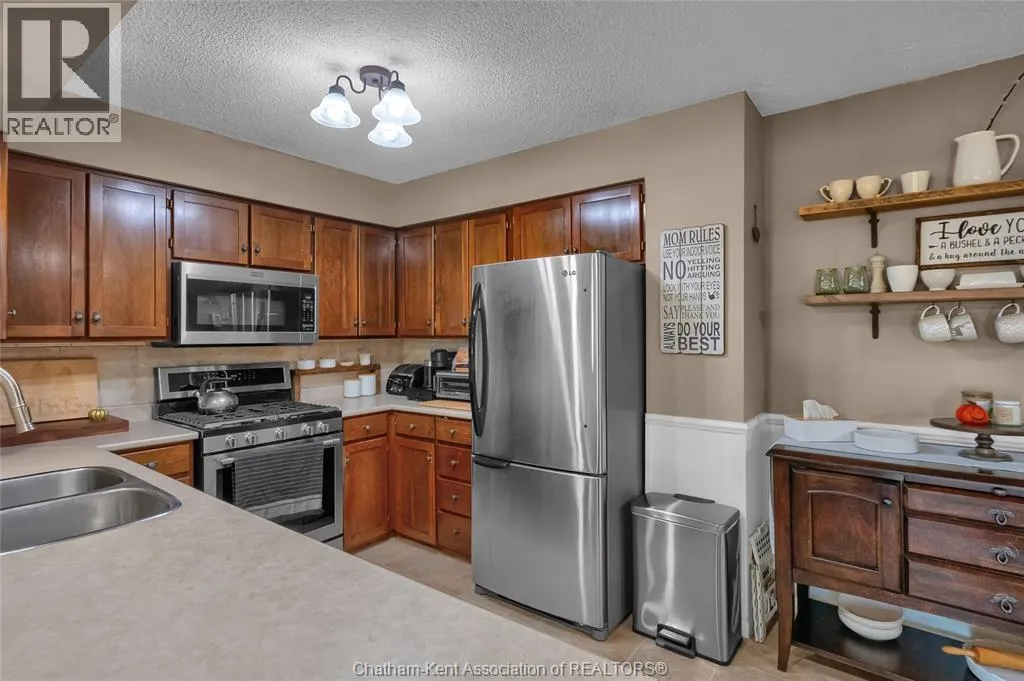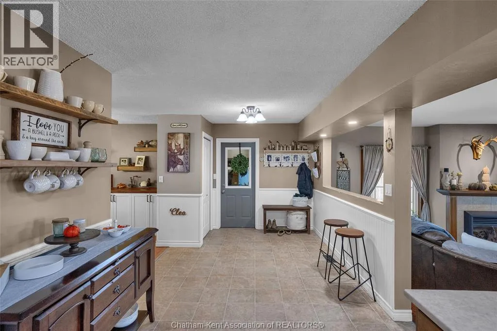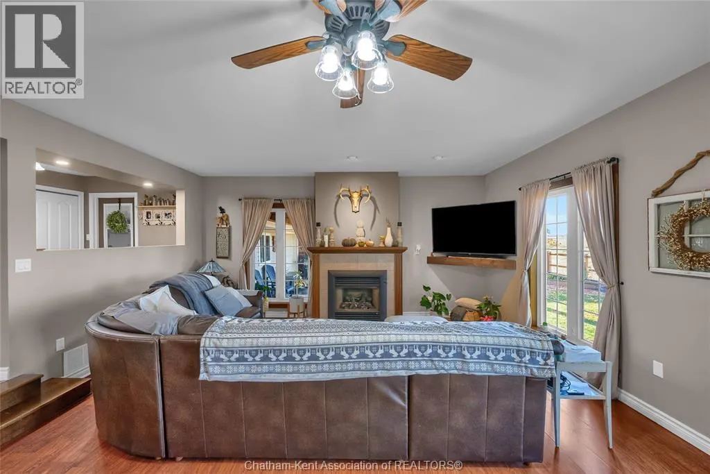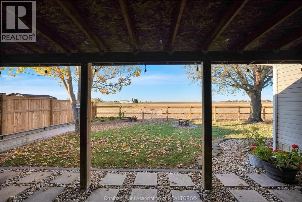 Welcome Home to Country ComfortâJust Minutes from Chatham! Discover this beautifully maintained ranch-style home nestled in a small, quiet community only minutes from the city. Featuring 3 bedrooms and 2 bathrooms, including a spacious primary bedroom with its own ensuite bathroom, this home offers the perfect blend of comfort and convenience. Enjoy the warmth of the gas fireplace in the cozy living room, or step through the patio doors onto the covered outdoor deckâan ideal spot to unwind and take in the peaceful views of open fields and breathtaking sunsets, with no rear neighbour's in sight. A large, separate dining room offers plenty of space for family dinners and entertaining guests. The bright kitchen flows nicely through the main living areas, while the finished basement adds an additional family room and generous storage space. Located near walking paths and schools, this charming property offers a relaxing rural setting with easy access to all the amenities. A perfect place to call homeâpeaceful, practical, and full of charm. Book a showing today! (id:27476)