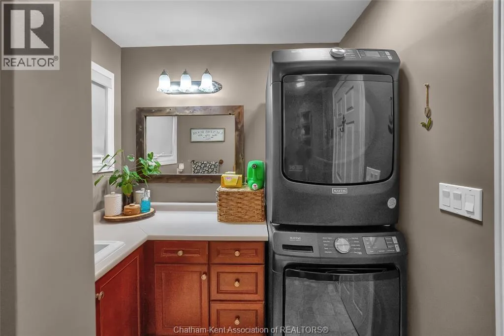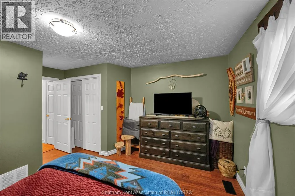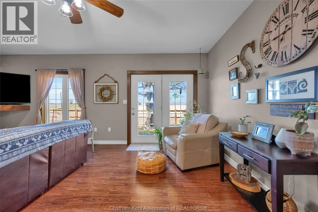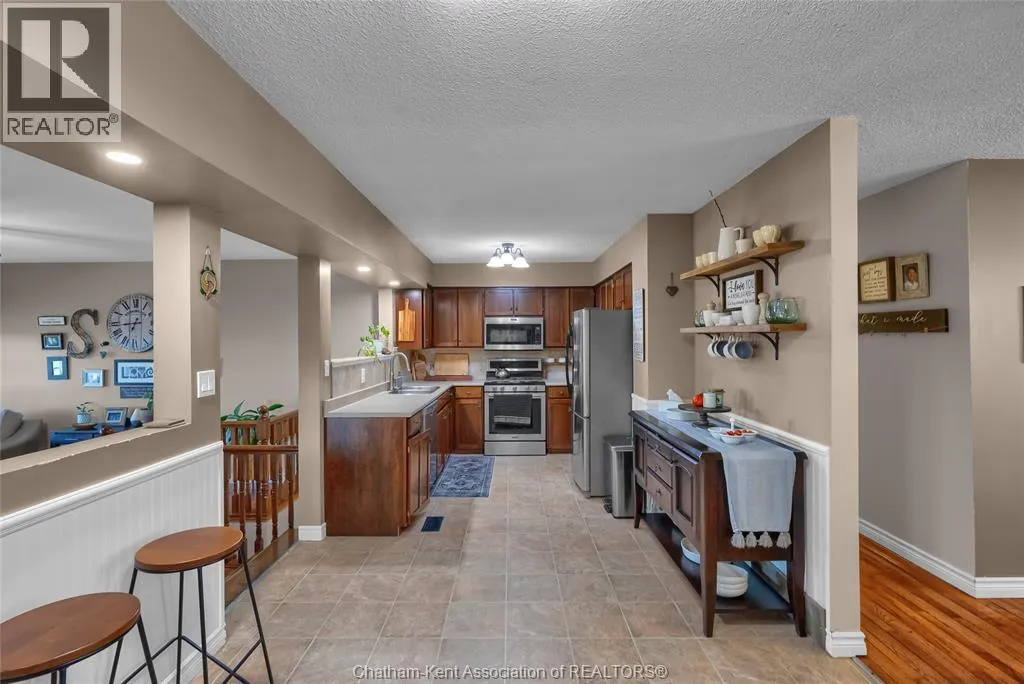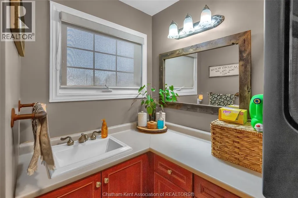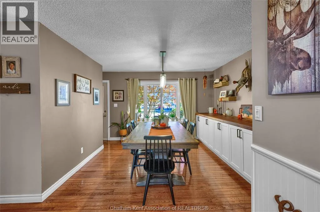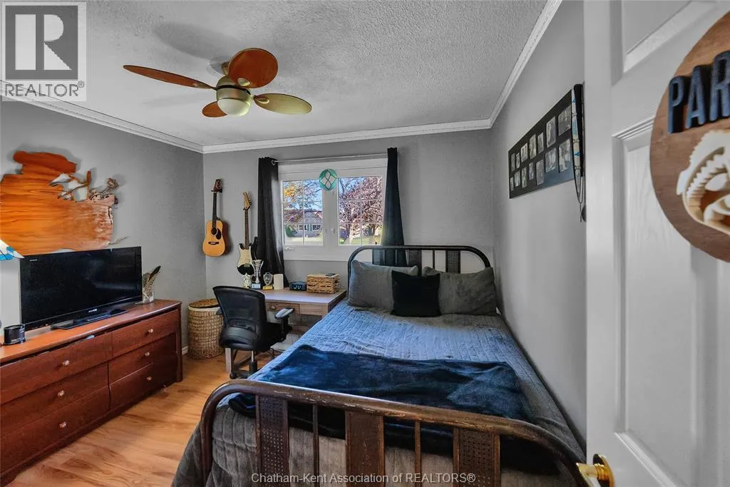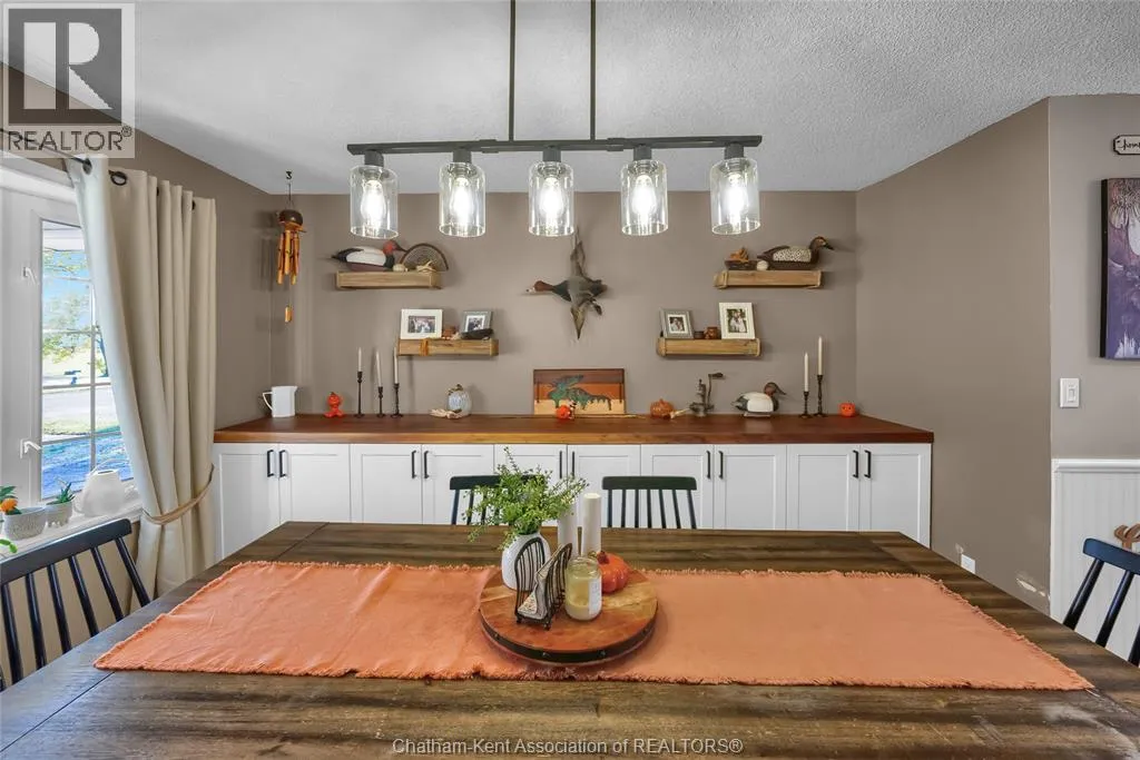Welcome Home to Country ComfortâJust Minutes from Chatham! Discover this beautifully maintained ranch-style home nestled in a small, quiet community only minutes from the city. Featuring 3 bedrooms and 2 bathrooms, including a spacious primary bedroom with its own ensuite bathroom, this home offers the perfect blend of comfort and convenience. Enjoy the warmth of the gas fireplace in the cozy living room, or step through the patio doors onto the covered outdoor deckâan ideal spot to unwind and take in the peaceful views of open fields and breathtaking sunsets, with no rear neighbour's in sight. A large, separate dining room offers plenty of space for family dinners and entertaining guests. The bright kitchen flows nicely through the main living areas, while the finished basement adds an additional family room and generous storage space. Located near walking paths and schools, this charming property offers a relaxing rural setting with easy access to all the amenities. A perfect place to call homeâpeaceful, practical, and full of charm. Book a showing today! (id:27476)