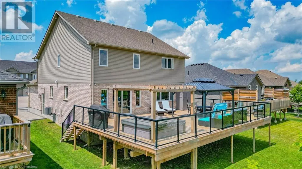 Highway 6 North, to Wellington Road to Palmerston, Main st to Bridge Crescent. WELCOME TO 122 Bridge Crescent located in a family friendly neighbourhood in Palmerston. Just about 50 minutes from Kitchener, Waterloo and Guelph. This stunning and spacious 2 storey detached home is sure to impress. Lots of natural lights, high ceiling, spacious rooms and high end finishes. The main floor open concept design is suited for entertaining guests, kitchen and dining overlooks a 1250 sq.ft. oversized deck with access both sides of the house, covered gazebo and a hot tub. The fully finished basement is complete with 3-pc bath, a family room, and a sauna. Camera/Security system, Air purifier, Water softener, 9 Parking spaces, Heated garage, driveway illuminator and 2 sheds. (id:27476)