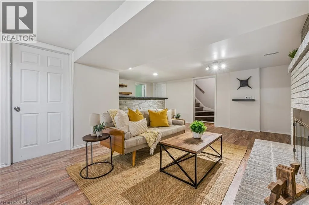 North on Main St Turn right onto Queen St W, then turn left on to Raglan St, house on the left If you're searching for a solid brick home full of charm and functionality, look no further! Step inside and you're welcomed by a warm and inviting living room with vaulted ceiling â perfect for relaxing after a long day. The spacious eat-in kitchen offers ample counter space, a built-in dishwasher, and a highly functional layout that makes cooking a breeze. The main floor includes two comfortable bedrooms and a 4-piece bathroom. The primary bedroom features patio doors that open onto a large backyard deck and a great view â an ideal space for morning coffee or summer entertaining. Downstairs, you'll find a versatile den or home office, a storage/utility room, and a cozy Rec Room complete with a wood-burning fireplace. Whether you're curling up by the fire in winter or hosting guests at the basement bar, this space is built for year-round enjoyment. Don't miss your chance to own this solid and well-maintained home in a great neighbourhood! (id:27476)