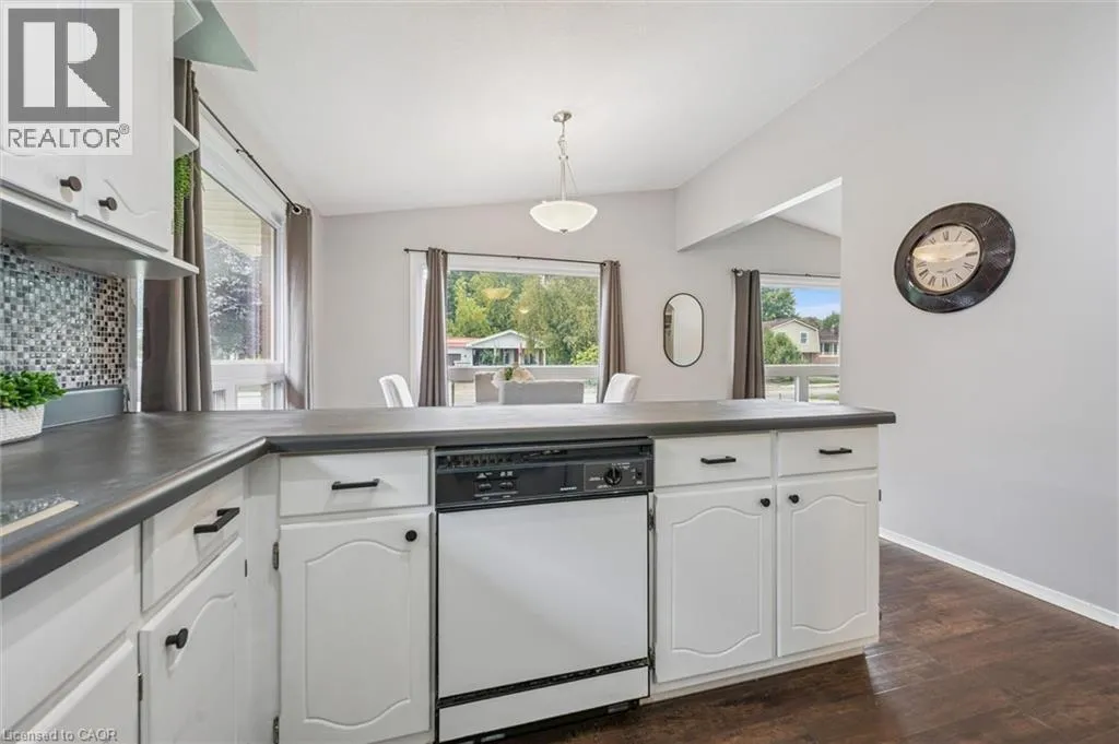 North on Main St Turn right onto Queen St W, then turn left on to Raglan St, house on the left If you're searching for a solid brick home full of charm and functionality, look no further! Step inside and you're welcomed by a warm and inviting living room with vaulted ceiling â perfect for relaxing after a long day. The spacious eat-in kitchen offers ample counter space, a built-in dishwasher, and a highly functional layout that makes cooking a breeze. The main floor includes two comfortable bedrooms and a 4-piece bathroom. The primary bedroom features patio doors that open onto a large backyard deck and a great view â an ideal space for morning coffee or summer entertaining. Downstairs, you'll find a versatile den or home office, a storage/utility room, and a cozy Rec Room complete with a wood-burning fireplace. Whether you're curling up by the fire in winter or hosting guests at the basement bar, this space is built for year-round enjoyment. Don't miss your chance to own this solid and well-maintained home in a great neighbourhood! (id:27476)