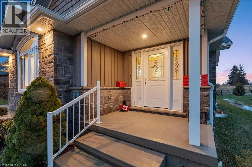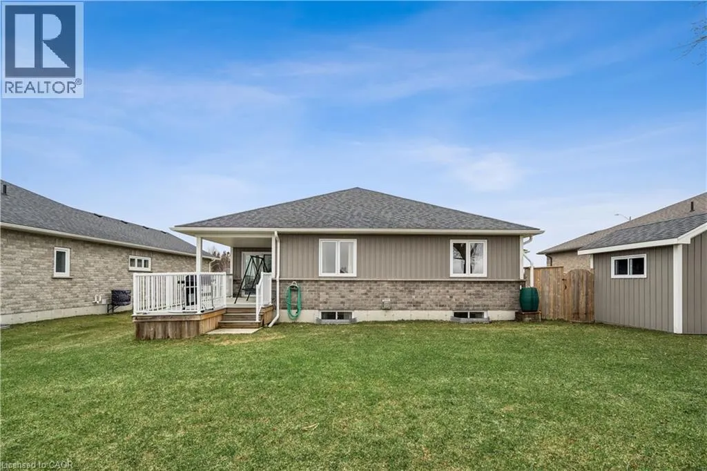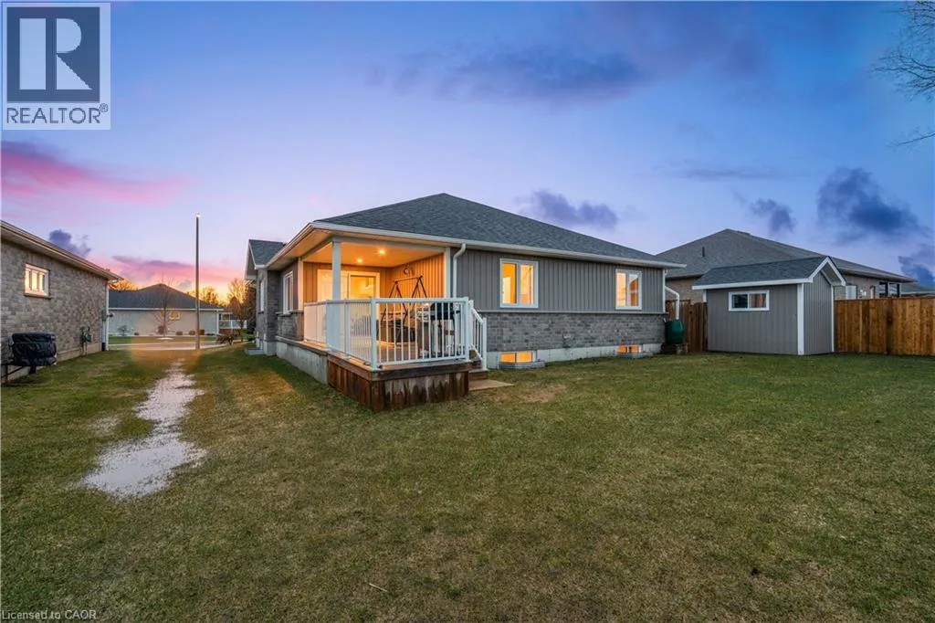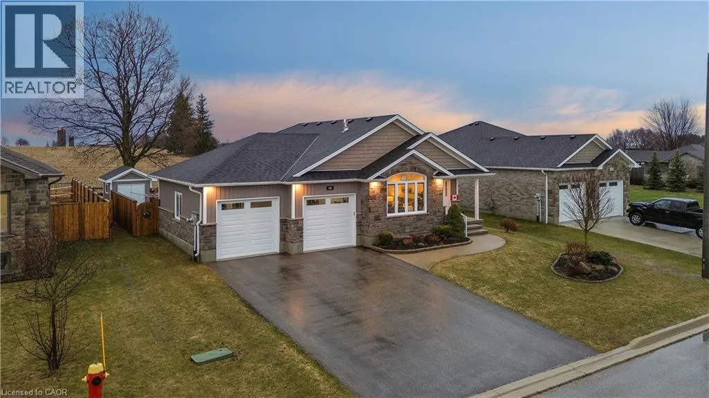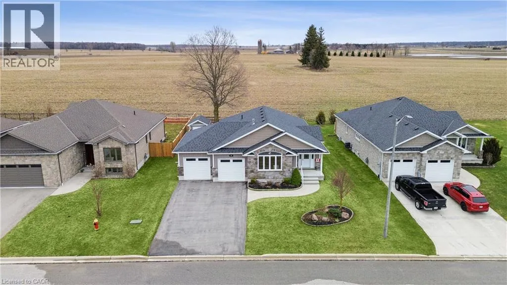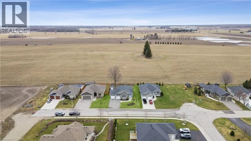 Wellington Rd 123 (Main St E) to Toronto St to Prospect St to Grand Trunk St Welcome to 480 Grand Trunk Street, a beautifully maintained 2018-built bungalow offering 1,633 sq ft of thoughtfully designed living space in a quiet, family-friendly neighbourhood. Backing onto open farmland, this home delivers privacy, peaceful views, and a lifestyle thatâs hard to find. Step inside and youâre welcomed by a bright, open-concept layout featuring durable laminate flooring throughout the main level. The kitchen is the heart of the home, complete with granite countertops, a large centre island, stainless steel appliances, under-cabinet lighting, pot lights, and a built-in desk area perfect for everyday convenience. The living room is warm and inviting, showcasing coffered ceilings, large windows that flood the space with natural light, and a cozy gas fireplace. The dining area flows seamlessly into a charming three-season room, creating the perfect transition to outdoor living with a covered porch, composite deck, and gas BBQ hookup. With no rear neighbours, youâll enjoy uninterrupted views of open farmland and ultimate backyard privacy. The main floor features two spacious bedrooms, including a primary suite with a walk-in closet and private 3-piece ensuite, along with convenient main floor laundry for true one-level living. Downstairs, the fully finished basement expands your space with a large recreation room featuring a second gas fireplace, a third bedroom with a walk-in closet and above-grade window, and a 3-piece bathroom. There is also a workshop/utility area and cold cellar, offering excellent storage and flexibility. This home also stands out with thoughtful accessibility features, including a chair lift in the garage and another providing access to the basement, making it ideal for multi-generational living or those planning for long-term comfort. Complete with a double car garage and a driveway that accommodates up to four vehicles, this property offers both convenience and functionality. (id:27476)