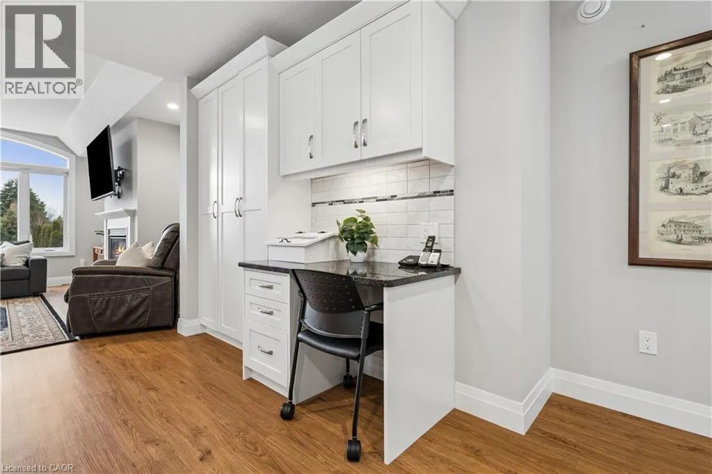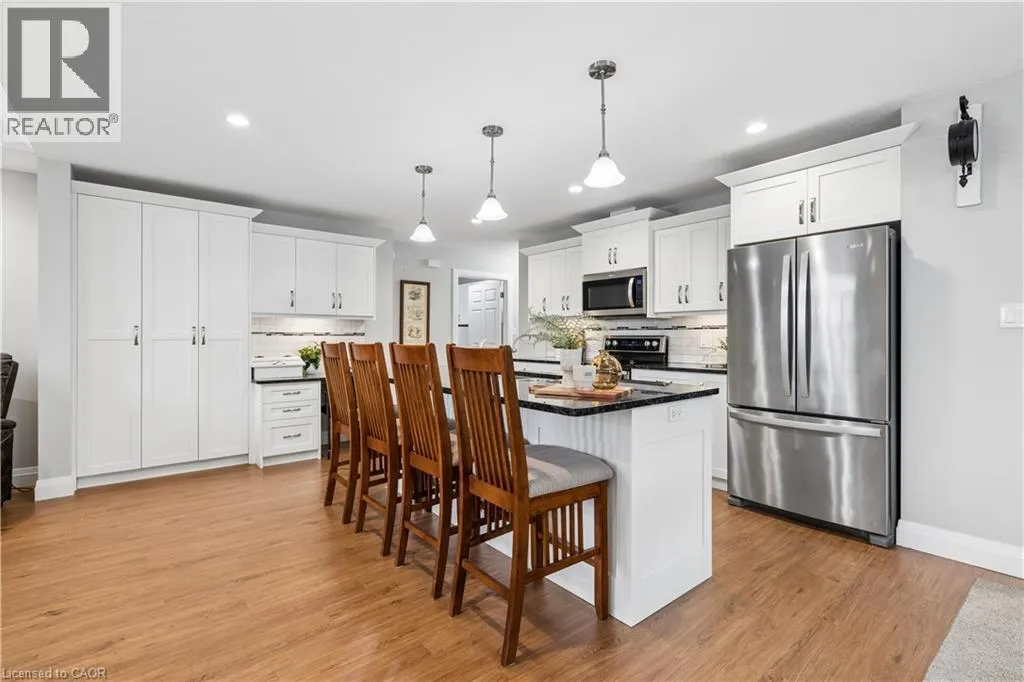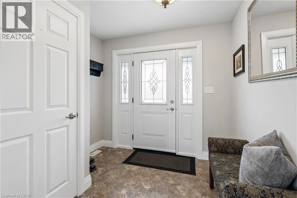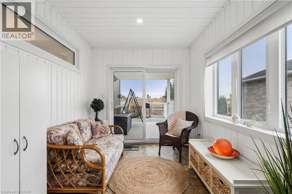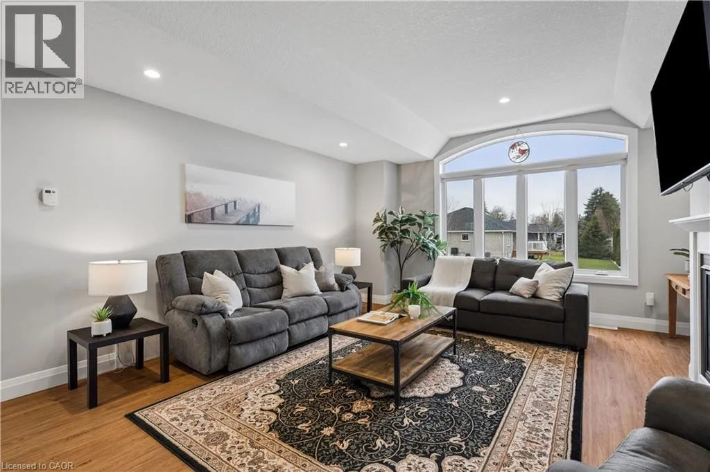 Wellington Rd 123 (Main St E) to Toronto St to Prospect St to Grand Trunk St Welcome to 480 Grand Trunk Street, a beautifully maintained 2018-built bungalow offering 1,633 sq ft of thoughtfully designed living space in a quiet, family-friendly neighbourhood. Backing onto open farmland, this home delivers privacy, peaceful views, and a lifestyle thatâs hard to find. Step inside and youâre welcomed by a bright, open-concept layout featuring durable laminate flooring throughout the main level. The kitchen is the heart of the home, complete with granite countertops, a large centre island, stainless steel appliances, under-cabinet lighting, pot lights, and a built-in desk area perfect for everyday convenience. The living room is warm and inviting, showcasing coffered ceilings, large windows that flood the space with natural light, and a cozy gas fireplace. The dining area flows seamlessly into a charming three-season room, creating the perfect transition to outdoor living with a covered porch, composite deck, and gas BBQ hookup. With no rear neighbours, youâll enjoy uninterrupted views of open farmland and ultimate backyard privacy. The main floor features two spacious bedrooms, including a primary suite with a walk-in closet and private 3-piece ensuite, along with convenient main floor laundry for true one-level living. Downstairs, the fully finished basement expands your space with a large recreation room featuring a second gas fireplace, a third bedroom with a walk-in closet and above-grade window, and a 3-piece bathroom. There is also a workshop/utility area and cold cellar, offering excellent storage and flexibility. This home also stands out with thoughtful accessibility features, including a chair lift in the garage and another providing access to the basement, making it ideal for multi-generational living or those planning for long-term comfort. Complete with a double car garage and a driveway that accommodates up to four vehicles, this property offers both convenience and functionality. (id:27476)
