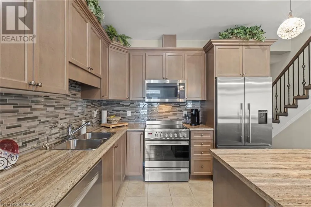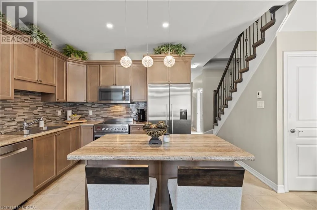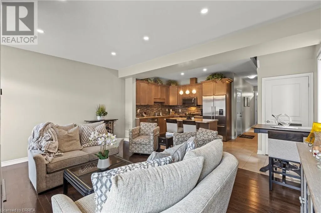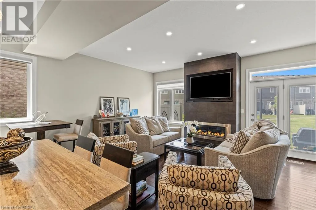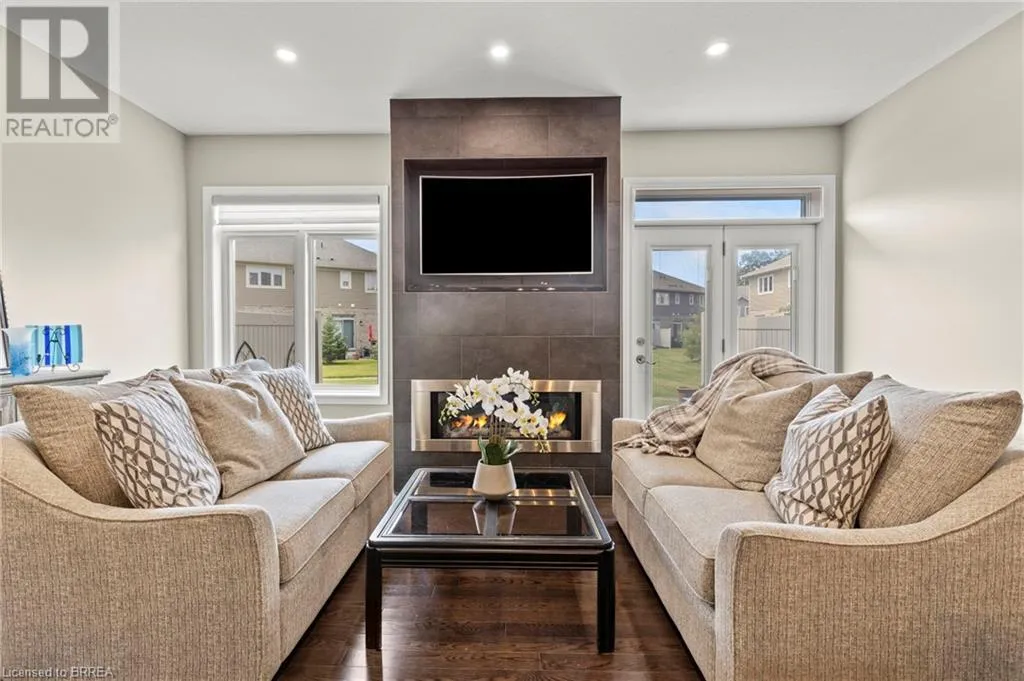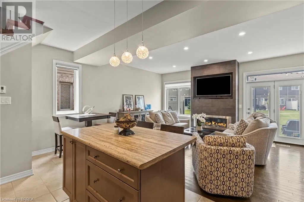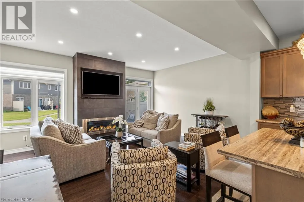 William & Willow St. GRAND RIVER ST N LEFT ON WILLIAM THEN RIGHT ON WILLOW Welcome to 80 Willow Street, Unit 67 â a beautifully upgraded end-unit townhome in the heart of charming Paris, Ontario. This carpet-free home offers over 3 levels of thoughtfully designed living space, featuring 3 spacious bedrooms and 2.5 bathrooms, perfect for families or professionals seeking comfort and style. Step inside to find a bright, open-concept main floor complete with a stunning floor-to-ceiling fireplace, hardwood flooring, pot lights, top down bottom up window coverings, and custom kitchen cabinetry that adds both elegance and functionality. The main level also includes a convenient 2-piece powder room off the entry and access to a single-car garage. Leading out the back French Doors, the Backyard backs onto the Condo's Greenspace. Upstairs, you'll find a finished laundry room, a generous 4-piece main bathroom, and three well-appointed bedrooms with vinyl flooring throughout this level. The primary suite is a true retreat, boasting a private 4-piece ensuite and ample closet space. Enjoy the benefits of low condo fees in a well-maintained community that is walking distance to downtown Paris, known for its boutique shops, restaurants, and scenic riverfront. With easy river access and just minutes to Highway 403, this location offers the perfect balance of small-town charm and commuter convenience. Donât miss your chance to own this upgraded, move-in-ready end unit in one of Ontarioâs most desirable communities! (id:27476)