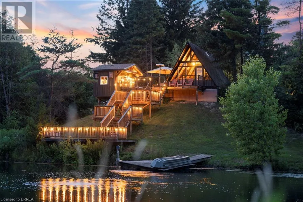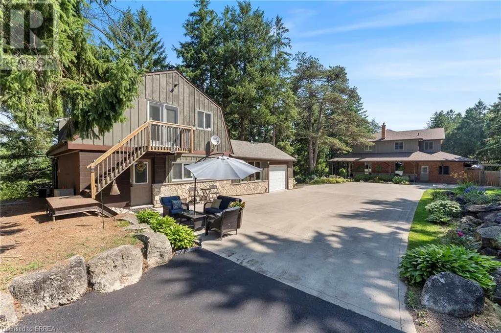 Heading East on Governor's Rd E, property is located on the right hand side directly at the St.George Rd. intersection. Tucked beyond the trees, where the air shifts and the light softens, you'll find 182 Governorâs Rd E. A rare 15-acre estate where every corner has been crafted for connection, and built for legacy. At its centre stands a heritage home from 1865, storied and steadfast, the kind of place that holds laughter in its walls and history in its bones. Constructed with enduring triple-brick architecture featuring 4 Bed, 3 Bath this is a home that honours the past while embracing modern comfort. A few elevated touches include; quartz countertops, cafe appliances, solid wood beams, custom cabinetry adding warmth and timeless craftsmanship, a masonry built fireplace w/ regency wood insert (2022). Across the property, a second residence offers the perfect blend of comfort and independence, featuring 3 Bed, 4 Bath, a fully equipped kitchen, insuite laundry, and attached garage. Whether you're welcoming extended family, hosting guests, or exploring rental income opportunities, this thoughtfully designed home allows for seamless multigenerational living without compromise. Anchoring the A-frame cabin is a wood stove (2022) equal parts function and art to bring warmth and beauty to the space. The patio hardscaping (2022) brings northern elegance and a touch of Muskoka to your very own backyard retreat. The new decking w/ glass railings extends your living space outdoors, inviting morning coffee with pond views or evenings under the stars. And then, thereâs the land, walk the private trails beneath towering trees. Push off from the dock and cast a line in the pond, share stories around the glowing fire pit, cocktails in hand from your custom outdoor bar. Itâs a setting that brings people together effortlessly. And for the dreamers, doers, and builders an 80x30 shop (2006) stands ready for business, hobbies, or bold new ventures. This isnât just a property. Itâs a sanctuary for the soul, a place to raise a family, build a legacy, and write your next chapter in natureâs quiet company. (id:27476)