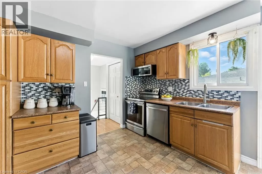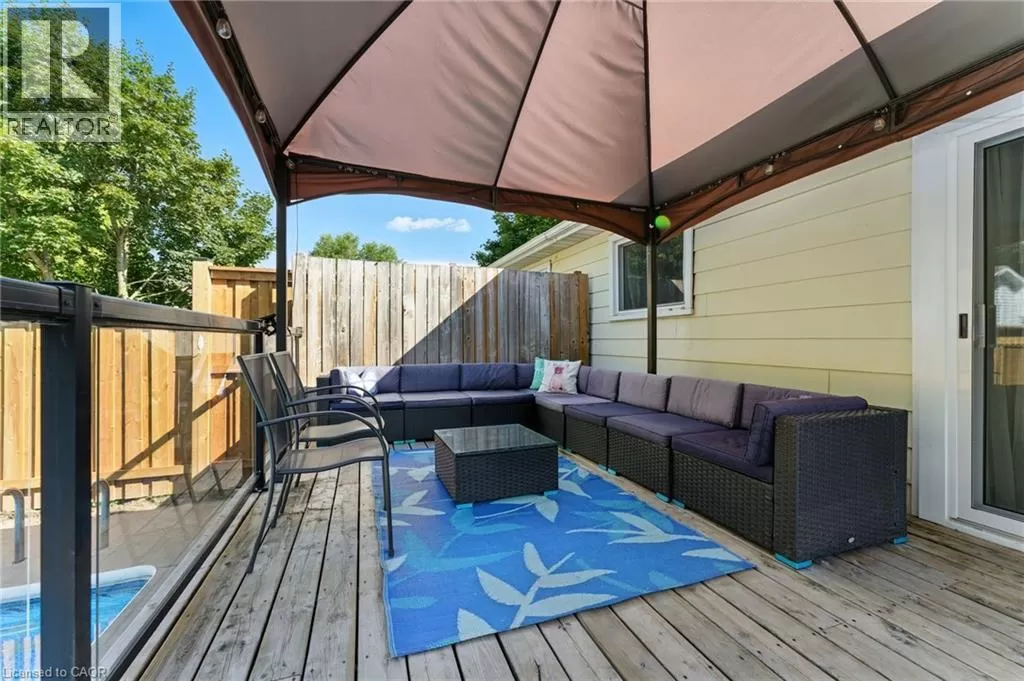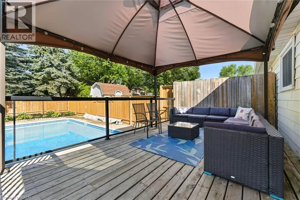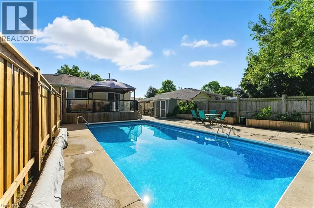 Parkside Dr. to Pleasant Pl. to Maple Cres. Welcome to 37 Maple Crescent, a charming raised bungalow nestled in the heart of the beautiful town of Paris. This spacious semi-detached family home offers the perfect blend of comfort, functionality, and outdoor enjoyment, making it ideal for families or those seeking a peaceful retreat. Boasting 4 bedrooms (3+1) and 2 full bathrooms (1+1), this home features a generous 1,926 square feet of total living space. Step into the bright, open-concept living and dining area, where natural light pours in through large windows, creating a warm and inviting atmosphere perfect for entertaining or relaxing with loved ones. The large kitchen offers ample counter space and cabinetry, with direct access to a side deck that leads to a patio and fully fenced backyardâa seamless indoor-outdoor flow for summer barbecues and gatherings. Downstairs, the fully finished basement expands your living space with a spacious recreation room, complete with a cozy gas fireplace (23â) and a stylish wet bar, ideal for movie nights or hosting friends. Step outside to your private oasis featuring a 16x32 chlorine pool, perfect for cooling off on hot days. The backyard is fully fenced for privacy and includes two sheds for extra storage. Thoughtful updates throughout the home ensure modern comfort and peace of mind including; Exterior Doors (24â), Roof Shingles (12â), Furnace (23â), A/C (23â), Water Heater (25â), Water Softener (21â), Kitchen Appliances (21â-24â), Pool Liner, Plumbing Lines, Sand Filter and Pump (16â-23â). Donât miss your chance to own this beautifully maintained home in âThe prettiest little town in Canadaâ. 37 Maple Crescent is ready to welcome youâschedule your viewing today! (id:27476)