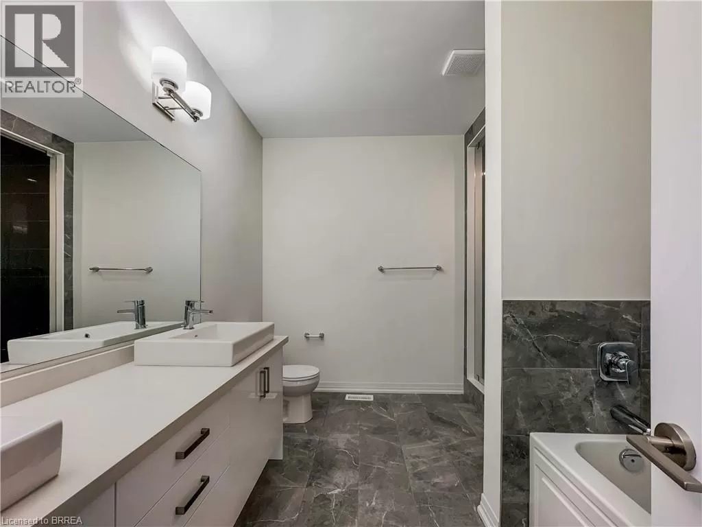 POWERLINE ROAD TO BREWIS STREET Be the second to live in this stunning 4-level side split showcasing exceptional curb appeal and a smart family-friendly layout. The main level features a formal dining room, living room with fireplace, bright dinette, and stylish kitchen, all under soaring ceilings. The impressive great room is a showstopper with 12â ceiling height, oversized glass doors, and a walkout to a balcony overlooking the street. Upstairs, youâll find four spacious bedrooms including a primary suite with walk-in closet and spa-like en-suite. Convenient bedroom-level laundry adds to the thoughtful design. A two-car garage and welcoming entry complete this beautiful newer built home. Take Advantage Of The Homes Prime Location Just Minutes To Highway 403 And Close To The Brant Sports Complex, Schools, Shopping, And Scenic Trails. This Is An Ideal Opportunity To Live In One Of Ontario's Most Picturesque Towns In A Home That Combines Elegance, Functionality, And Location. - book your private viewing today! (id:27476)