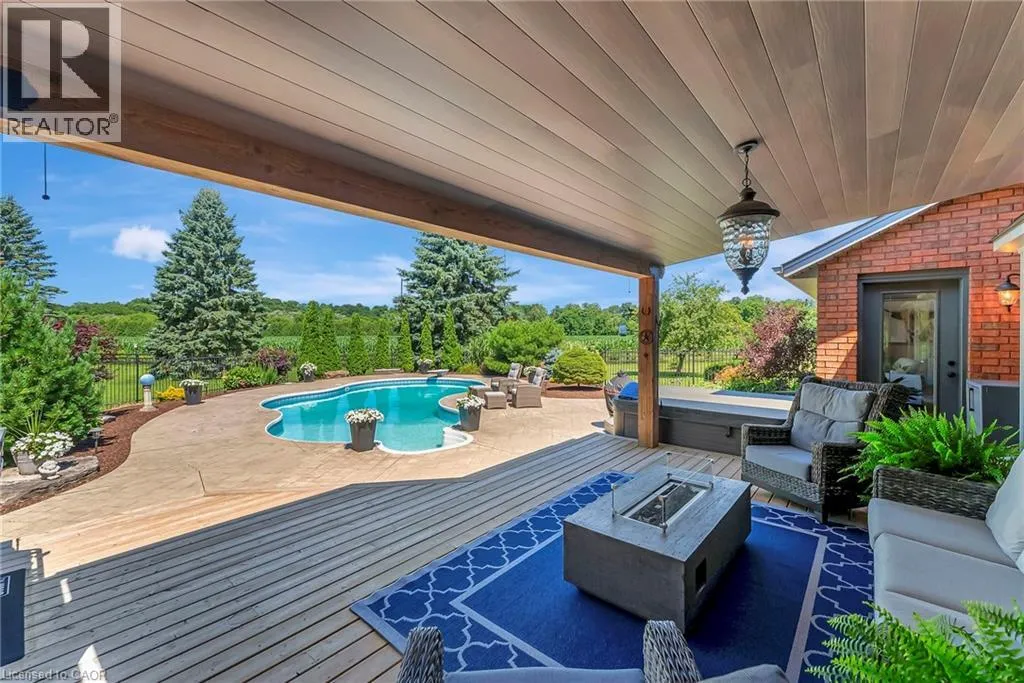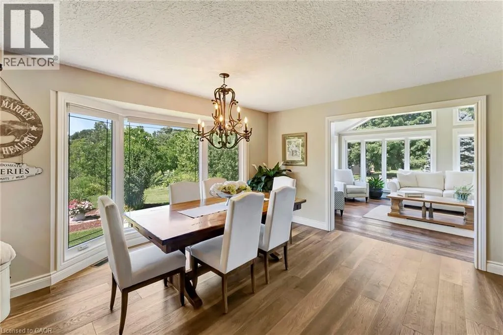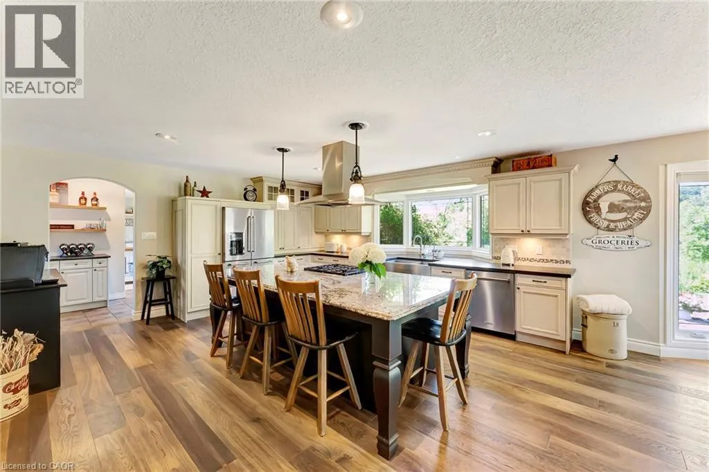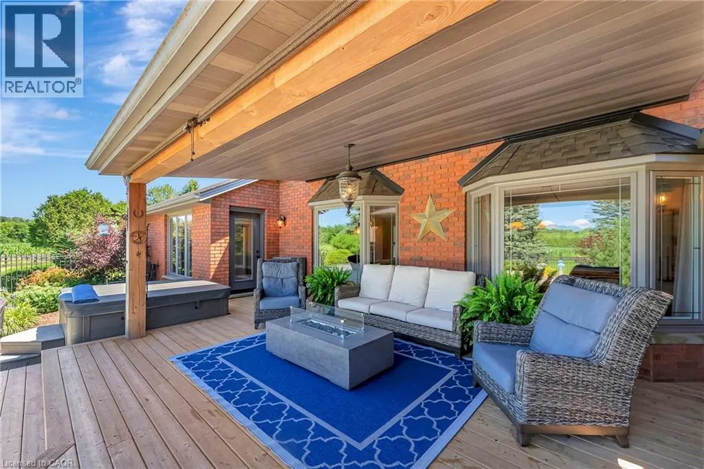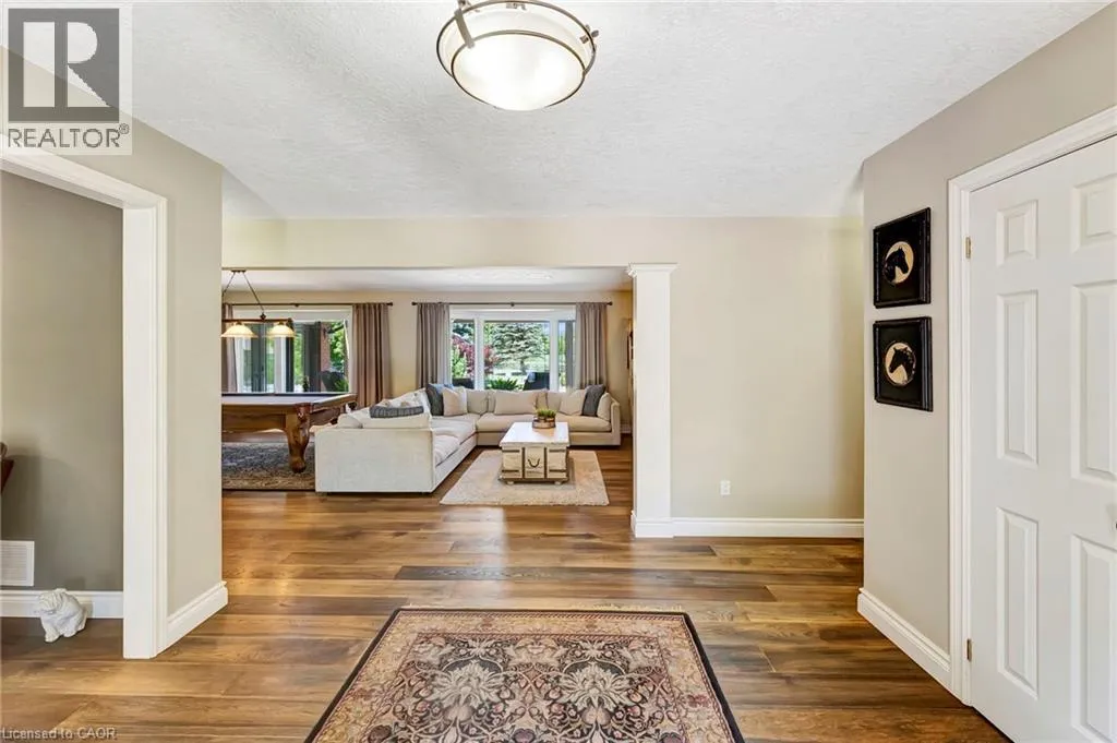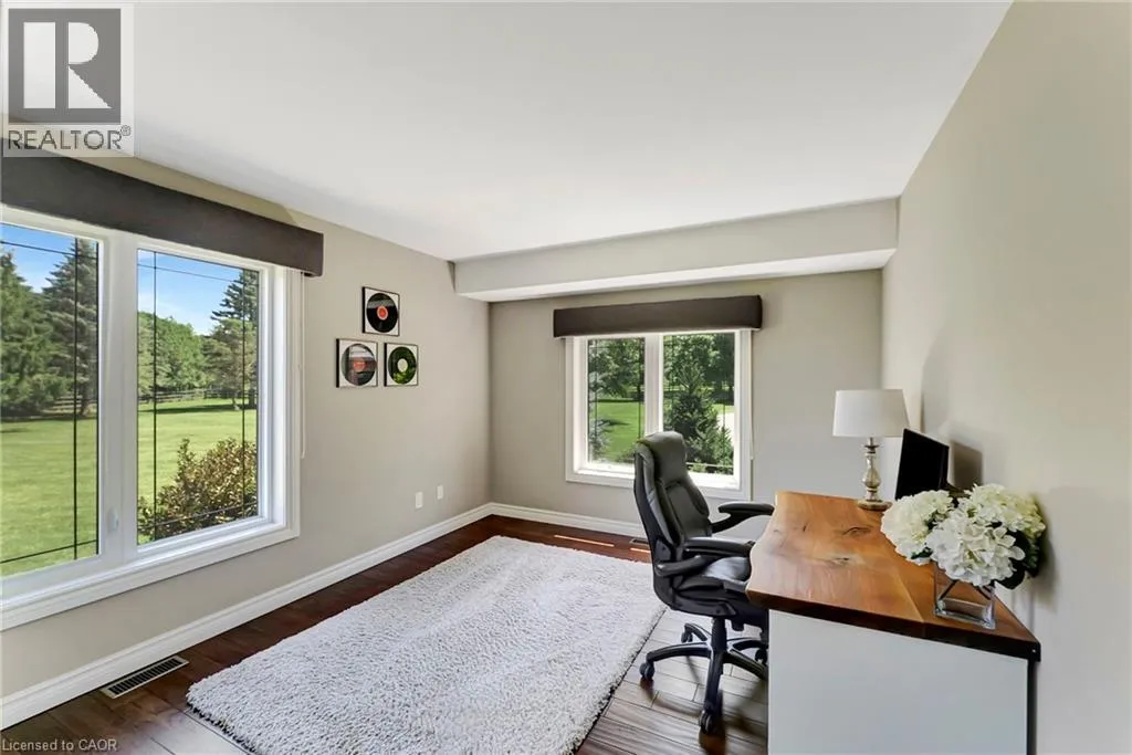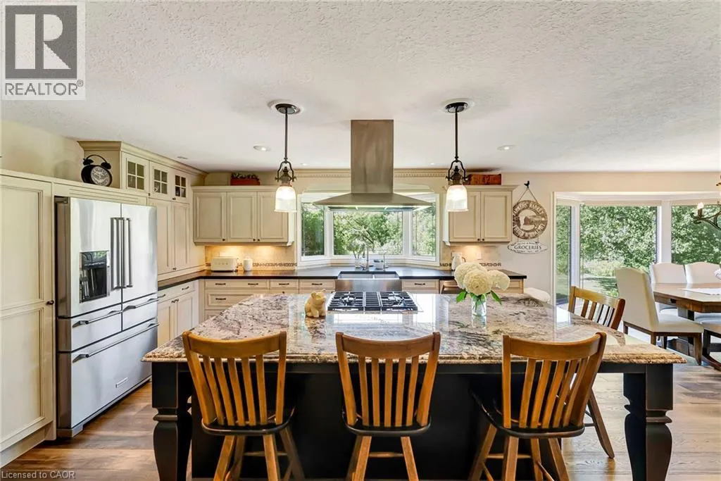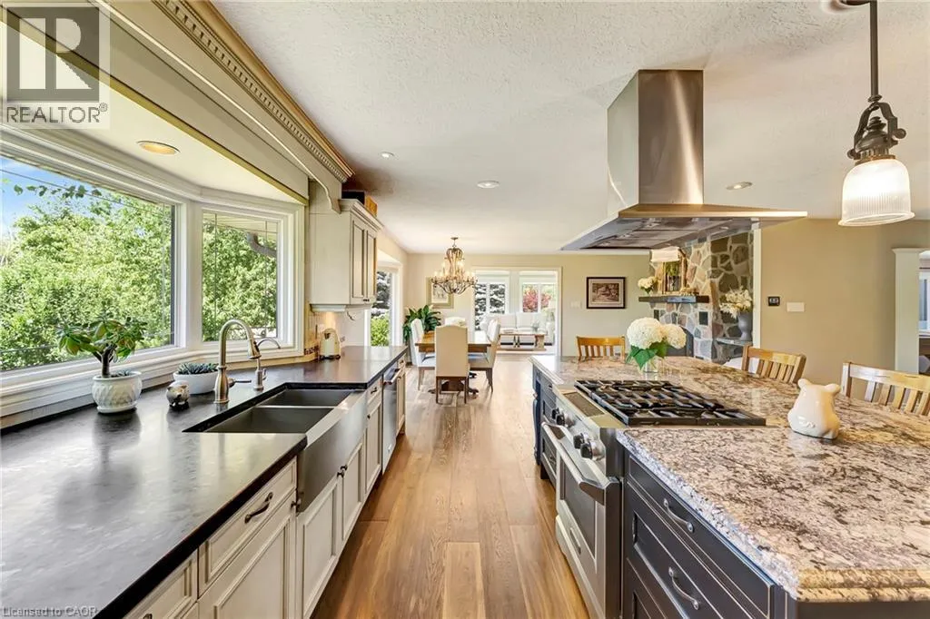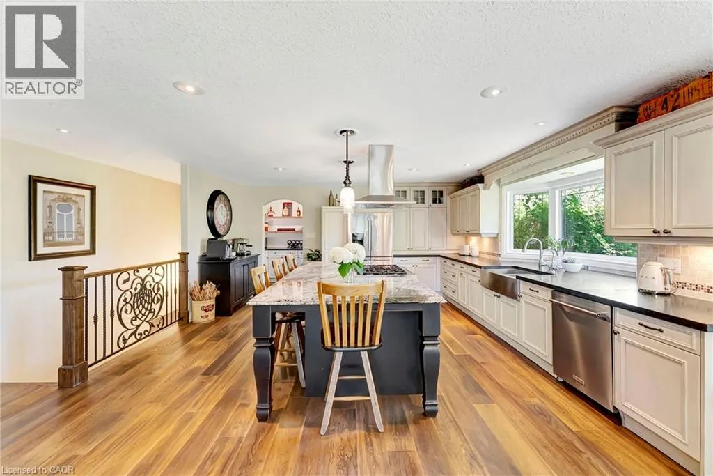 Trussler Road/Puttown Rd/Governors Road W Executive bungalow on 3.79 acres, located in a picturesque setting. The present owners have elevated this home with renovations & design choices to please the most discriminating Buyer. The custom bungalow offers over 3300 sq ft on the MF. The foyer opens to an inviting Greatroom with custom FP & views of the property, outdoor entertaining areas & pool...it really sets the stage for this tranquil setting. The kitchen area boasts a custom island with granite counters & seating, a gorgeous stone FP, oversized dining area & more great views of the private property... there is a designated bar area & a laundry room that will exceed all expectations. There is a 2pc bath in this wing as well as access to the 3 car garage. The oversized garage has a walkup from the lower level. The custom outbuilding offers good storage or retreat space! There is a bright & spacious den/sunroom off the kitchen with walkout to the covered patio & pool area. This room definitely exudes zen & will be a room you will want to unwind in & enjoy conversations -morning coffees & libations would surely find their way here as well. There is an attractive home office that offers a private space for those who work from home- another great room. The primary suite has a walkout to the hot tub area, two walk in closets & a bright custom ensuite featuring a stand alone tub, double sink vanity and oversized spa shower. You will love this ensuite. There is a newly renovated main bath and two generous bedrooms. The main floor boasts hand scraped hardwood floors & stone/tile floors in bath and kitchen areas. The lower level really showcases the size of this sprawling bungalow. There is a recroom area & flex space, a home gym & a spacious finished storage area with access to the walkup to the garage. There is approximately another 1800 sq ft of unfinished space to work with! Location allows good access to 403.. but the drawing card has to be this private location! Prepare to be impressed. (id:27476)