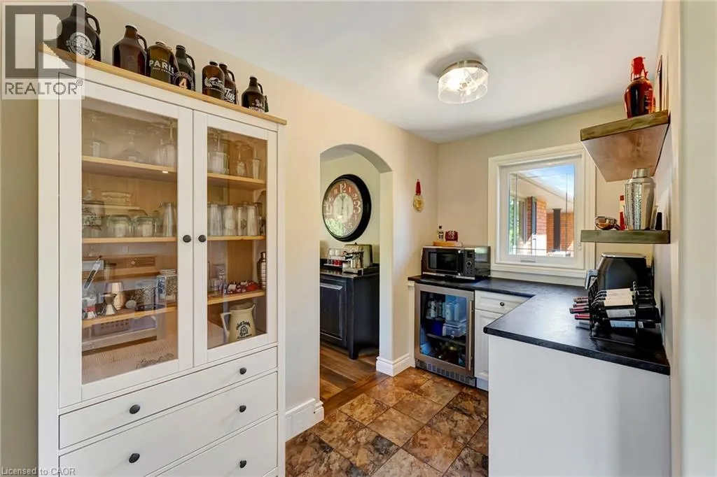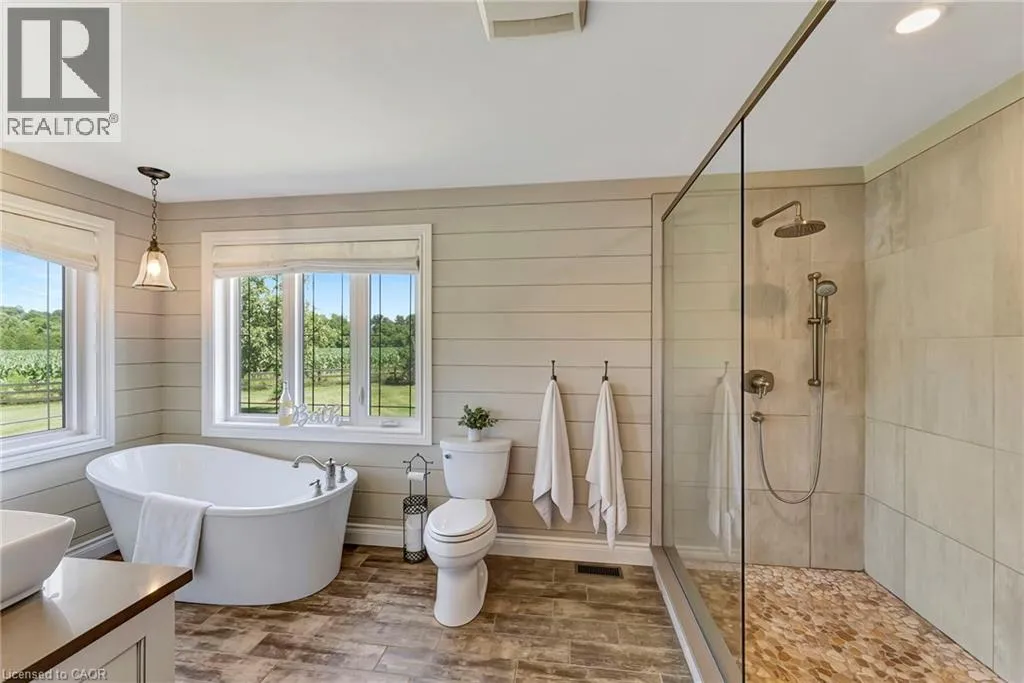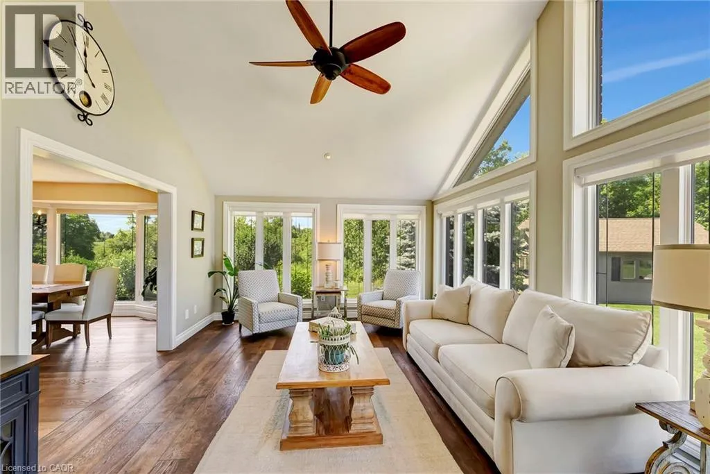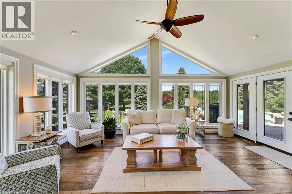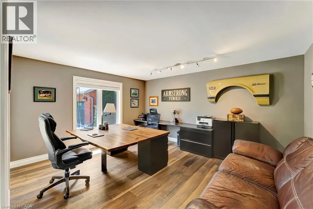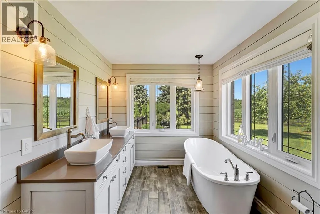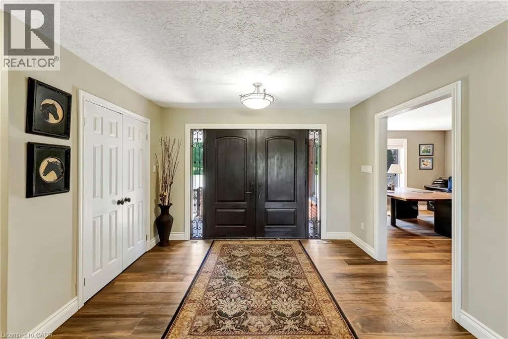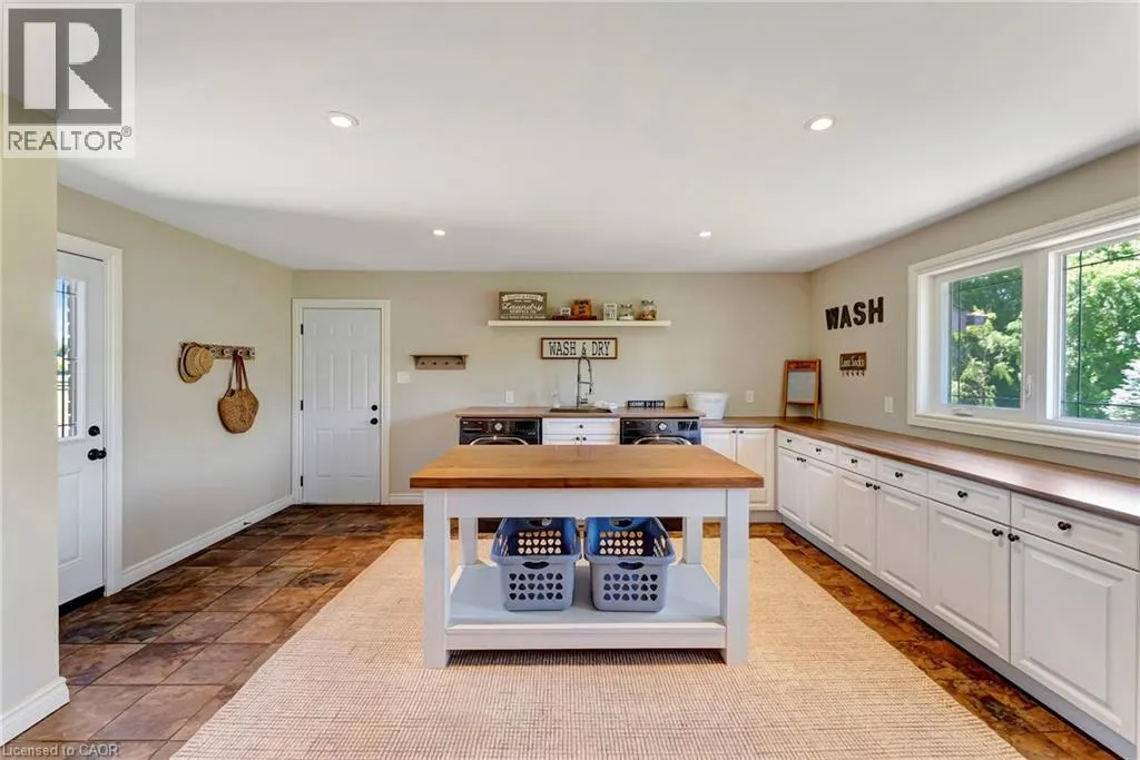 Trussler Road/Puttown Rd/Governors Road W Executive bungalow on 3.79 acres, located in a picturesque setting. The present owners have elevated this home with renovations & design choices to please the most discriminating Buyer. The custom bungalow offers over 3300 sq ft on the MF. The foyer opens to an inviting Greatroom with custom FP & views of the property, outdoor entertaining areas & pool...it really sets the stage for this tranquil setting. The kitchen area boasts a custom island with granite counters & seating, a gorgeous stone FP, oversized dining area & more great views of the private property... there is a designated bar area & a laundry room that will exceed all expectations. There is a 2pc bath in this wing as well as access to the 3 car garage. The oversized garage has a walkup from the lower level. The custom outbuilding offers good storage or retreat space! There is a bright & spacious den/sunroom off the kitchen with walkout to the covered patio & pool area. This room definitely exudes zen & will be a room you will want to unwind in & enjoy conversations -morning coffees & libations would surely find their way here as well. There is an attractive home office that offers a private space for those who work from home- another great room. The primary suite has a walkout to the hot tub area, two walk in closets & a bright custom ensuite featuring a stand alone tub, double sink vanity and oversized spa shower. You will love this ensuite. There is a newly renovated main bath and two generous bedrooms. The main floor boasts hand scraped hardwood floors & stone/tile floors in bath and kitchen areas. The lower level really showcases the size of this sprawling bungalow. There is a recroom area & flex space, a home gym & a spacious finished storage area with access to the walkup to the garage. There is approximately another 1800 sq ft of unfinished space to work with! Location allows good access to 403.. but the drawing card has to be this private location! Prepare to be impressed. (id:27476)