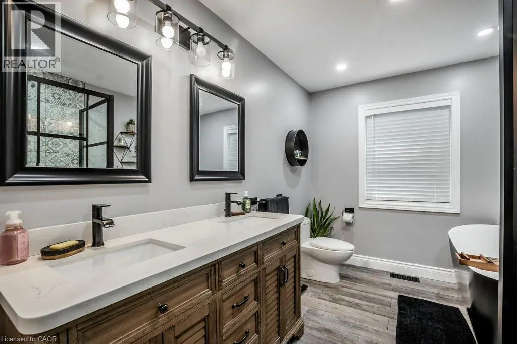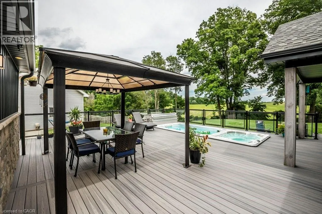 On Hwy 24 This gorgeous 5-bedroom, 5-bath home features large new windows throughout, flooding the space with natural light. The spacious, recently updated kitchen offers a 5-ft-wide fridge, granite countertops, soft-close drawers, and a vaulted ceiling â perfect for cooking and entertaining. With over 3,600 square feet of living area, including a finished basement with an open-concept rec room, a large fifth bedroom, and a walkout to the huge three-sided deck, thereâs plenty of room to relax and enjoy. Step outside to find a sunken Hydro Swim Spa and hot tub, where you can take in beautiful country vistas across nearly ¾ of an acre of land. This home also offers ample parking, a large storage container, and a 2-car garage with a workshop. Thoughtfully upgraded and lovingly maintained, this property is truly one of a kind â you need to see it to appreciate it. Book your showing today â this one wonât last! (id:27476)