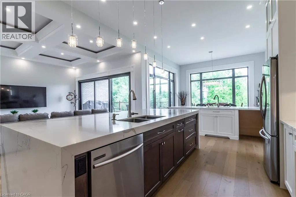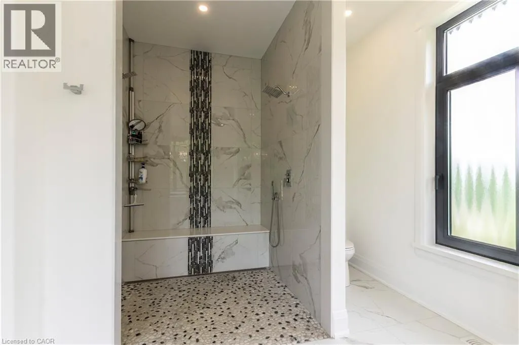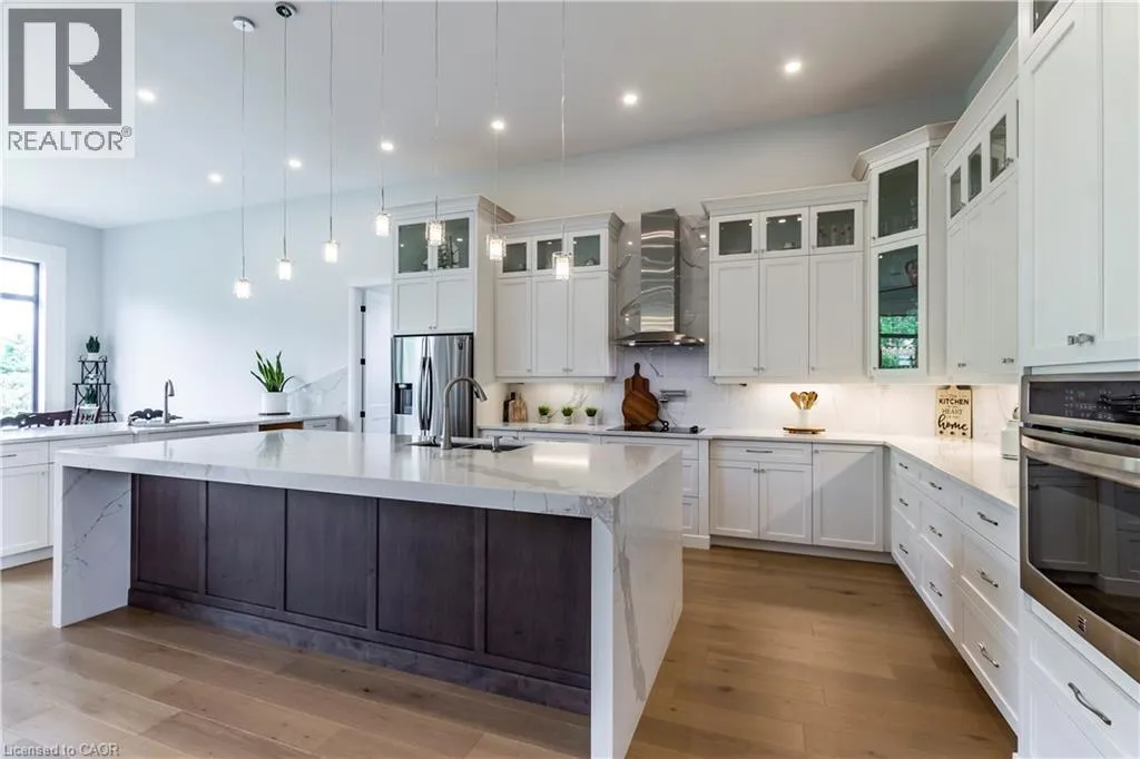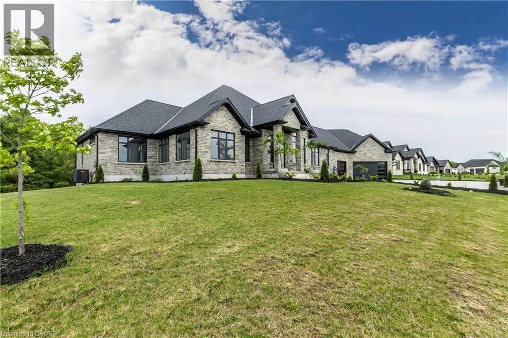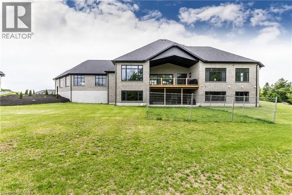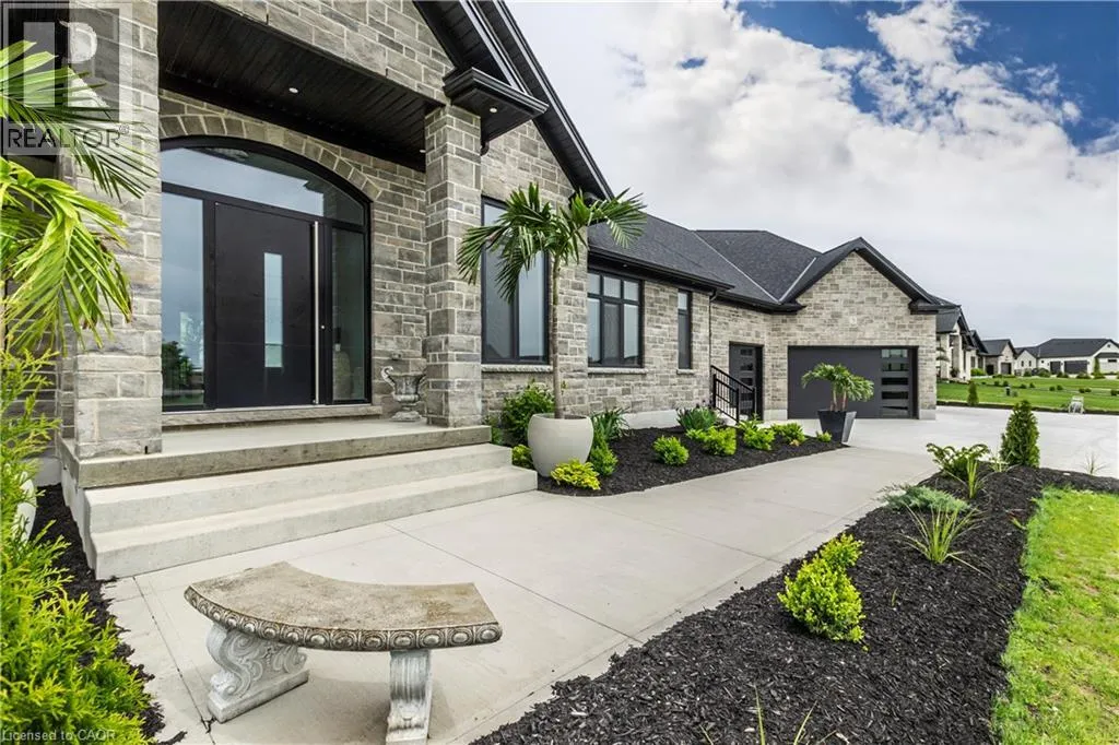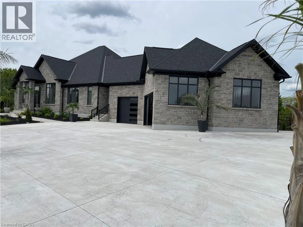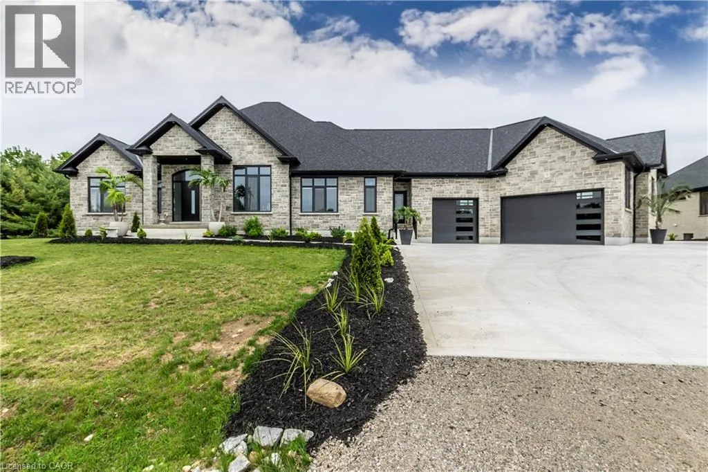 Highway 2/Bishopsgate Closing flexible, Luxurious Custom Bungalow on 1.3 Acres | 6600 sq. ft. | Walkout Basement Step into elegance and energy efficiency with this stunning custom-built bungalow. Perfectly situated on a sprawling 1.3-acre lot with a 270 ft. frontage, this home offers 6600 sq. ft. of living space designed for both comfort and sophistication. Key Features: Grand Foyer & Open Concept Design: Soaring 12 ft. coffered ceilings and triple-pane windows provide an airy, light-filled atmosphere throughout. The seamless flow leads you to a private covered deck, ideal for relaxation or entertaining. Chef-Inspired Kitchen: With quartz countertops, dual sinks, built-in appliances, and a massive island with a separate peninsula, this kitchen is designed for those who love to cook and host. Luxurious Primary Suite: Enjoy direct deck access and a spa-like ensuite featuring a 6'x6' walk-in shower, heated floors with a bench, soaker tub, and double vanities. All Bedrooms with 10 ft. Ceilings: Spacious, bright, and designed for ultimate comfort. Fully-Equipped Bathrooms: Heated floors throughout, including the basement rough-ins. Walkout Basement Ready for Your Vision: Already studded with 9' ceilings, large windows, and triple pane glass, French doors and windows opening to the patio. Rough-ins for 2 bedrooms, 3 bathrooms, laundry, and kitchen make this space ideal for future development. Superior Efficiency: Built with an Insulated Concrete Form (ICF) foundation for excellent energy efficiency and soundproofing. Outdoor Paradise: Expansive pool-sized backyard surrounded by mature trees offers complete privacy and natural beauty. Convenience: A triple-wide concrete driveway, second driveway, and a 3-car garage provide ample parking and storage. Additional Features: Air exchanger, central vacuum, on-demand water heater (owned), water softener & treatment system, sump pump, remote garage opener, and more! This home is a must-see to truly appreciate all it has to offer! (id:27476)