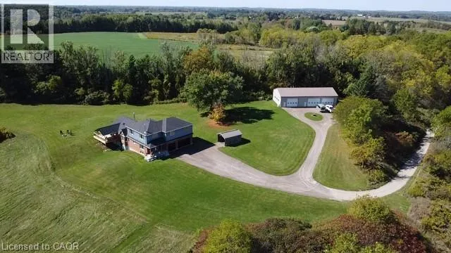 401 to Wayne Gretzky PKW North - Park Rd North - Right on Governors Road E or From Hwy 52 Copetown Head West on Governors Road. This incredible 57+acre slice of paradise is more than just a propertyâit's a retreat into natureâs beauty. Rolling hills and valleys are interwoven with trails, offering a true paradise for outdoor enthusiasts. Fairchild Creek winds its way through the land, offering an idyllic setting for relaxation and recreation. Explore the landscape on foot, hunt, ride ATVS or off-road vehicles, or simply enjoy the peace and serenity. Step onto the deck to greet magical sunrises and unwind with breathtaking sunsets. With ample space and privacy, this property is ideal for large or extended families seeking room to grow and enjoy life together. The move-in ready home features over 3,800 sq. ft. of finished living space, including 5 spacious bedrooms, office space, and 3 full baths. The open-concept kitchen and main living area are perfect for modern living. The primary bedroom boasts an oversized walk-in closet and a 4piece ensuite. Wood stoves at each end of the home add a cozy touch of country charm, complemented by a geothermal heating and cooling system for efficient, sustainable warmth and comfort year-round. A finished walk-out lower level adds even more versatile living space. An oversized three-car garage offers extra storage and ample parking. Need space for hobbies or projects? The 3,200 sq. ft. insulated and heated workshop is a dream come true. Featuring three oversized garage doors, 14-foot ceilings, and a built-in loft, this space is perfect for collectors, fabricators, or anyone needing a large, organized workspace. Thereâs room for vehicles, tractors, and all your toys. Adding to its appeal, approximately 25 acres of woodlot include around 1,200 blue spruce and 150 oak trees, showcasing a commitment to sustainability and natural beauty. Whether seeking a private retreat, recreational playground, or family paradise, this property offers peace, adventure, and endless possibilities. Centrally located just minutes from St.George, Paris, Brantford, and Ancaster (id:27476)
